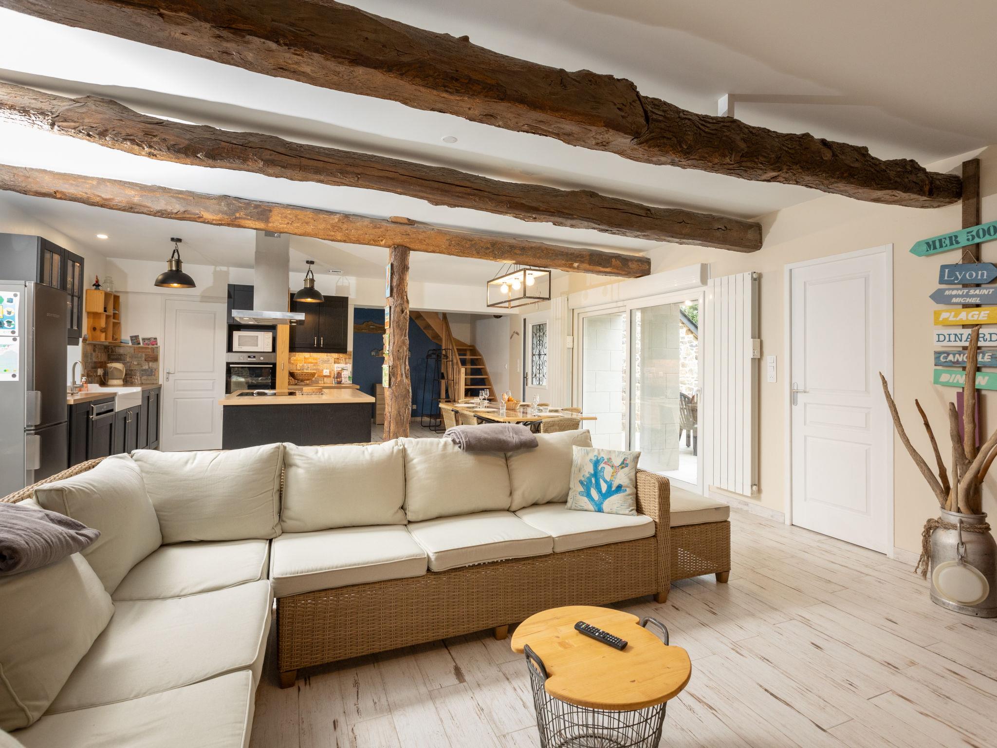 "Tiegezh", 4-room house 145 m2 on 2 levels, south facing position. Comfortable and tasteful furnishings: large living/dining room with TV (flat screen). Exit to the garden, to the terrace. 1 room with 1 french bed (1 x 160 cm, length 200 cm). Open kitchen (oven, dishwasher, 4 induction hot plates, toaster, kettle, microwave, freezer, electric coffee machine, Capsules for coffee machine (Senseo) extra, cooking island). Shower, sep. WC. Upper floor: 1 room with Dressing room with 1 french bed (1 x 160 cm, length 200 cm). 1 room with 2 beds (90 cm, length 190 cm). Shower, sep. WC. Large garden. Terrace furniture, barbecue, deck chairs. Facilities: washing machine, iron, hair dryer. Internet (WiFi, free). Please note: non-smokers only. Smoke alarm. Offer by a private individual according to Art. 155, IV of CGI. FR70635