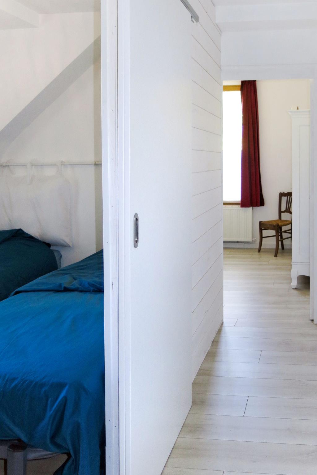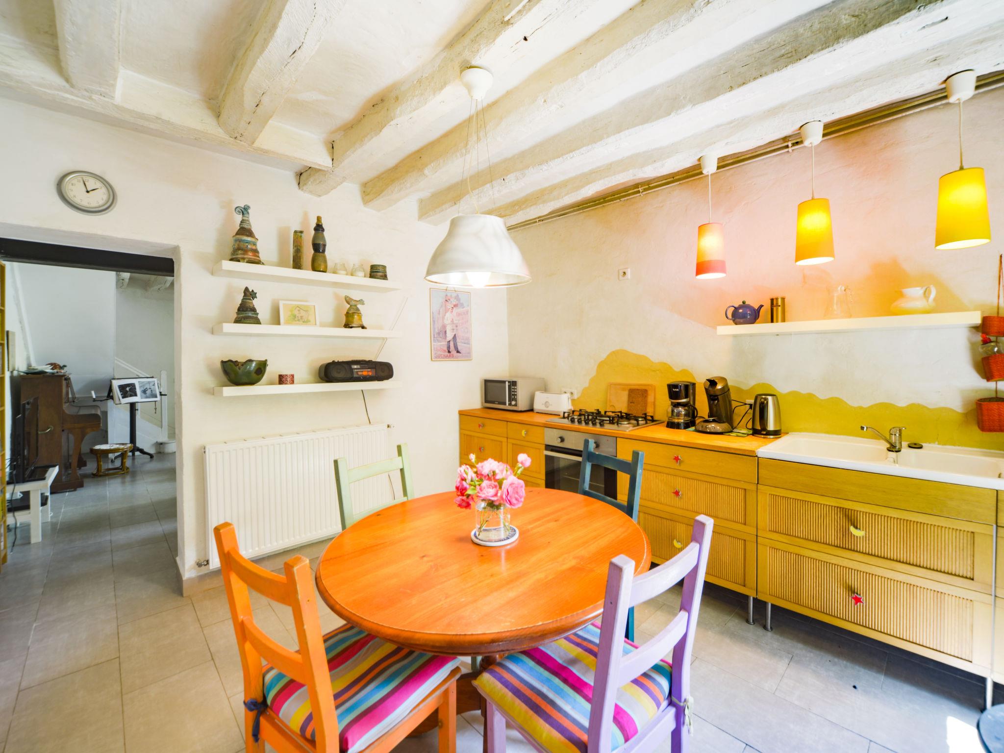 "Au Soleil Joyeux", 3-room house 60 m2 on 2 levels. Practical furnishings: living room with TV, hi-fi system and DVD. Open kitchen (oven, 5 gas rings, toaster, microwave, freezer, electric coffee machine) with dining table. Exit to the terrace. Upper floor: 1 room with sloping ceilings with 2 sleeping facilities (80 cm). 1 room with sloping ceilings with 1 french bed (160 cm). Shower, sep. WC. Gas heating. Parquet floors, natural stone floors. Terrace. Terrace furniture. Facilities: washing machine, children's high chair, baby cot. Internet (WiFi, free). Please note: maximum 1 pet/ dog allowed. Smoke alarm.