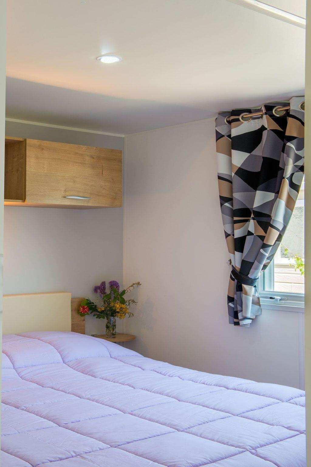 The chalets have been comfortably furnished. The 2-bedroom chalets sleep up to 6 people and measure 36m2. They comprise a living room with TV and air conditioning, a sitting area with a 2-seater sofa bed and a dining area. Fully equipped kitchen with microwave, dishwasher, coffee maker, fridge and plenty of crockery and cutlery. 2 bedrooms, 1 with a double bed and 1 with 2 single beds.