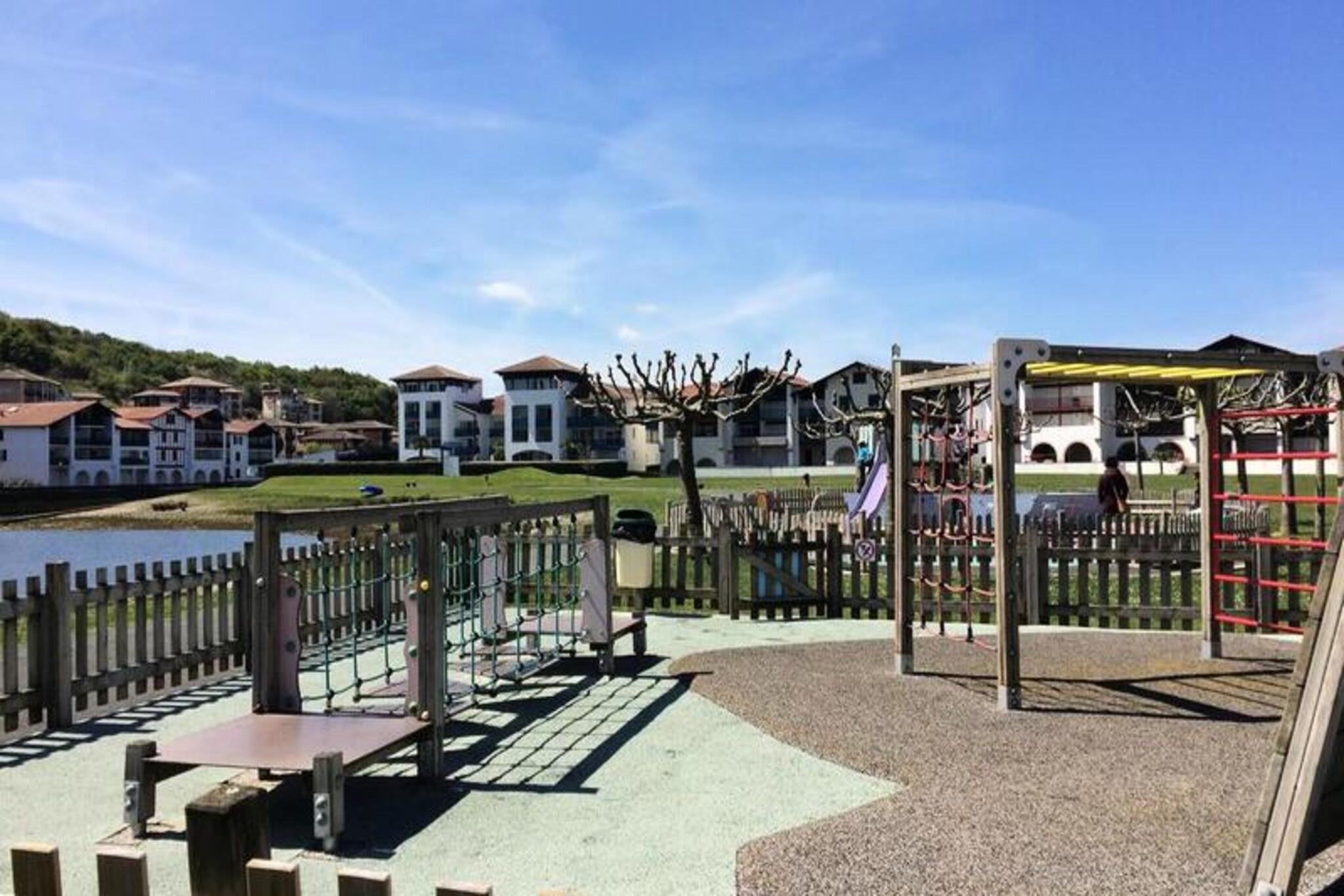 El mar y La residencia Golf Soko-Eder***, situada en una colina, en una tranquila zona residencial, ofrece una espléndida vista de la bahía de San Juan de Luz y está idealmente situada cerca de tiendas, restaurantes y una playa vigilada en verano. y la red de transporte público Hegobus. Este conjunto de 7 pequeños edificios de arquitectura andaluza ofrece una vista admirable de la bahía de San Juan de Luz custodiada por el Fuerte de Socoa y ofrece apartamentos con terraza/logia totalmente equipada (cocina, comedor, wifi). ), piscina, aparcamiento privado. La residencia se encuentra a 500 m de la playa de arena fina de Socoa por las orillas (camino peatonal) o a 700 m por carretera, a 2,5 km del centro de la ciudad de Ciboure y a 4 km del de San Juan de Luz. Hay tiendas a 500 metros y se celebra un mercado semanal a 400 metros en julio/agosto. Las ventajas de la Residencia: - En Ciboure, pequeña estación portuaria típica, junto a San Juan de Luz - Cerca de la playa de Socoa y de todos los comercios (500 metros) - Punto de partida ideal para descubrir el País Vasco: costa, interior y España. - Piscina y aparcamiento privado gratuito. - A 300 m de una pista de fitness y de una zona de juegos infantiles. - Tarifas preferenciales (surf, golf, etc.) A orillas de la bahía de San Juan de Luz, a dos pasos de España, Ciboure y su típico puerto le acogen para unas vacaciones en familia, cerca de la playa y perfectamente situado para descubrir fácilmente el País Vasco y sus atractivos. . Tenga en cuenta: El número de ocupantes no podrá superar la capacidad máxima autorizada en el alojamiento. Un bebé cuenta como una persona por derecho propio a efectos del seguro. Incluso con cuna, esta no puede superar la capacidad máxima autorizada en el alojamiento. Por ejemplo, 2 adultos y 1 bebé no podrán alojarse en un estudio 2, sino en un estudio 4 o en un apartamento de 2 habitaciones. En alojamientos para 6 personas deberán alojarse 5 adultos o 2 adultos y 3 niños + 1 bebé, etc. No se permiten camas supletorias. Mínimo 1 adulto por alojamiento. 2 Habitaciones 6 Personas. Terraza o logia. Salón con sofá convertible para 2 personas. Cocina equipada. Dormitorio con cama de matrimonio. Cabina con 2 literas. Cuarto de baño, aseo con ducha y WC. Atención: la cama alta no es adecuada para niños menores de 6 años. Acceso Wifi - Acceso Básico gratuito Acceso Wifi (consultando email y acceso a internet) en recepción, salones y alojamiento (máximo 3 dispositivos simultáneamente) Se admiten mascotas - 7EURO/noche (hasta 6 noches); 45 EURO/semana; 75 EURO/2 semanas consecutivas; 100EURO/3 semanas consecutivas; 120EURO/ 4 semanas consecutivas (con certificado antirrábico en vigor) Kit Bebé - (cama plegable norma NF EN 716 y 1 sábana de casa para 1 niño menor de 15kg + trona a partir de 6 meses): 6EURO/noche (por noche hasta 3 noches) - 20EURO/estancia a partir de 4 noches Ropa de cama - incluida Toallas - incluidas (1 alfombra de baño por baño/ducha + 2 toallas de baño + 2 toallas de mano) Limpieza final de estancia - excluyendo zona de cocina y vajilla - De 48 a 110 € Según tipologías, incluido para estancias cortas de hasta 6 noches / suplemento de 50EURO. para limpiar la zona de la cocina y los platos Aparcamiento - Aparcamiento exterior - Gratis - 1 plaza por alojamiento Desayuno - Servicio de panadería (pan y bollería) Piscina exterior no climatizada con tumbonas (abierta de abril a noviembre) Servicio de desayuno - servido en el comedor: 9EURO/adulto (a partir de 12 años) / 6EURO/niño (entre 4 y 11 años) Impuesto turístico (cargo adicional) - A pagar en el sitio según la tarifa vigente Televisión - incluida