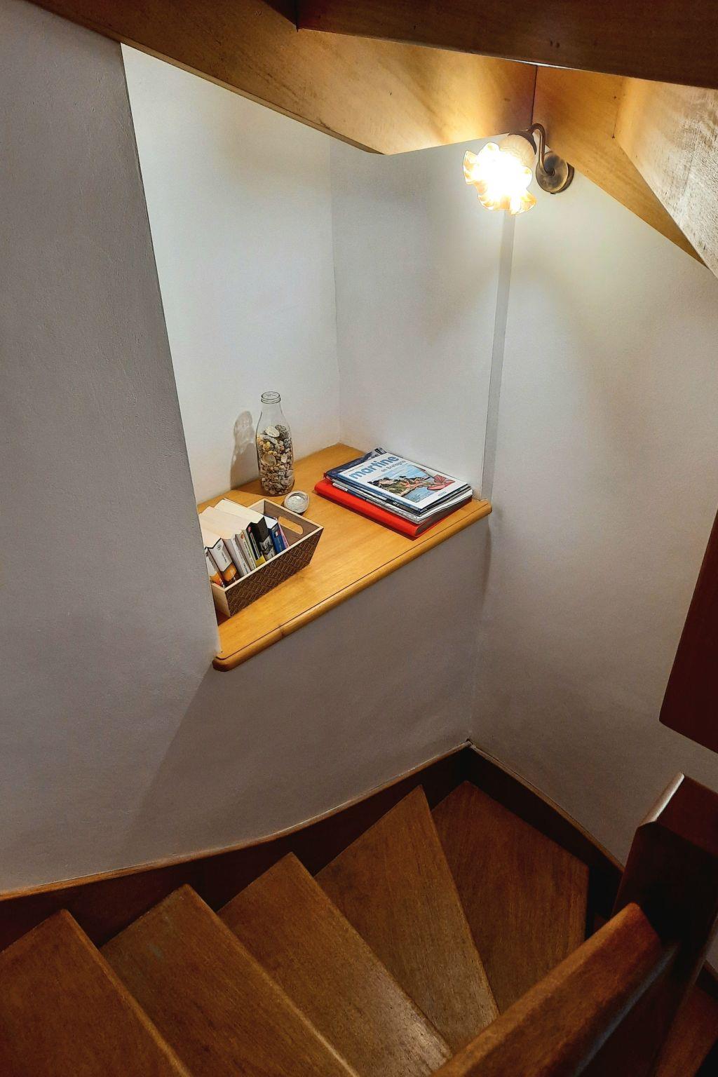 The gîte is located in the commune of Cléden-Cap-Sizun, close to the Pointe du Raz, Pointe du Van, Baie des Trépassées and the GR34 coastal footpaths. Semi-detached gîte of 50 m2 in an old farmhouse, renovated in 1992, adjoining dwellings, not inhabited.Very quiet village.The accommodation comprises a living room with fitted kitchen area, oven, dishwasher, microwave. Washing machine in adjoining room, shared with the other gîte. On the first floor, 1 bedroom with 1 double bed, 1 bathroom with bath, on the second floor, a bedroom with 2 single beds. Electric heating in all rooms. Outside, garden furniture, barbecue, swing shared with the other gîte.