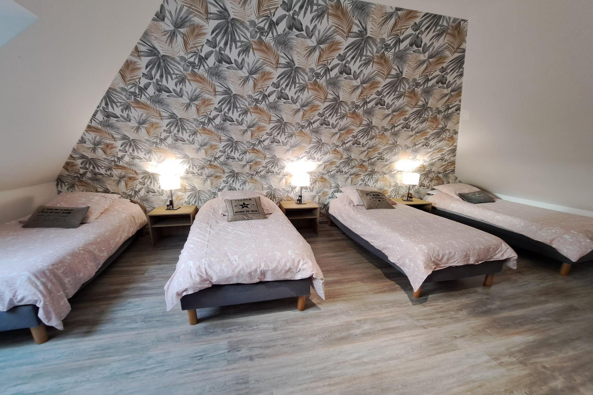 Stueetage: (Stue(Fjernsyn), åbent køkken(elkedel, brødrister, komfur(Komfur med tre kogeplader, induktion), kaffemaskine(kaffetragt), kaffemaskine(kopper), ovn, mikrobølgeovn, opvaskemaskine , køle-fryseskab), soveværelse(enkeltseng(90 x 190 cm), enkeltseng(90 x 190 cm)), Soveværelse med badeværelse(dobbeltseng(160 x 200 cm), bruser(Walk-in-bruser), håndvask), badeværelse(bruser(Walk-in-bruser), håndvask, toilet, føntørrer)) På 1. etage: (soveværelse(dobbeltseng(140 x 190 cm)), soveværelse(enkeltseng(90 x 190 cm), enkeltseng(90 x 190 cm), enkeltseng(90 x 190 cm), enkeltseng(90 x 190 cm)), toilet(håndvask)) Internetadgang, grill, tørretumbler, tremmeseng, vaskemaskine, varme(elektrisk), terrasse(indhegnet, 80 m2), have(indhegnet, 1000 m2), havemøbler, solstole, parkering, Parasol, barnestol, loungemøbler