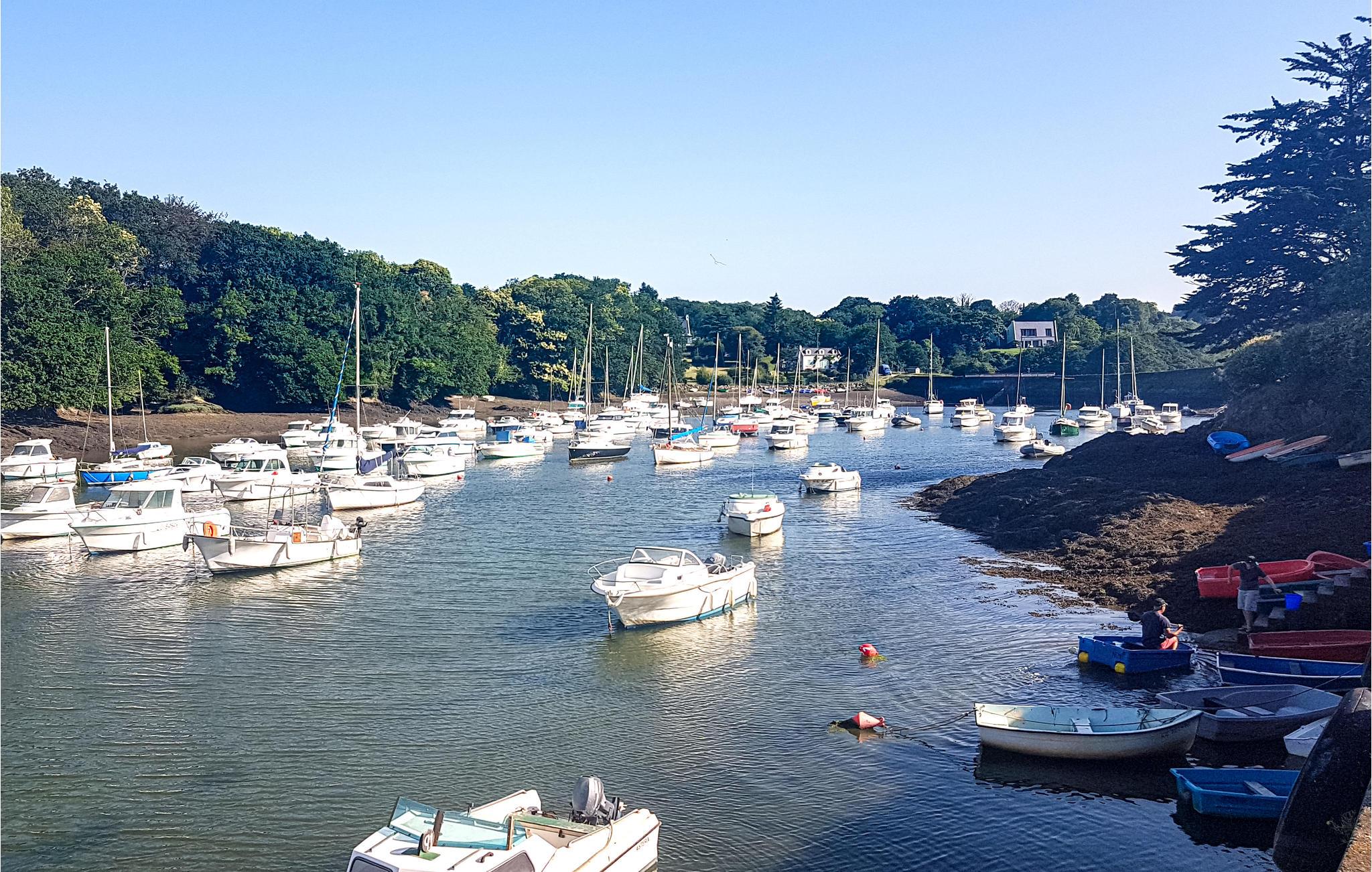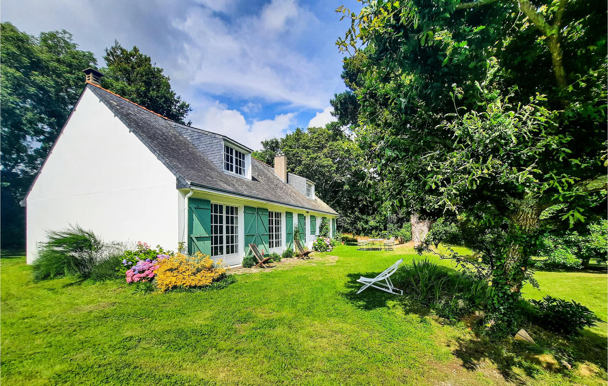 Dette feriehus i t plan nyder godt af sin rolige beliggenhed på en stor naturgrund, kun 2,6 km fra Pouldu med sine familiestrande samt i nærheden af Portsarc’h (500 m) med sin dejlige kyststi og sandstrande skjult blandt klipper. Der er ikke langt til centrum af Clohars-Carnoët og den maleriske havn af Doëlan. Tag på mange herlige gåture som igennem skoven, ved floden Laïta eller langs kysten. Ved Pouldustrandene er der livreddere i højsæsonen. Om aftenen kan I slentre igennem Quimper med sine brolagte gader.