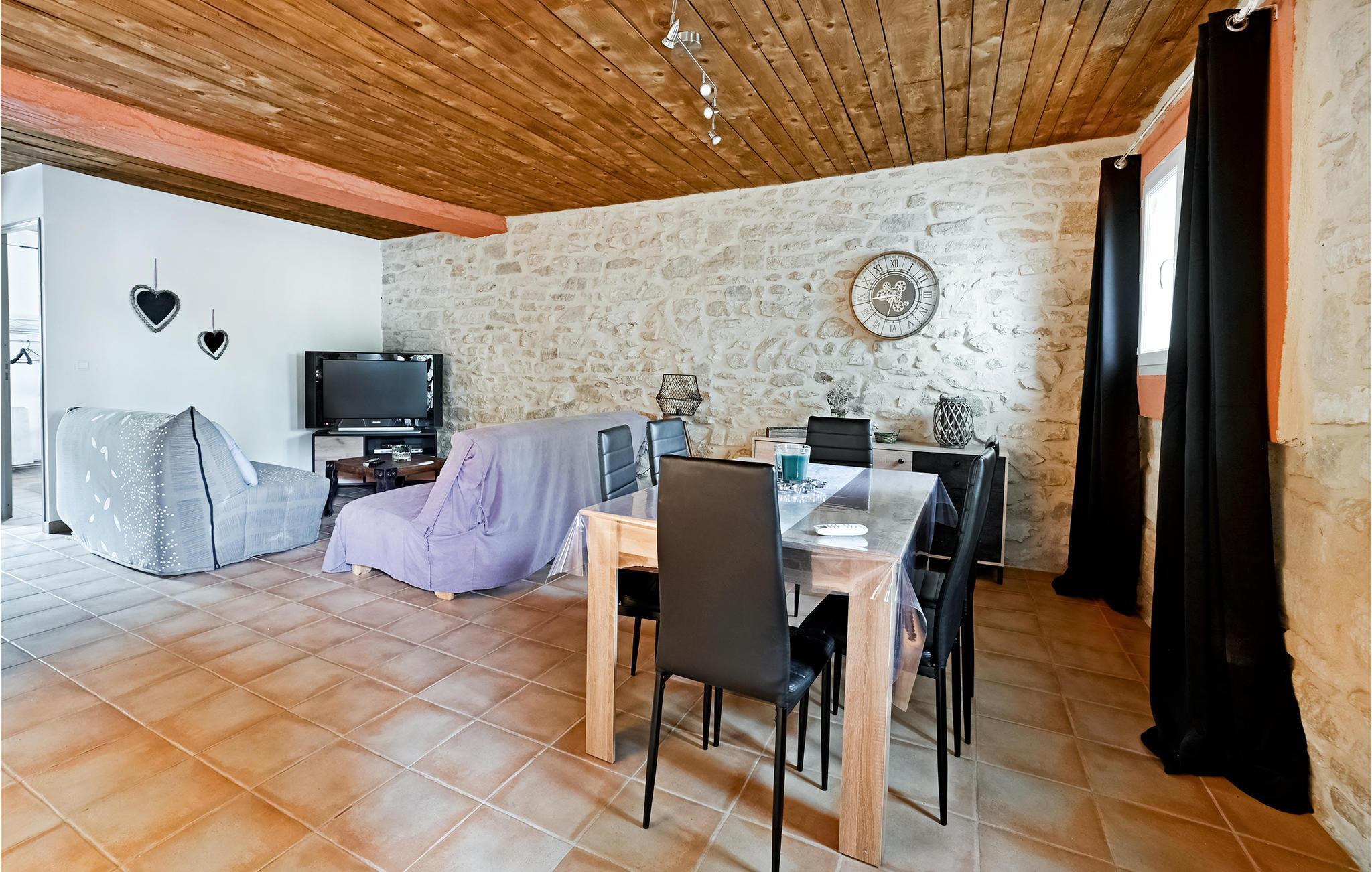 Denne funktionelt indrettede ferielejlighed ligger på en rummelig grund i et roligt område ikke langt fra Nîmes. Et behageligt ophold venter jer her. Slap af i opholdsstuen med tv, eller tilbered små måltider i det åbne køkken. Spis jeres måltider ved spisebordet, eller nyd rolige stunder med en bog i sofaen.