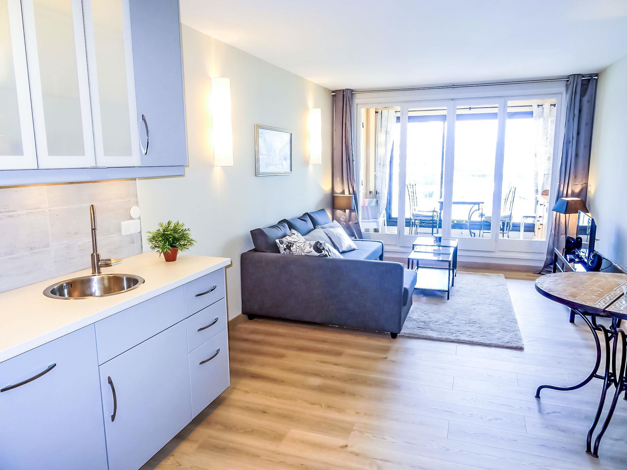 "Les Cascadelles 10", 2-room apartment 47 m2 on 2nd floor. Partly renovated in 2025, beautiful and modern furnishings: living/dining room with 1 double sofabed (1 x 140 cm, length 200 cm), TV and international TV channels (flat screen). Exit to the loggia. 1 room with 1 x 2 bunk beds (90 cm, length 200 cm), 1 french bed (180 cm, length 200 cm), air conditioning. Kitchenette (oven, dishwasher, 4 induction hot plates, freezer, electric coffee machine). Shower, sep. WC, double hand-basin. Electric heating. Balcony 2 m2. Terrace furniture, covered balcony. Beautiful view of the port. Facilities: washing machine, dryer, iron. Internet (WiFi, free). Please note: smoke alarm.