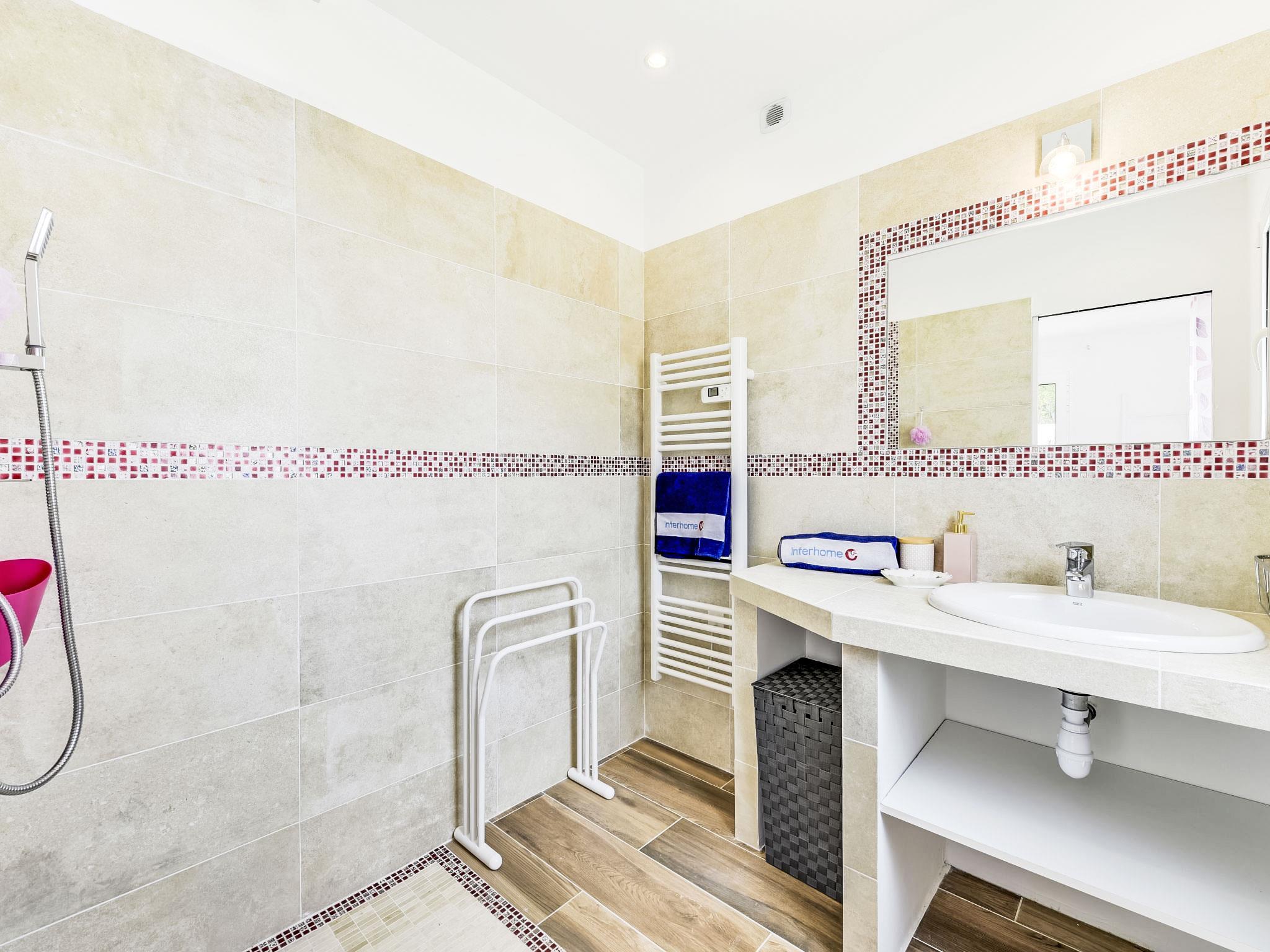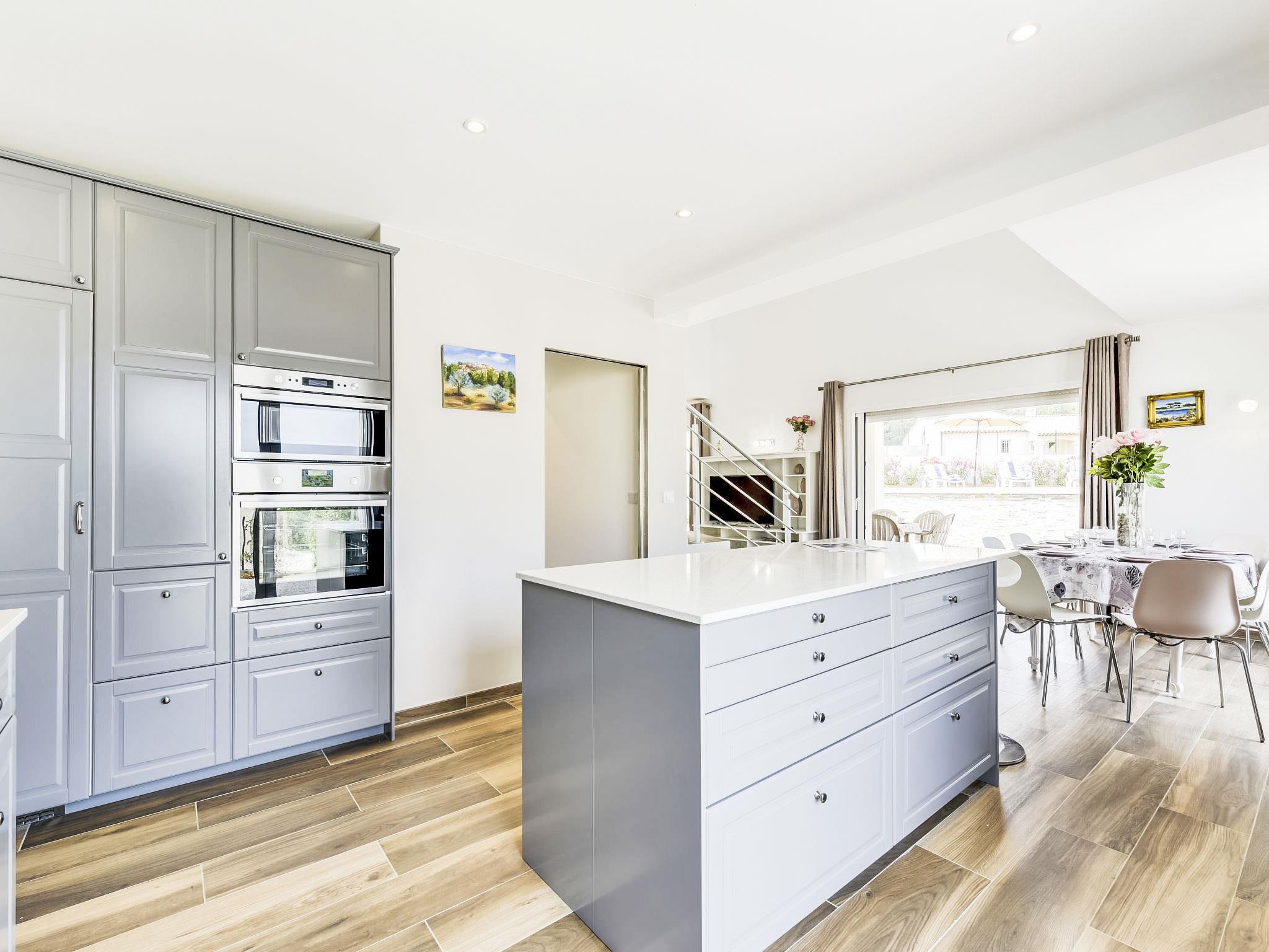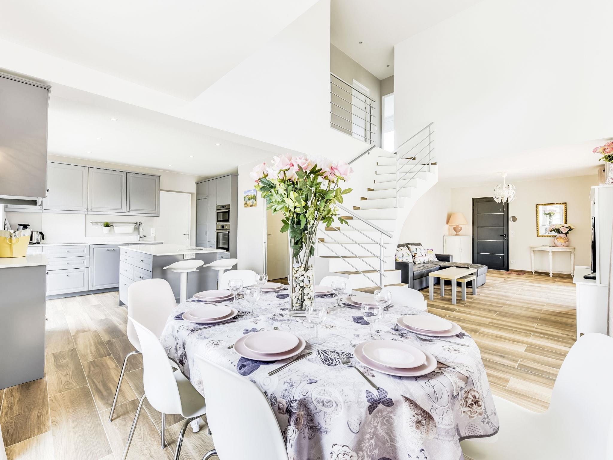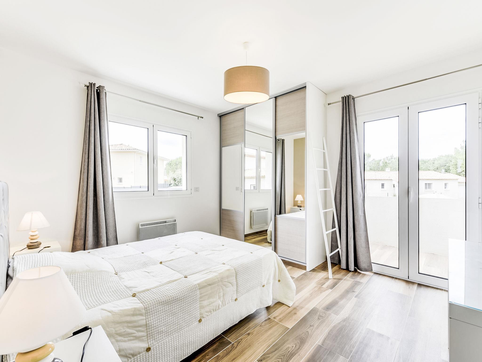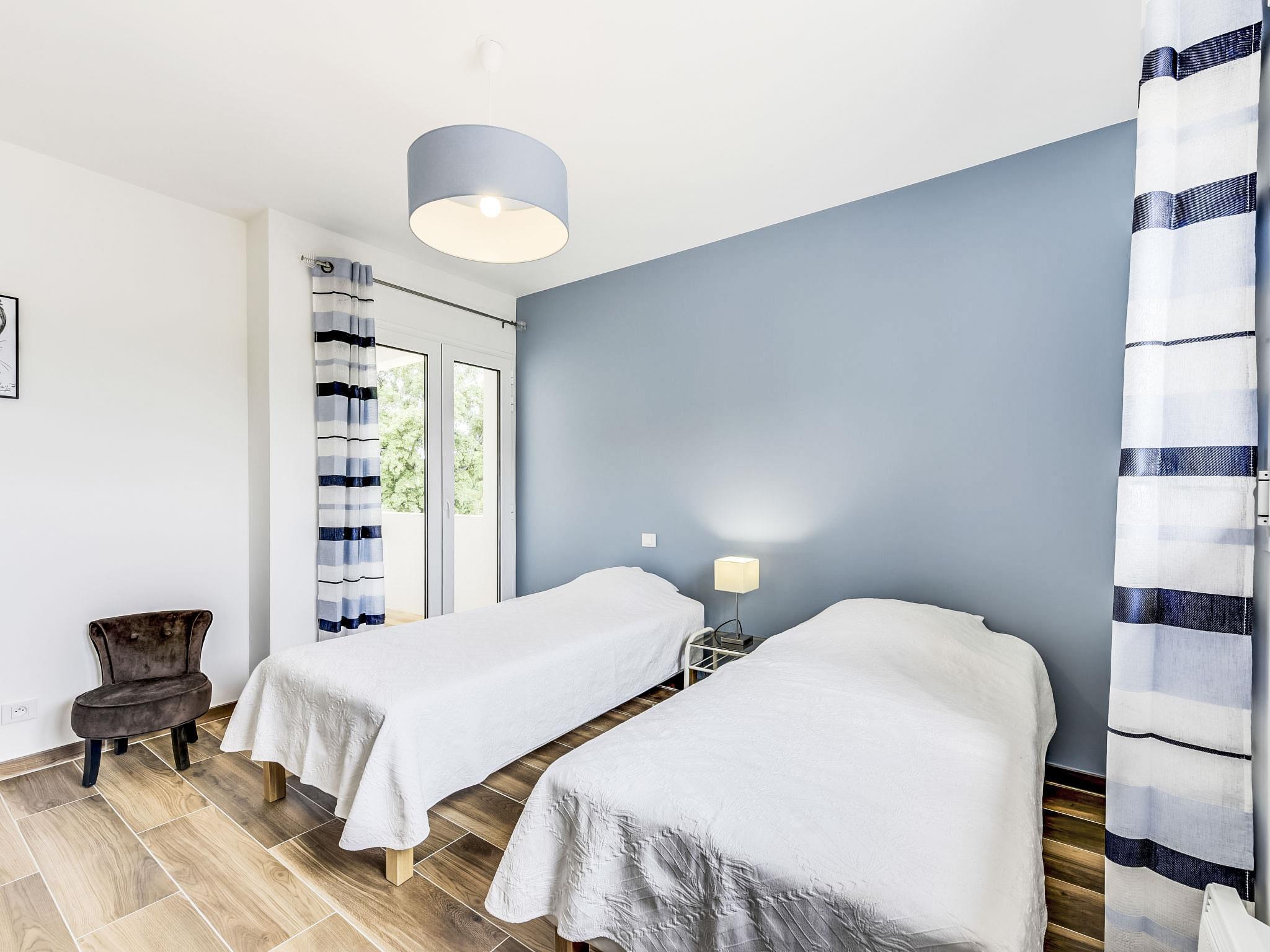 5-room house 120 m2 on 2 levels. Comfortable and modern furnishings: living/dining room with TV (flat screen). Exit to the terrace. 1 large room with 1 french bed (140 cm, length 190 cm), shower and air conditioning. Open kitchen (oven, dishwasher, 4 induction hot plates, microwave, freezer, electric coffee machine, Capsules for coffee machine (L'or barista) extra, cooking island). Sep. WC. Upper floor: 1 room with 2 beds (90 cm, length 190 cm). Exit to the terrace. 1 room with 1 french bed (140 cm, length 190 cm). 1 room with 1 french bed (140 cm, length 190 cm). Exit to the terrace. Shower/WC, sep. WC, double hand-basin. Electric heating, air-conditioning. Balcony 10 m2, terrace 40 m2. Barbecue, deck chairs (6). Facilities: washing machine, children's high chair, baby cot. Internet (WiFi, free). Please note: non-smoking house. Smoke alarm.