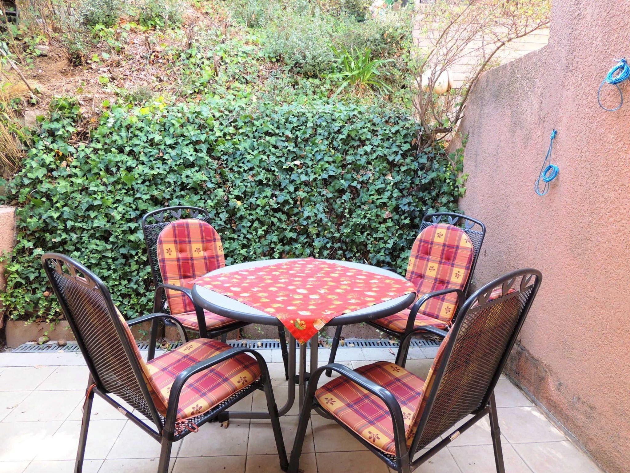 Es gibt zwei Terrassen: Eine kleine Terrasse hinter dem Haus und eine größere vor dem Haus mit einen wunderschönen Blick auf Grimaud. Im Untergeschoss befindet sich noch eine Garage.