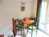 Das Ferienhaus hat in der oberen Etage ein Schlafzimmer mit einem Doppelbett, ein Bad und das WC. In der unteren Etage befindet sich das Wohnzimmer mit einer ausklappbaren Schlafcouch. Eine halbe Treppe höher ist eine offene Küche mit Sitzbereich