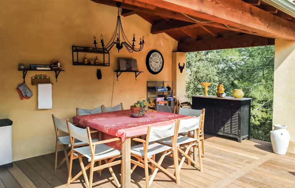 Træd udenfor og nyd den provencalske sol. Læn jer tilbage i liggestolene ved den private pool eller træk jer tilbage til skyggefulde steder under pergolaen. Udnyt den anden terrasse til at planlægge jeres dag, som I ønsker. Tilbered måltider i det overdækkede sommerkøkken, og spis udendørs ved det store bord. Om aftenen kan I slappe af i loungemøblerne med udsigt over poolen. Den lukkede grund tilbyder fred, privatliv og solrige steder hele dagen lang.