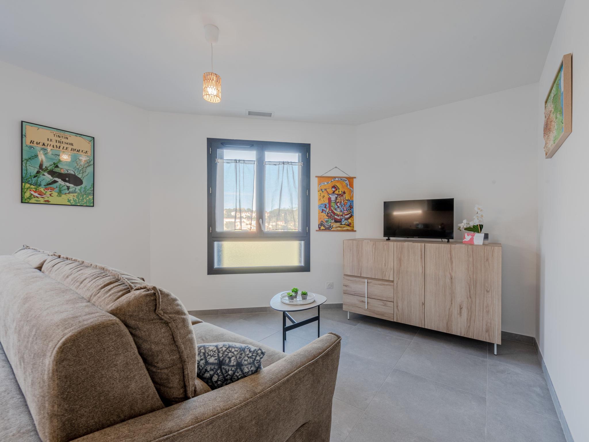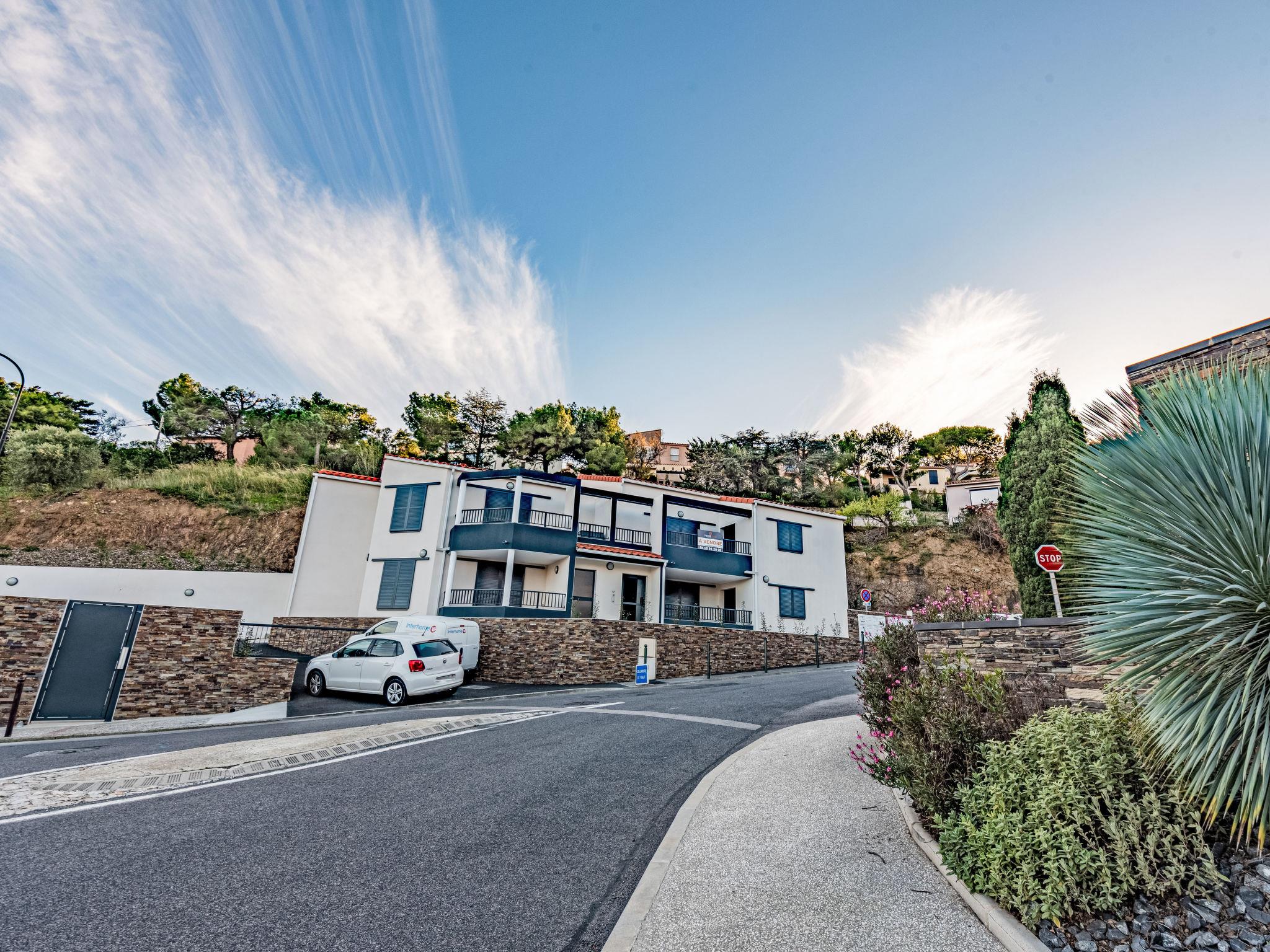 Apartment block " Collioure le haut", 2 storeys. 1.1 km from the sea, 1.1 km from the beach, on a main road. In the house: lift. Parking. Grocery 750 m, supermarket 2.5 km, restaurant 750 m, bus stop 850 m, railway station 1 km, sandy beach "Saint-Vincent" 2 km pebble beach "Port d'avall" 1.1 km.