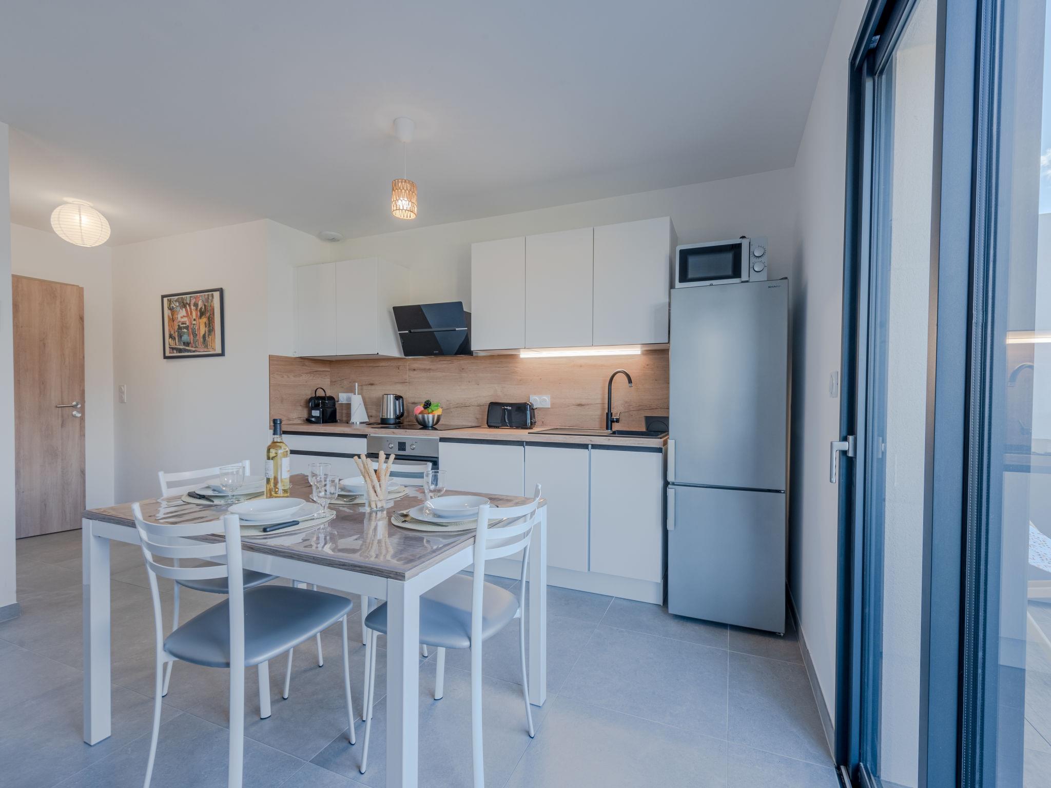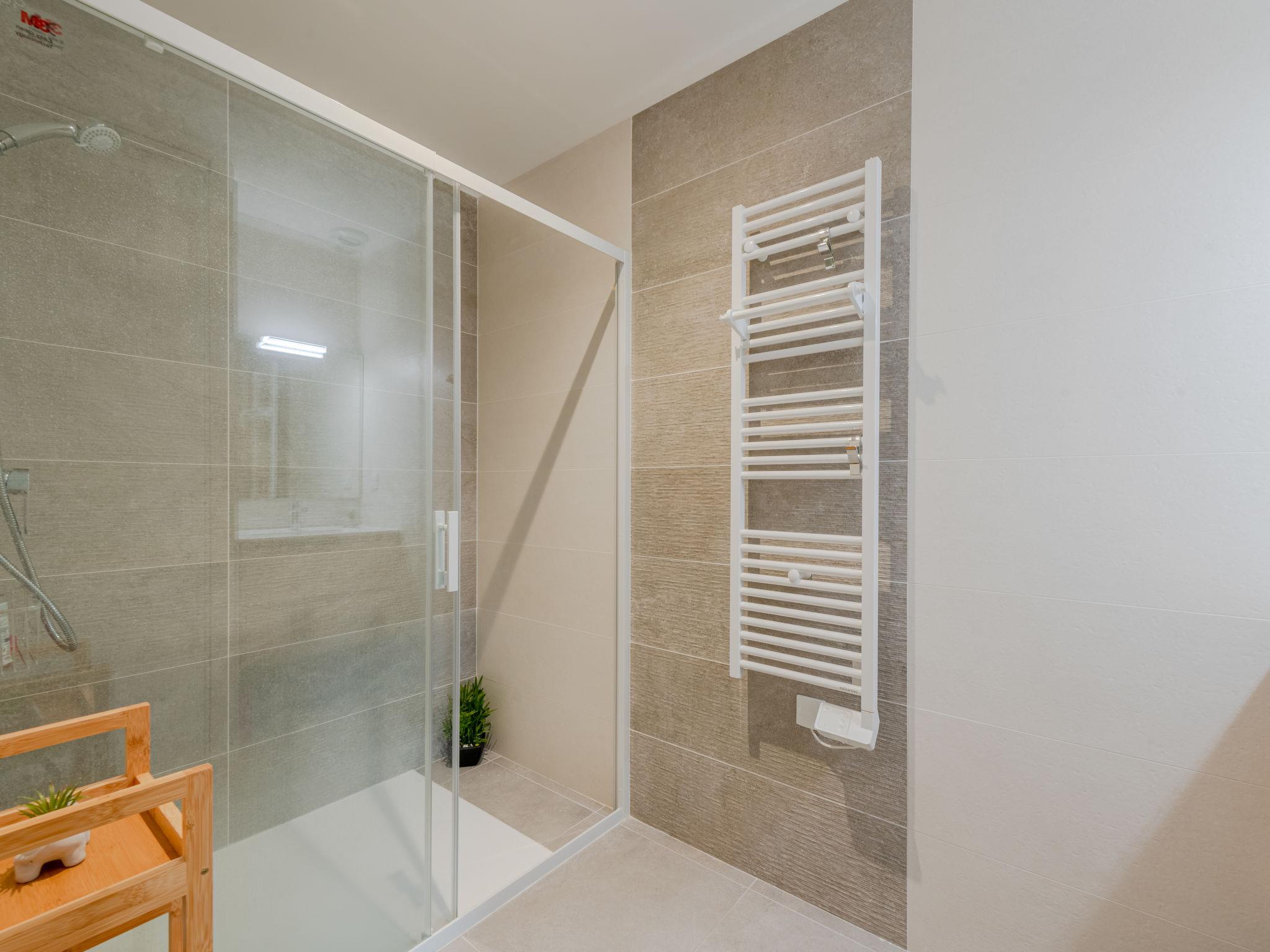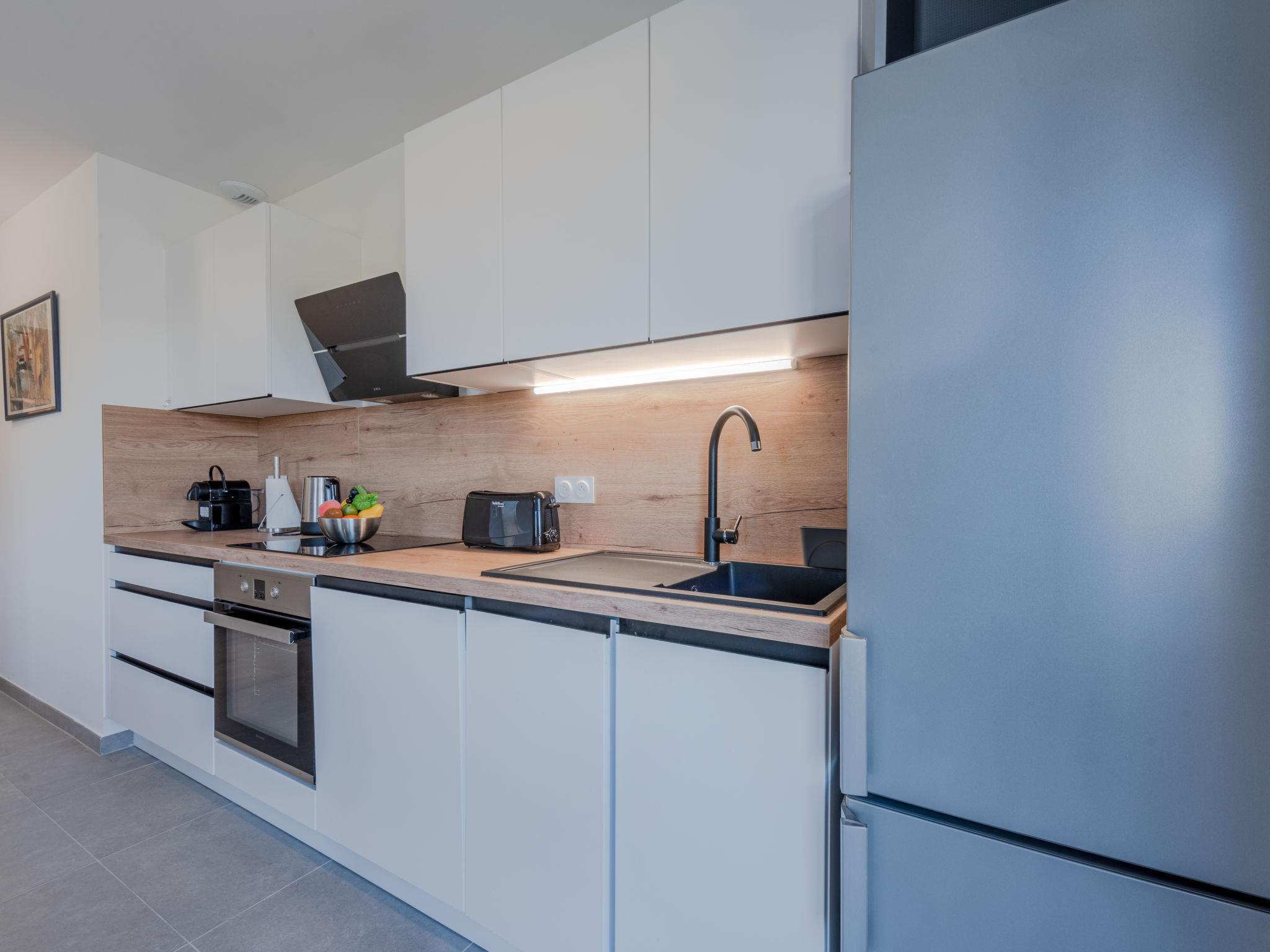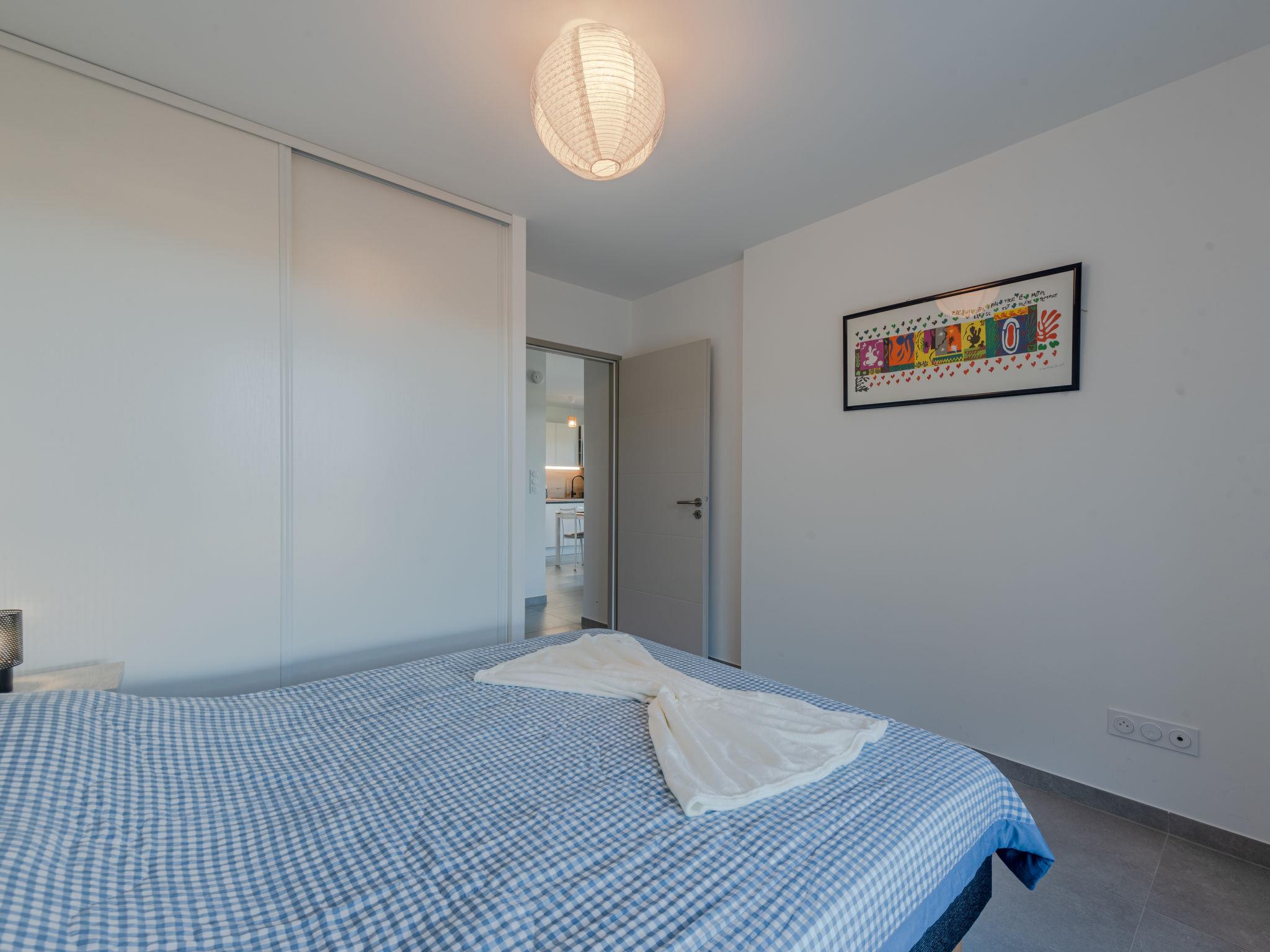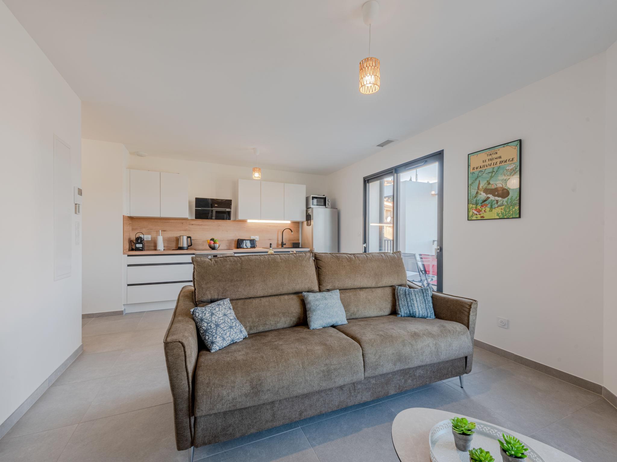 2-room apartment 43 m2 on 1st floor. Beautiful furnishings: living/dining room with 1 double sofabed (160 cm, length 195 cm), TV (flat screen). Exit to the terrace. 1 room with 1 french bed (160 cm, length 200 cm). Open kitchen (oven, dishwasher, 3 induction hot plates, toaster, kettle, microwave, freezer, electric coffee machine, Capsules for coffee machine (nespresso) extra). Shower, sep. WC. Air-conditioning, forced-air heating. Terrace 9 m2, north-east facing position. Terrace furniture. Distant view of the sea. Facilities: washing machine, iron. Internet (WiFi, free). Parking (1 car). Please note: non-smokers only. Smoke alarm. Offer by a private individual according to Art. 155, IV of CGI.