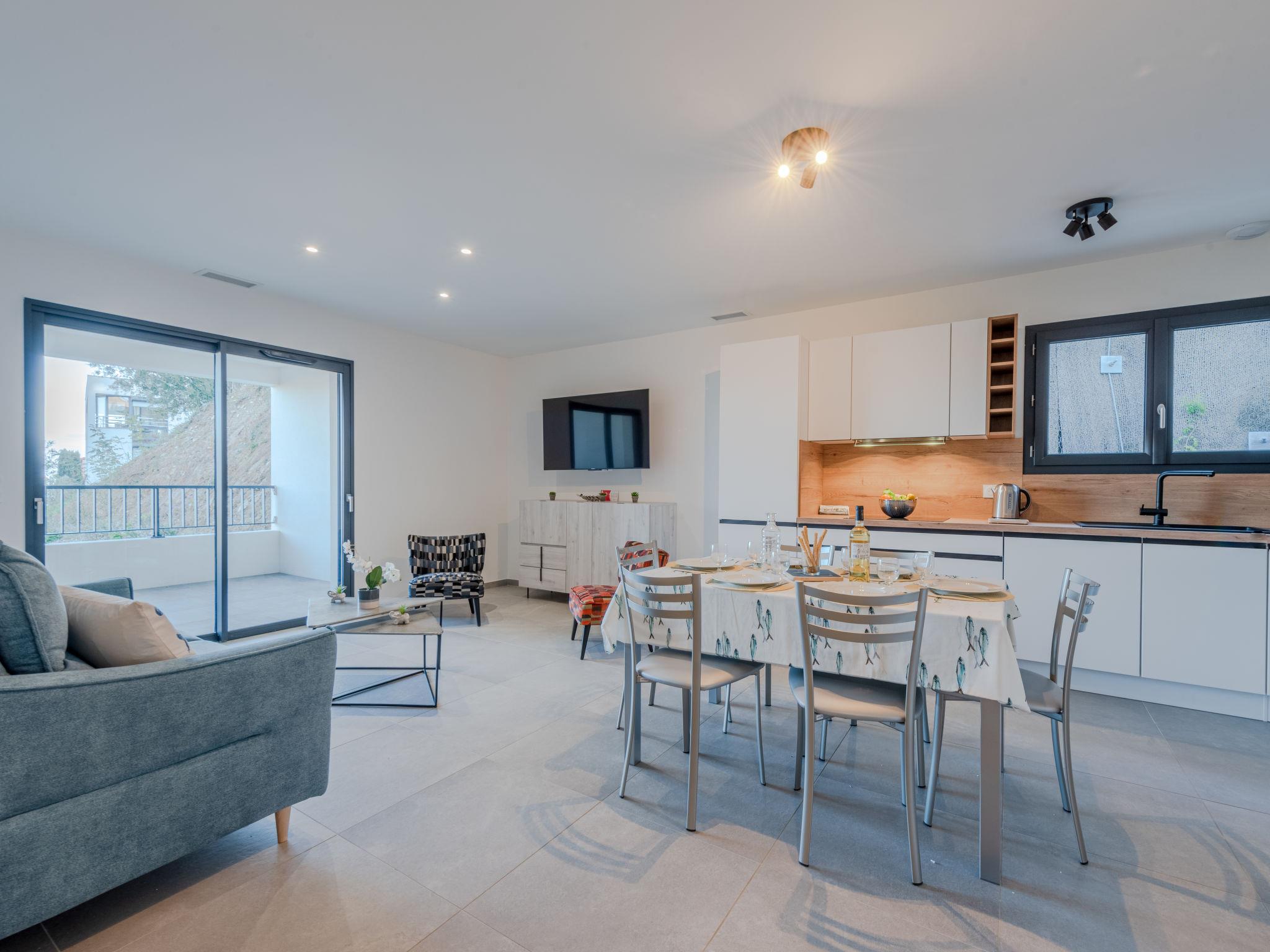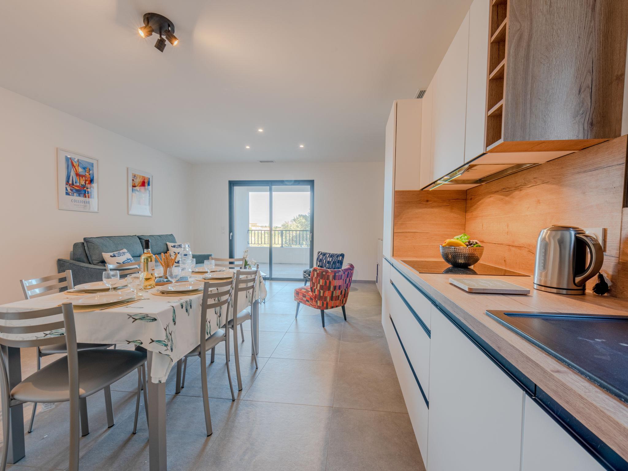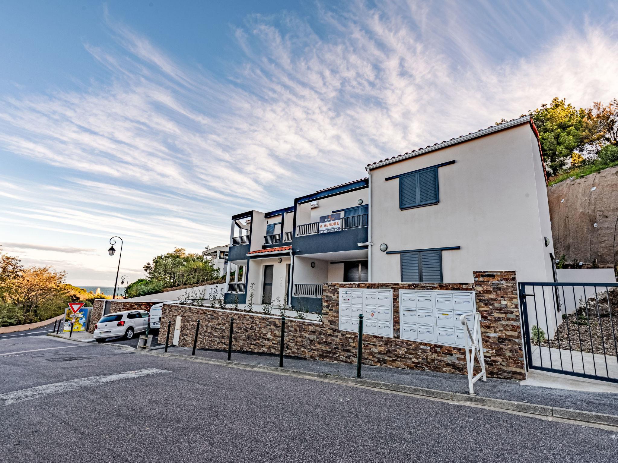 Apartment block " Collioure le haut", 2 storeys. 1.1 km from the sea, 1.1 km from the beach, on a main road. In the house: lift. Parking. Grocery 750 m, supermarket 2.5 km, restaurant 750 m, bus stop 850 m, railway station 1 km, sandy beach "Saint-Vincent" 2 km pebble beach "Port d'avall" 1.1 km.