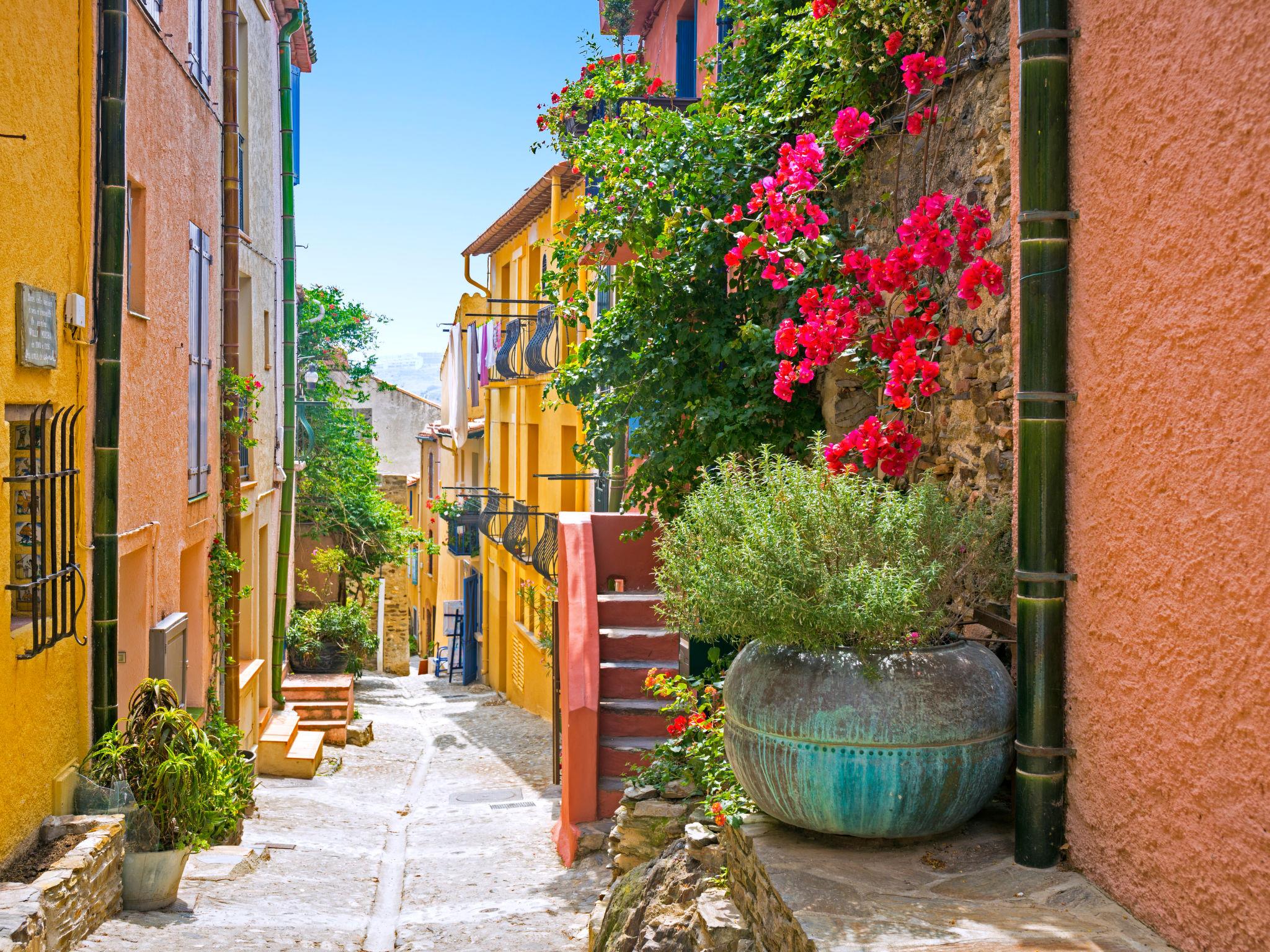 Residence "Les Batteries". On the outskirts, 1.5 km from the centre of Collioure, in a sunny position, 50 m from the sea, 50 m from the beach, direct access to the beach. Parking. Shop 1 km, supermarket 400 m, restaurant 500 m, bus stop 300 m, railway station "Collioure" 2.5 km, pebble beach "Plage des Batteries" 50 m, diving center 3 km. Sports harbour 1 km, golf course (27 hole) 25 km, sailing school 2.2 km. Nearby attractions: Château Royal de Collioure 2 km, Port Vendres 1 km, Banyuls sur Mer 8 km.