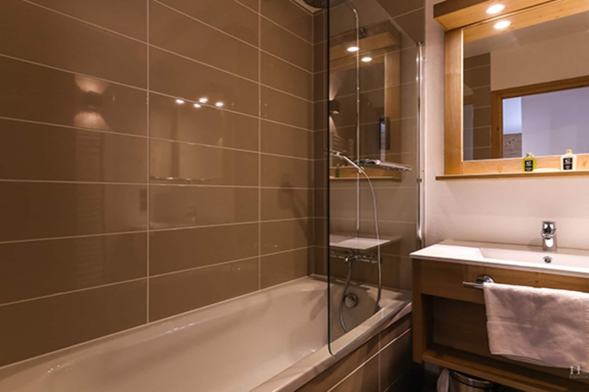 Stue(dobbeltsovesofa(dobbelt dynebetræk, 140 x 190 cm), Fjernsyn(fladskærm, parabol)), åbent køkken(kogeplade(glaskeramisk), elkedel, brødrister, kaffemaskine, ovn, mikrobølgeovn, opvaskemaskine , køleskab, ), soveværelse(dobbeltseng(160 x 190 cm)), badeværelse(bruser, toilet), legeværelse, Internetadgang, Parkering, tremmeseng, sauna, balkon, swimmingpool(deles med andre gæster, opvarmet, indendørs), barnestol, Mountain view