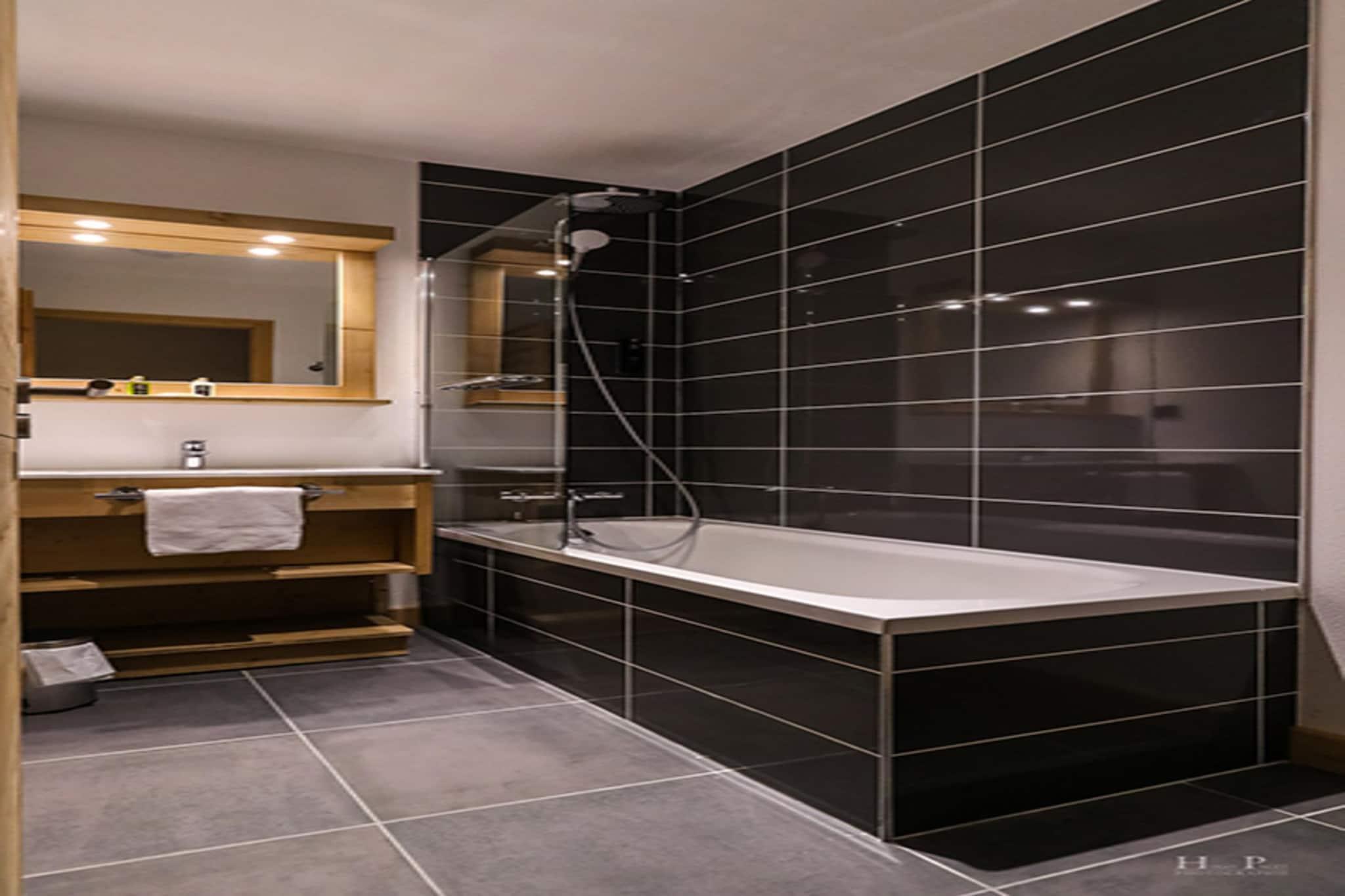 Stue(dobbeltsovesofa(dobbelt dynebetræk, 140 x 190 cm), Fjernsyn(parabol)), åbent køkken(kogeplade, elkedel, brødrister, kaffemaskine, ovn, mikrobølgeovn, opvaskemaskine , køleskab, ), soveværelse(dobbeltseng(160 x 190 cm)), soveværelse(enkeltseng(90 x 190 cm), enkeltseng(90 x 190 cm)), badeværelse(bruser, toilet), toilet(toilet), sauna, balkon, swimmingpool(deles med andre gæster, opvarmet, indendørs)