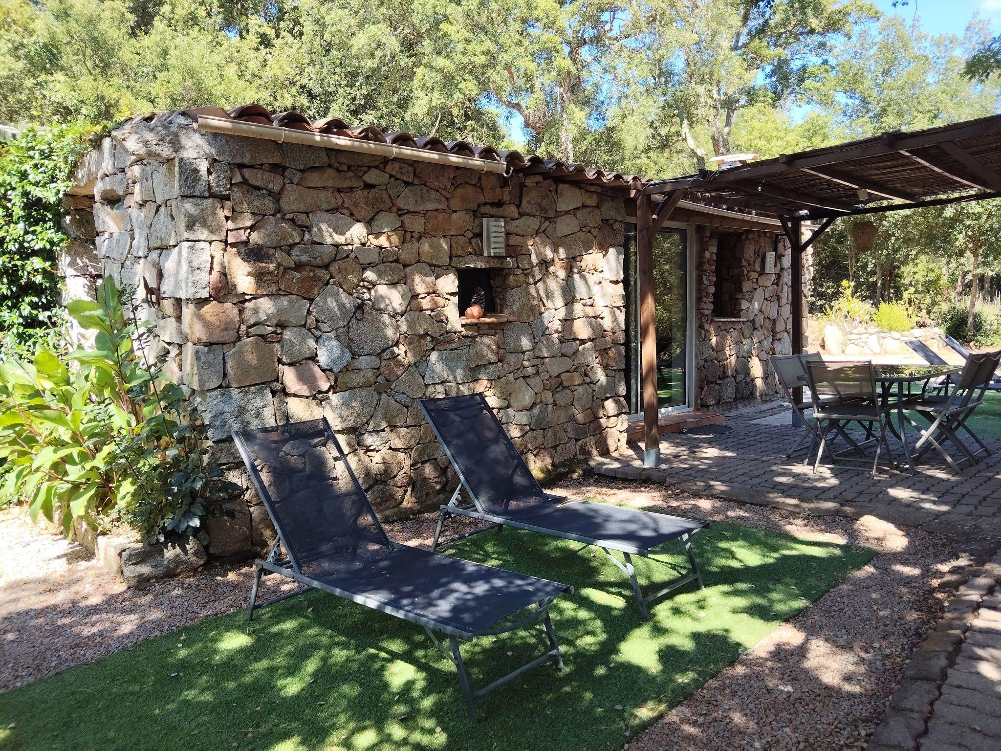 Chalet in the heart of the maquis 65 m² on 2000 m² of land Shared heated pool 5 x 10 m, view of the Ortu mountains at the foot of the famous GR20. The beaches are 10 minutes away and the river 5 minutes by car.