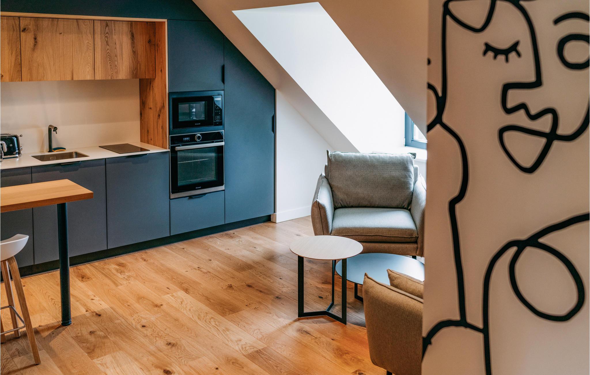 Lejligheden er yderst stilfuldt indrettet med komfortable møbler af høj kvalitet. Se frem til at nyde kaffen på altanen til den imponerende havudsigt.