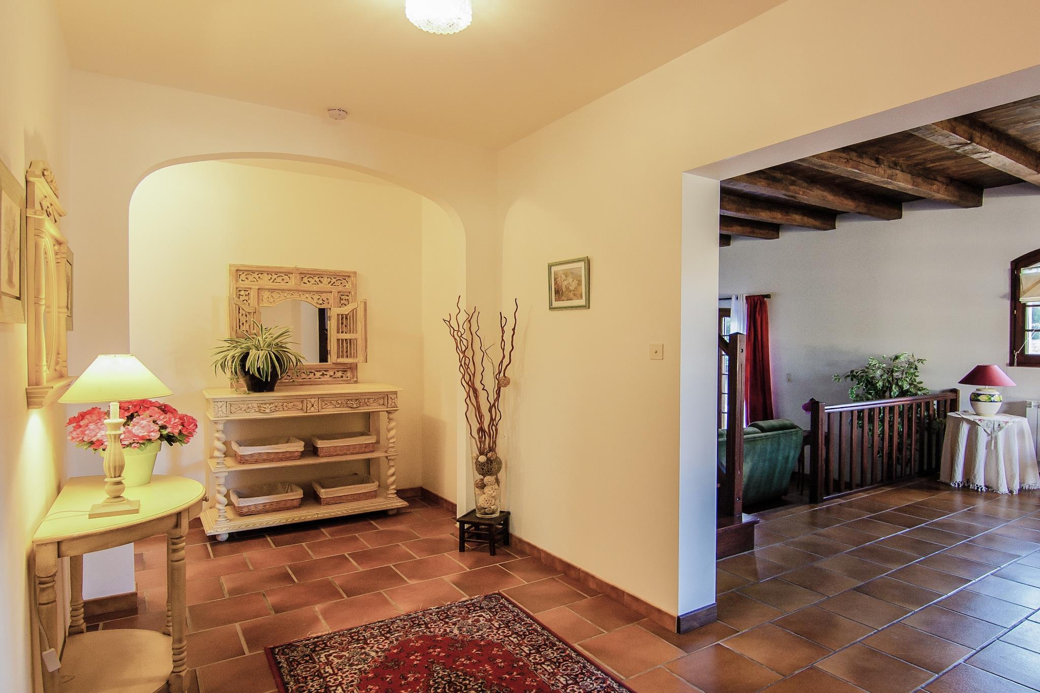 Stueetage: (Køkken(elkedel, brødrister, komfur(gas, elektrisk), kaffemaskine(kaffetragt), ovn, mikrobølgeovn, opvaskemaskine , køle-fryseskab, vaskemaskine), stue / spisestue(Fjernsyn, spisebord, pejs, DVD-afspiller), soveværelse(dobbeltseng(twin duvet , synthetics, 140 x 190 cm)), soveværelse(dobbeltseng(twin duvet , synthetics, 140 x 190 cm)), soveværelse(2x enkeltseng(Dyne, syntetiske, 90 x 190 cm)), badeværelse(badekar, 2x håndvask, toilet), toilet) varme(elektrisk), terrasse(privat), have(indhegnet, > 1000 m2), havemøbler, grill(trækul), parkering, swimmingpool(privat, 10 x 4 m., opened from May upto and including Sep), barneseng, barnestol
