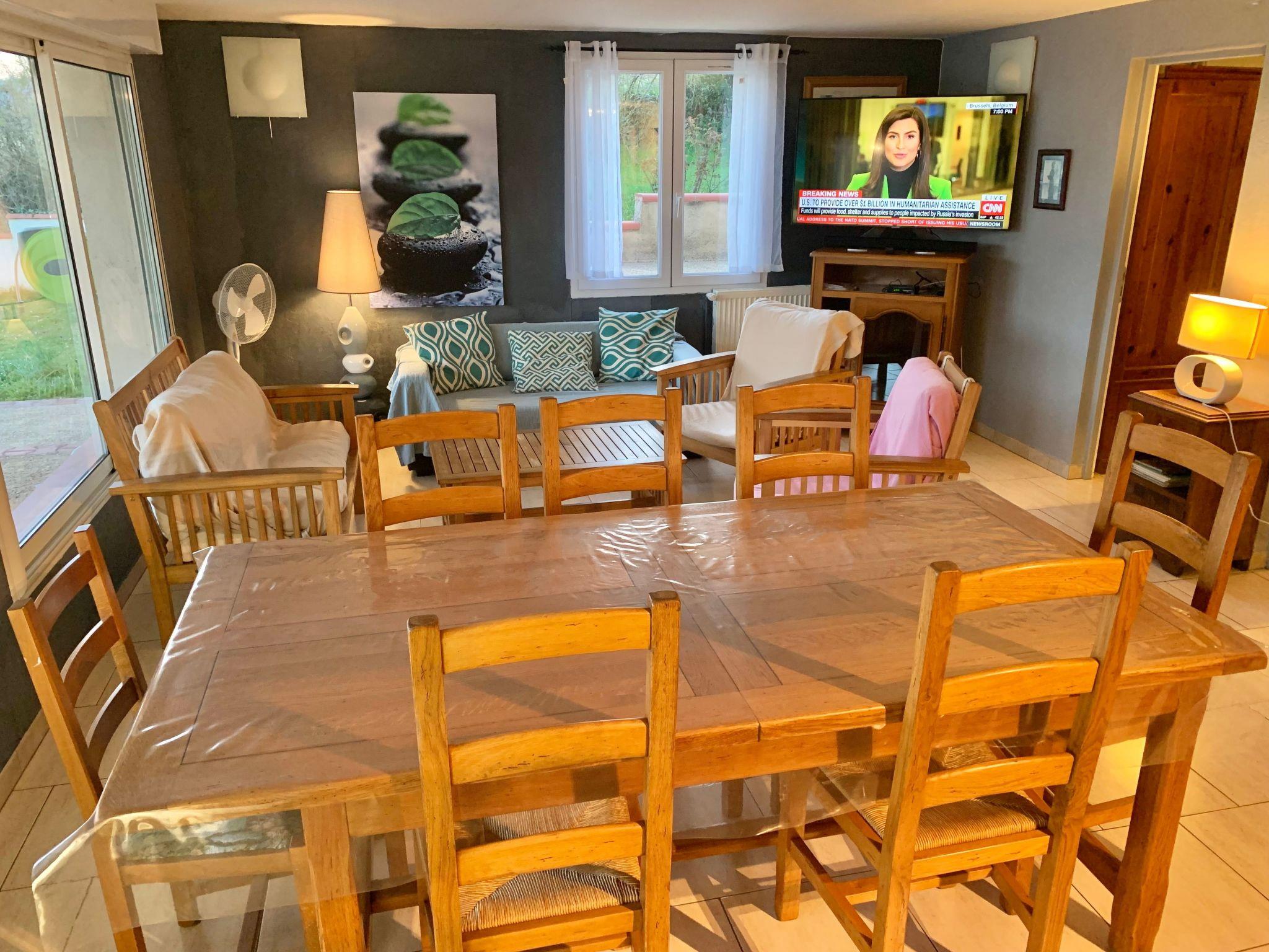 Highlights: - Covered pool with a heat pump and treated water available year-round. It can be used when the weather is a little milder. - The view from the terraces over the valley and fields is very beautiful. - Deer, rabbits, pheasants, and other wildlife can often be seen in the fields. - The terraces are equipped with garden furniture and a barbecue.
