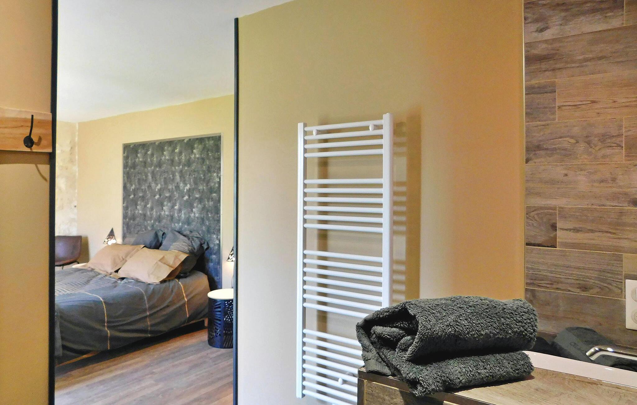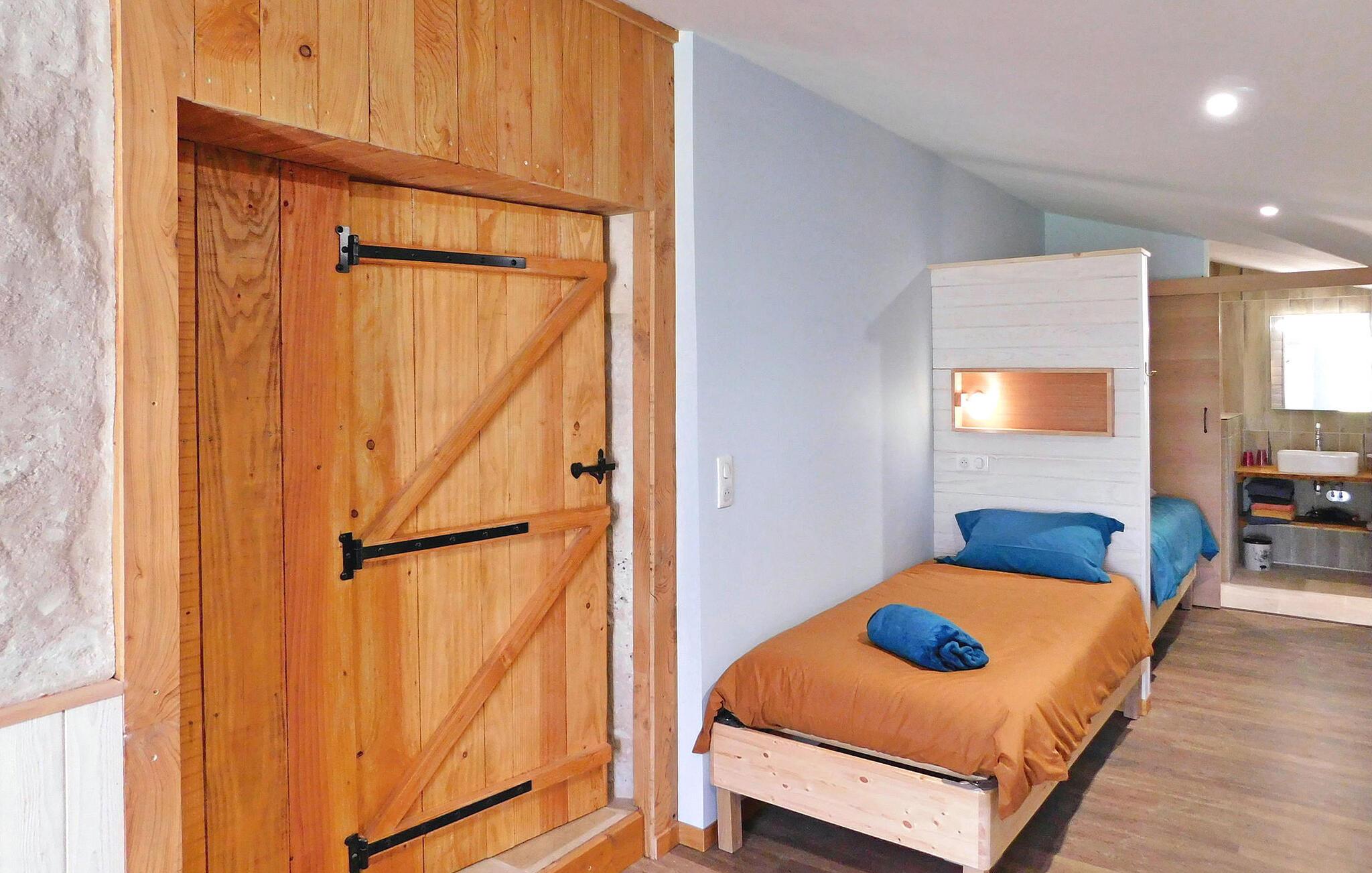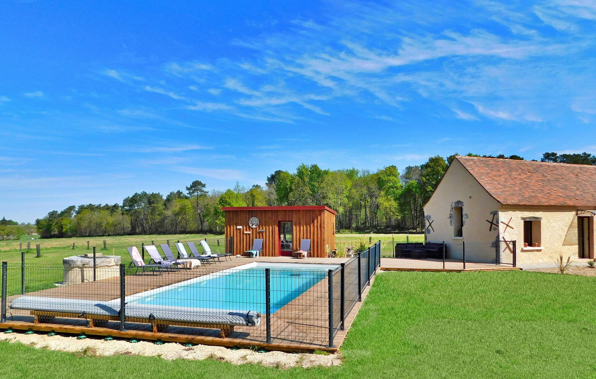 Beliggende midt i det fængslende landskab i den lilla Périgord, tilbyder dette ekspansive feriehus masser af plads og komfort for gæster. Med boliger i stueetagen byder huset på en indbydende opholdsstue med aircondition samt en rummelig spiseplads ved siden af et veludstyret køkken med moderne bekvemmeligheder. Soveværelserne består af tre en-suite dobbeltværelser og et fjerde soveværelse indrettet med 6 enkeltsenge, ideel til teenagere eller børn, hver med sit eget brusebad. Ejendommen kan prale af en betydelig skovklædt park med udendørsmøbler og en gynge, der byder på fredfyldte omgivelser. Den private pool, sikret af en dykkeralarm og omgivende hegn, giver et afslappende tilflugtssted fra det varme sommersolskin. Derudover supplerer to picnicborde med plads til 6 personer hver og otte liggestole udendørsområdet, mens et udpeget parkeringsområde fuldender faciliteterne. Feriehuset ligger på landet i hjertet af Périgord Pourpre. Landsbyen Conne de Labarde er meget tæt på, men har ingen lokale butikker. Du vil finde butikker i Creysse butikker og et indkøbscenter ca. 13 km væk. Nærliggende Monbazillac er berømt for sine vinmarker og er et besøg værd. Nyd din ferie i en bondegård i Dordogne.