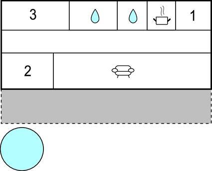 Badeværelse 5m2 (nr. 1) - WC. Varmt og koldt vand. Bruser