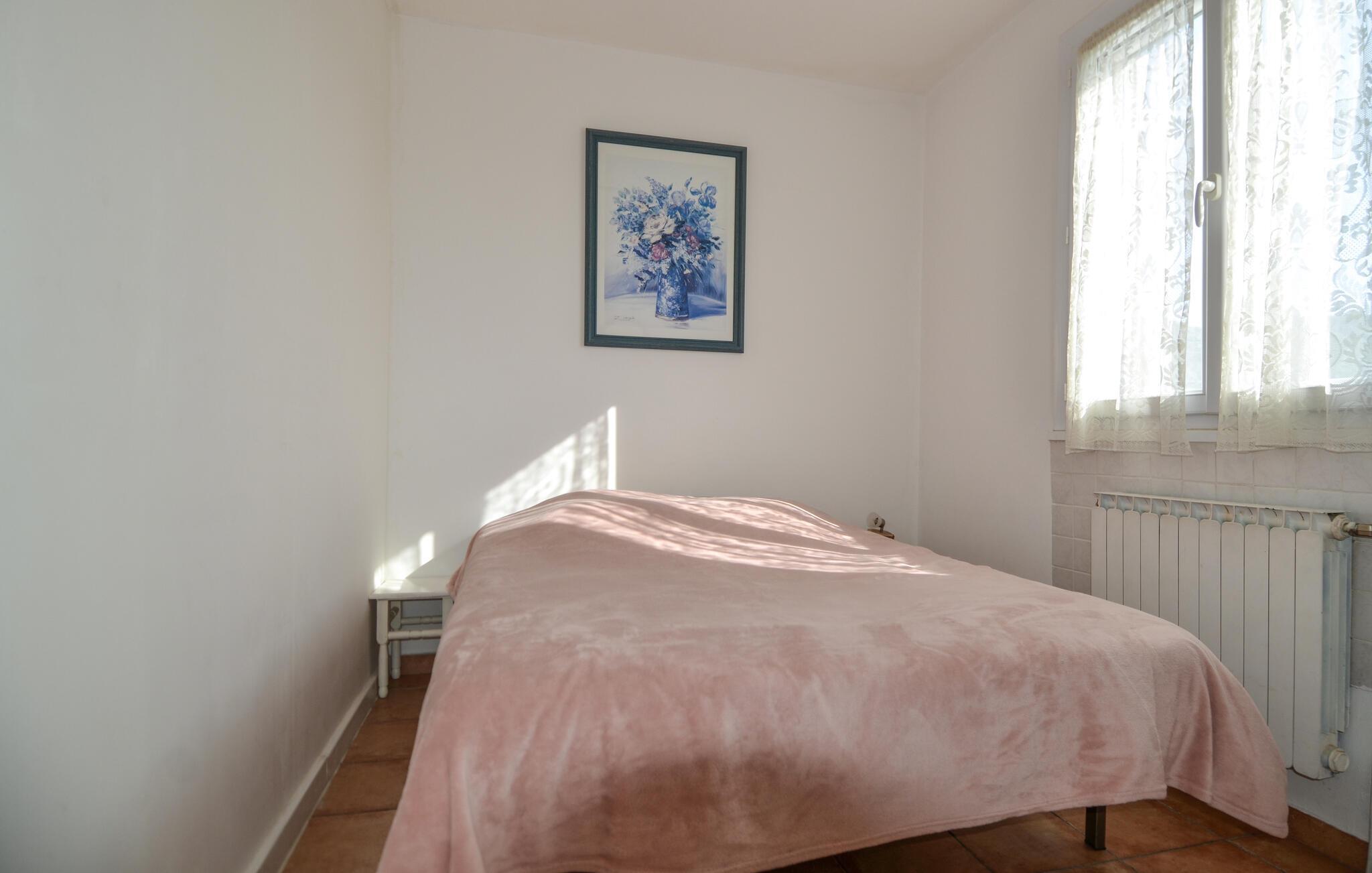 Det roligt beliggende feriehus er en praktisk base for familier eller små grupper, der ønsker en afslappet ferie i det sydlige Frankrig. Grunden ligger i udkanten af en lille landsby, omgivet af duftende lavendel og frodigt grønt. Træd ind i opholdsstuen med komfortable møbler, tv og pejs. Brug det store spisebord til fælles måltider med udsigt til haven. I det rustikke køkken kan I nemt tilberede enkle retter, også i ferien.