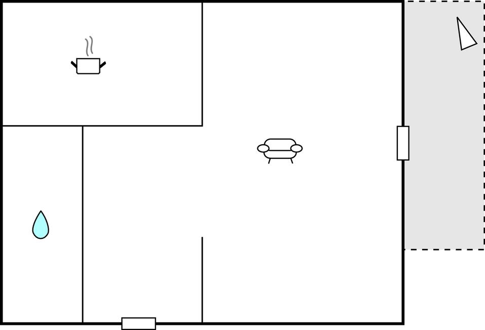 Opholdsstue 17m2 - 1 Soveplads. (Enkeltseng(e)). 2 Sovepladser. (Dobbeltseng(e)).