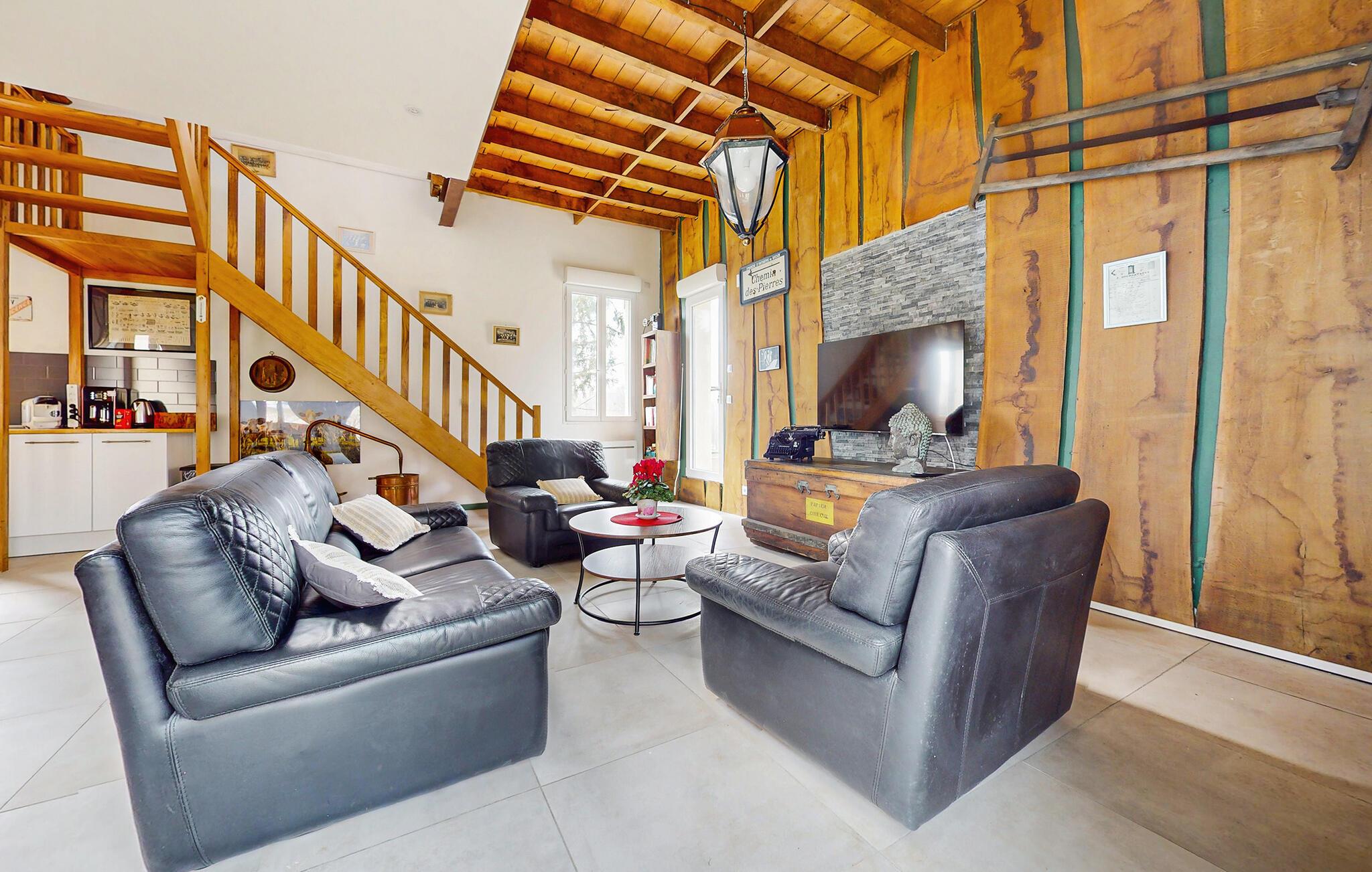 Dette lyse og rummelige feriehus skylder sin oprindelige og venlige atmosfære sin oprindelse: I holder ferie her i et tidligere savværk, der er blevet omdannet til en hyggelig feriebolig. Brug friske markedsprodukter til at fremtrylle lækre retter i det moderne køkken og nyd den indbydende stemning ved det lange træbord. Spil bordtennis eller dart og slap af på de komfortable sofaer efter en lang dag.