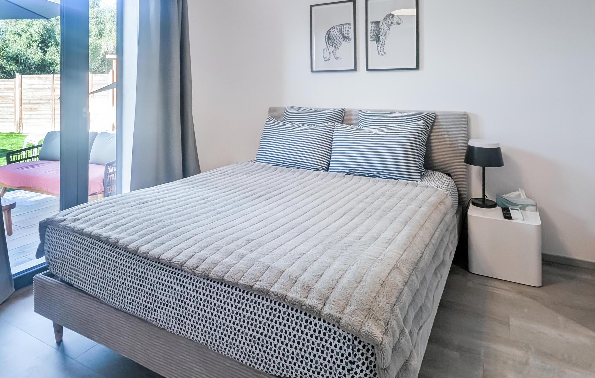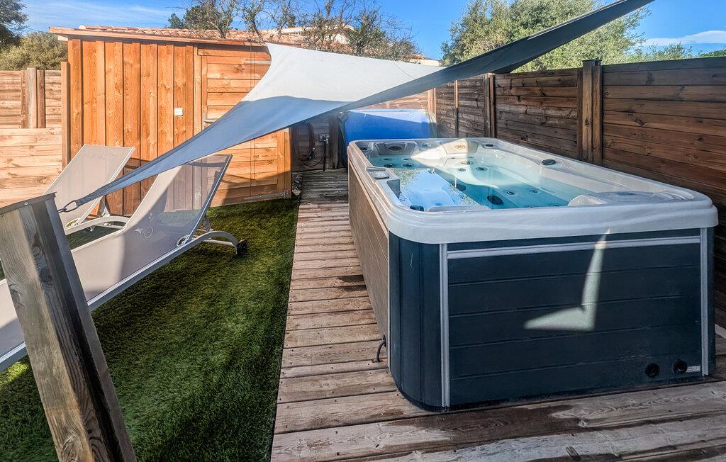 Dette feriehus nær Roquefort-les-Pins på den franske riviera tilbyder jer et luksuriøst tilflugtssted med et strejf af elegance. Nyd afslappende dage i den private pool eller forkæl jer selv med en pause i det udendørs spabad. Husets moderne indretning sikrer maksimal komfort, mens den solrige have med liggestole og en skyggefuld spiseplads lægger op til hyggestunder. Indenfor finder I en stilfuldt møbleret stue, ideel til afslappende aftener. Det moderne køkken tilbyder alt hvad I behøver til jeres måltider. Forbered en lækker aftenmiddag her og server den udendørs. Ejendommen er ideelt beliggende. Kun få minutter fra den charmerende landsby Roquefort-les-Pins kan I nyde de rolige omgivelser, mens I udforsker Rivieraens højdepunkter. Oplev strandene i Villeneuve-Loubet eller de berømte byer Nice, Cannes og Grasse. Pak jeres kufferter og oplev magien ved Cote d'Azur.