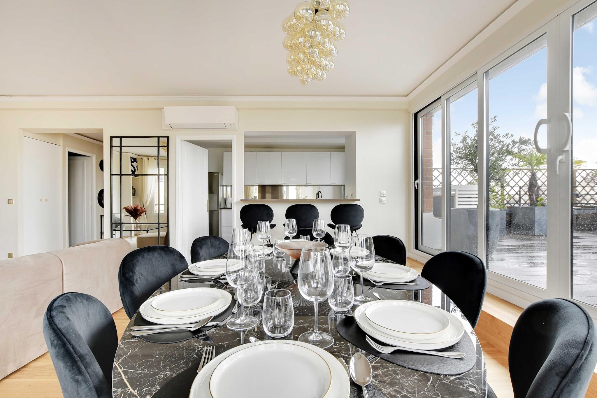 På 4. etage: (Stue(spisebord), Køkken(kakkelovn, elkedel, brødrister, kaffemaskine(espresso), ovn, mikrobølgeovn, opvaskemaskine , køleskab, , , Wine glasses), soveværelse(dobbeltseng), soveværelse(dobbeltseng), soveværelse(dobbeltseng), badeværelse(bruser, toilet)) , , , , , , Førstehjælp, Legeområde, Fjernsyn, tørretumbler, vaskemaskine, balkon eller terrasse, varme, klimaanlæg, strygejern, føntørrer, Håndklæder/sengelinned (inkl.), , , , Carbon monoxide detector, Cleaning Disinfection, Downtown, Enhanced cleaning practices, High touch surfaces disinfected, Long term stays allowed, Town