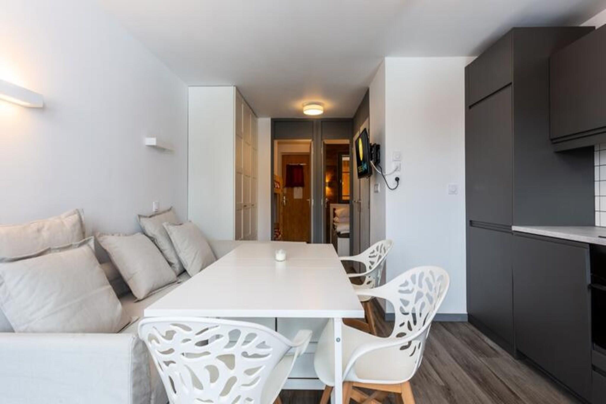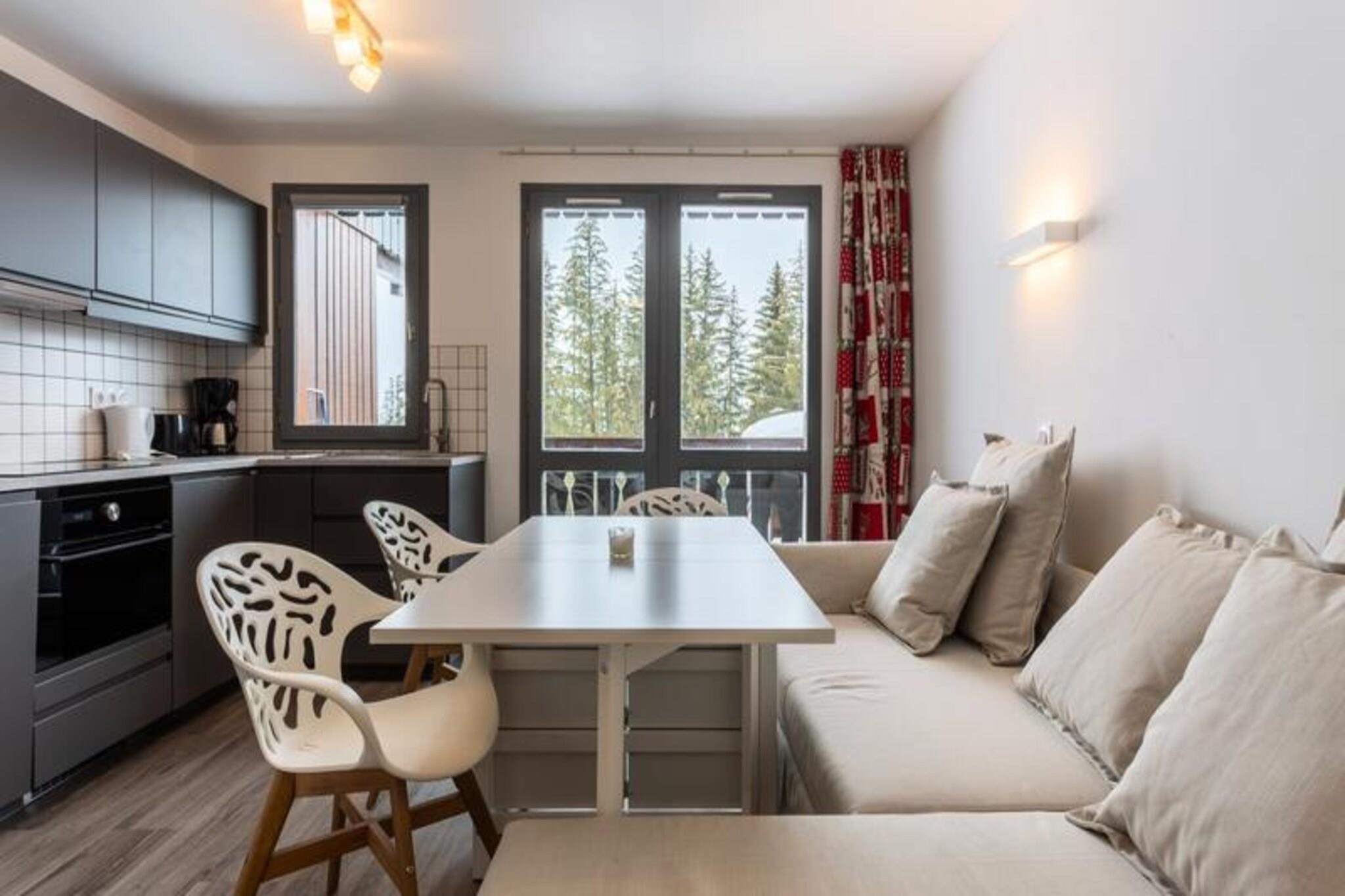 Denne hyggelige lejlighed i chalet-stil i Courchevel 1550 tilbyder komfortabel indkvartering for op til 6 personer. Det har en stue med en sovesofa til to, et soveværelse med en dobbeltseng og et kabineområde med køjesenge til to. Et separat toilet og badeværelse med badekar giver bekvemmelighed for alle gæster. Lejligheden har også balkon og er kæledyrsvenlig mod et tillægsgebyr. Sengelinned og håndklæder er tilgængelige efter anmodning og mod et ekstra gebyr, og slutrengøring er obligatorisk. Daglig rengøring kan arrangeres mod et tillægsgebyr. Ejendommen er ideelt beliggende til vinter- og sommeraktiviteter. Om vinteren kan gæsterne nyde ski-in/ski-out-adgang til 3 Vallées-skiområdet, med direkte forbindelse til en rød pist. Skiskoler og lette pister er kun en kort gåtur væk. Om sommeren byder regionen på betagende natursteder som Vallon des Avals, Rosière-søen og Petit Mont Blanc. Begivenheder såsom Madlon-festivalen og skihopkonkurrencer er også i nærheden, som giver underholdning året rundt. Lejligheden har et åbent køkken, udstyret til at tilberede måltider, og en spiseplads med plads til 6. Den hyggelige opholdsstue er ideel til at slappe af efter en dag med aktiviteter. Gæster har også adgang til nærliggende attraktioner såsom Aquamotion-vandcentret, og der er shuttleservice til rådighed fra Moutiers for dem uden køretøj.