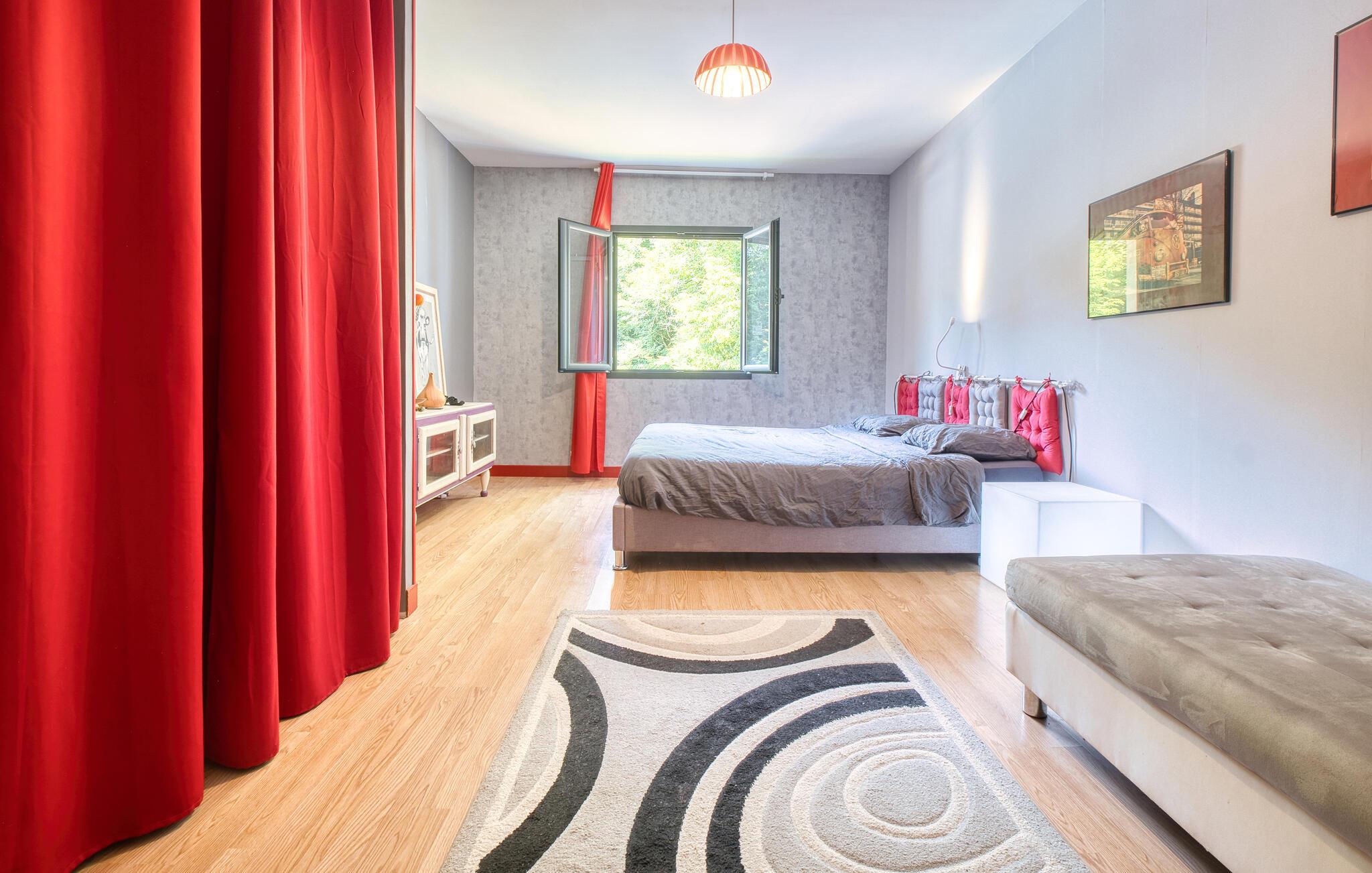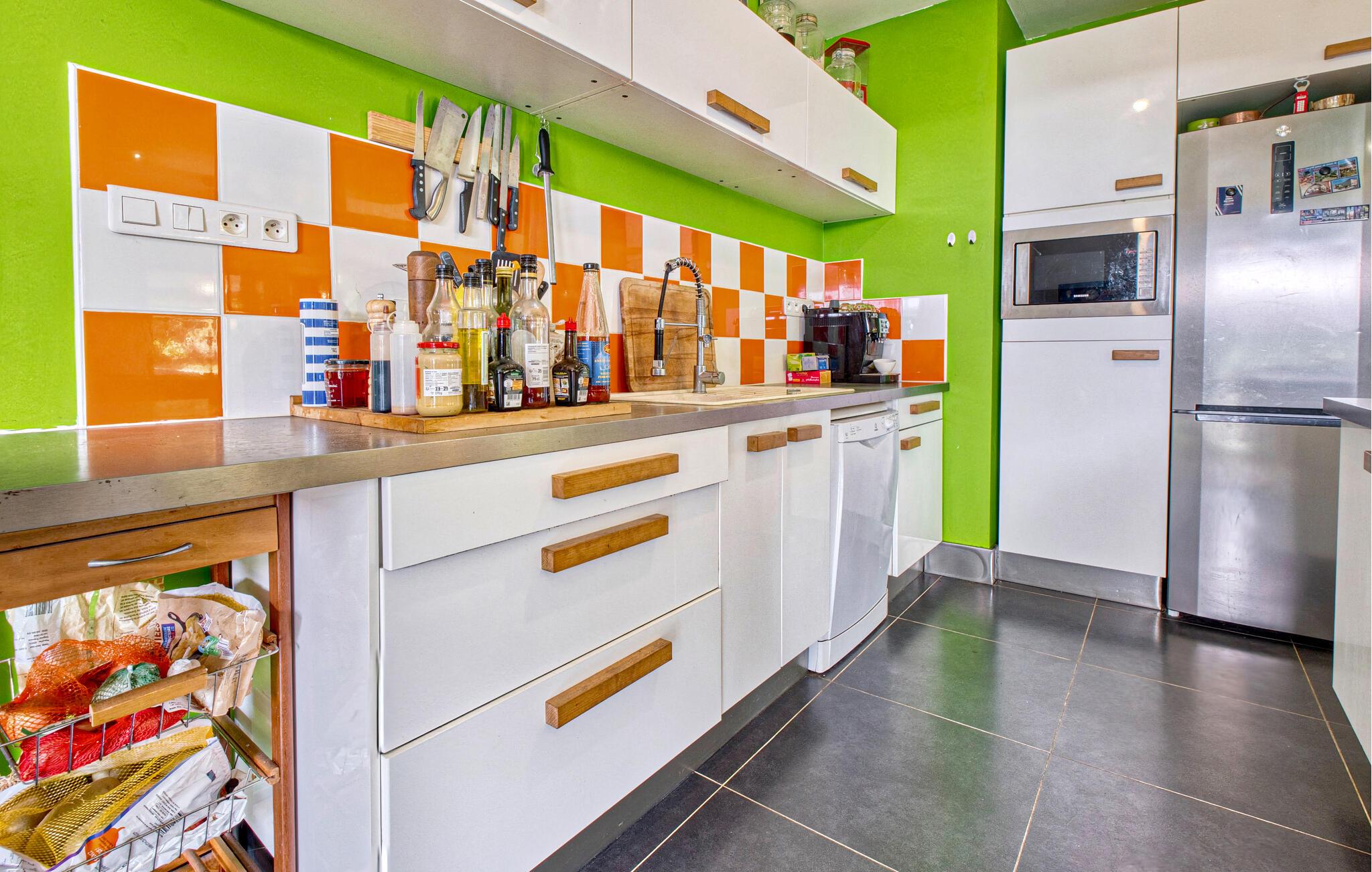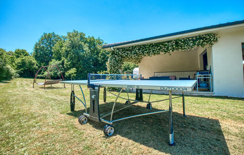 Tilbring jeres næste ferie i Frankrig i dette stilfulde feriehus nær Coursac. Glæd jer til at tilbringe tid sammen med familien i den rummelige opholdsstue. Den moderne indretning med lyse trægulve, et åbent køkken og en behagelig sofagruppe skaber en behagelig atmosfære. De farverige accenter bidrager også til den ubekymrede stemning. Tag dagens måltider ved den hyggelige spiseafdeling og nyd hyggelige timer. Afslut aftenen med at slappe af foran brændeovnen eller med en film på storskærms-tv.