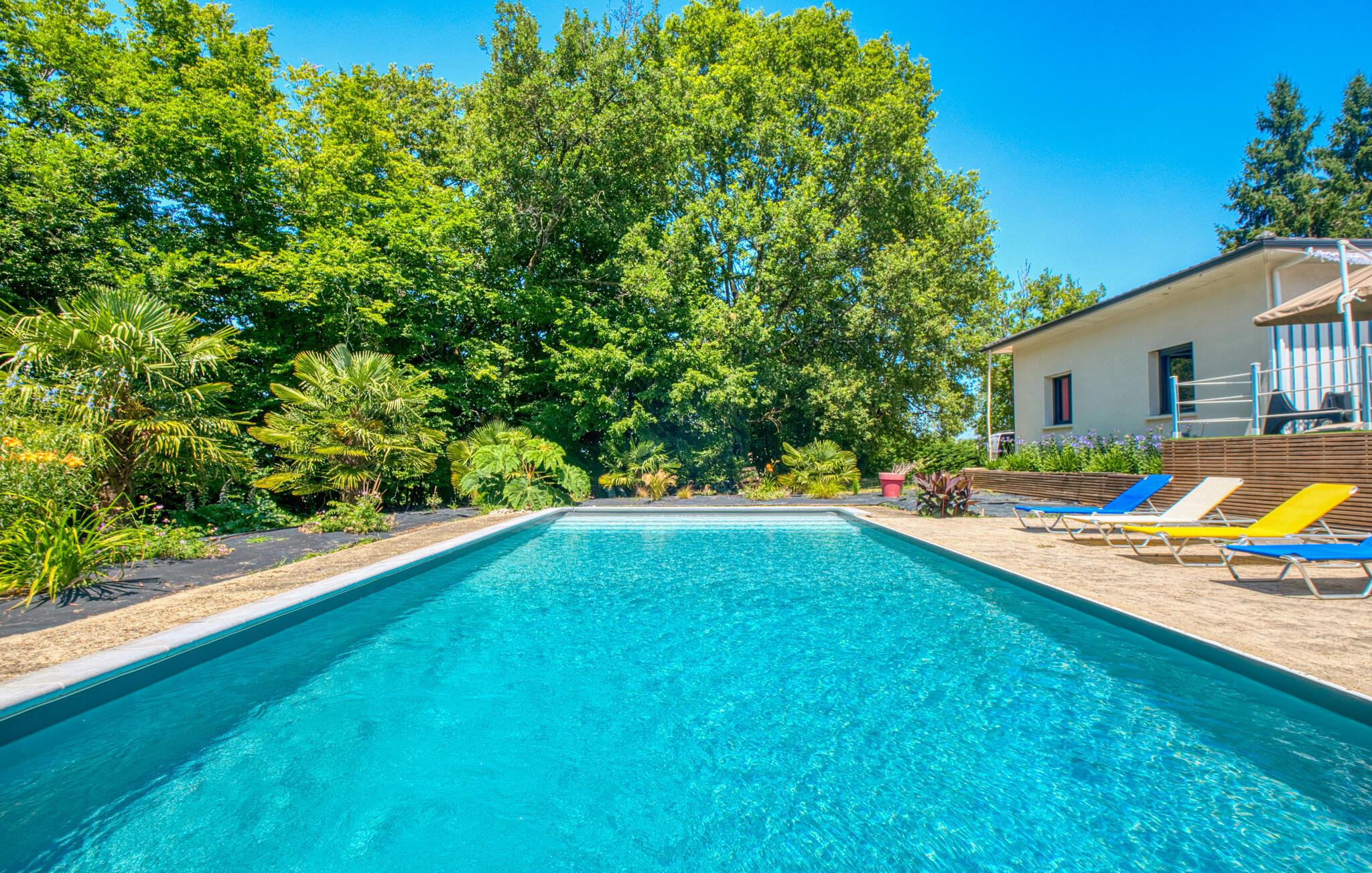 Nyd en afslappende pause i dette charmerende feriehus med pool og spabad.
