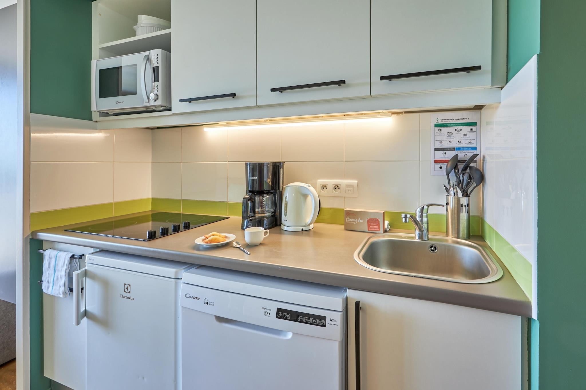Tekøkken(kakkelovn, kogeplade(glaskeramisk), brødrister, kaffemaskine, mikrobølgeovn, opvaskemaskine , køleskab(+ fryser)), Stue/soveværelse(feltseng, enkeltsovesofa, enkeltsovesofa, Fjernsyn), soveværelse(2x enkeltseng), badeværelse(badekar), toilet, vaskemaskine(deles med andre gæster, betalt), balkon eller terrasse, havemøbler, parkering, swimmingpool(deles med andre gæster, indendørs, herunder en del for børn (maks. dybde 50 cm)), legeredskaber(deles med andre gæster)