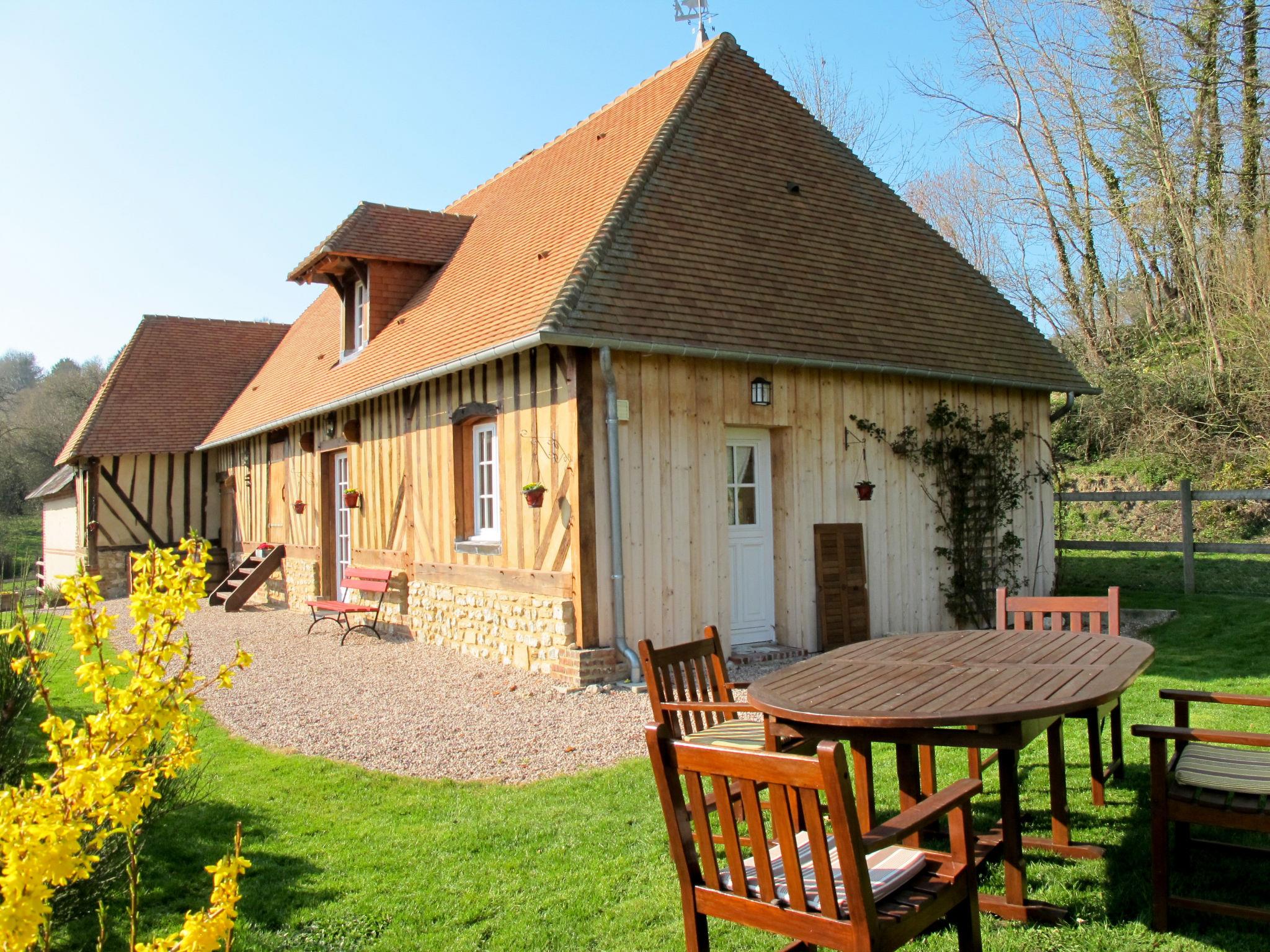 Cottage "Les Prés Rousselins". 1 km from the centre of Courtonne-la-Meurdrac, 8 km from the centre of Lisieux, 40 km from the centre of Deauville, 40 km from the sea, in a cul-de-sac. Private: property 250 m2 (fenced), well-kept garden with lawn. Motor access (200 m via unmade road). Parking on the premises. Shop 1 km, supermarket 8 km, bus stop "Centre de Courtonne-La-Meurdrac" 1 km, sandy beach 40 km, indoor swimming pool 8 km.
