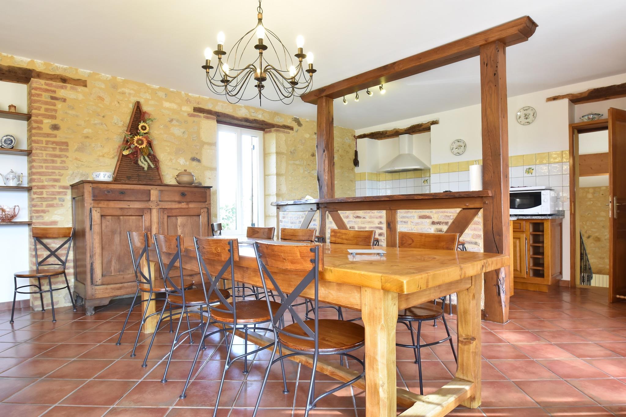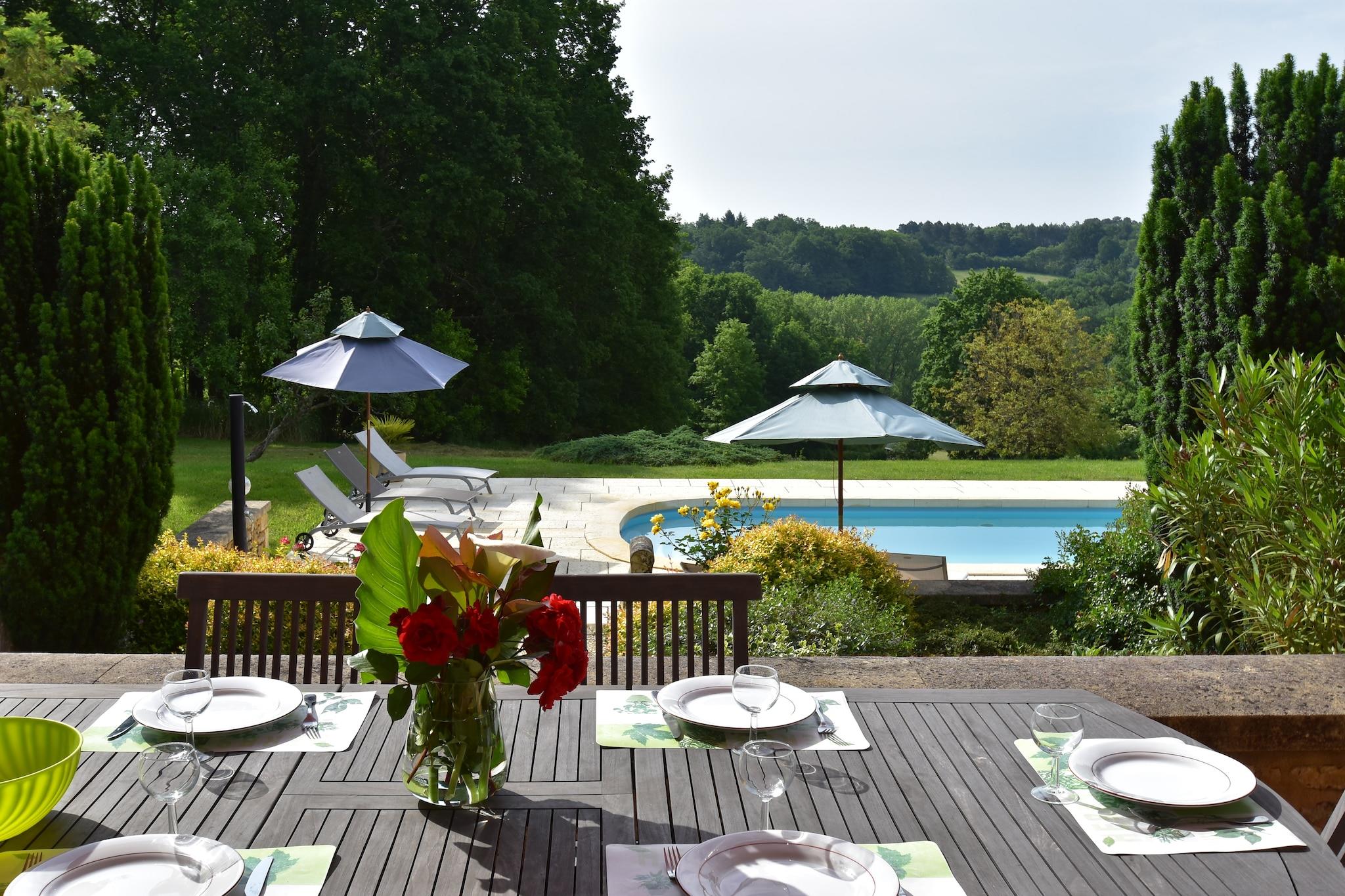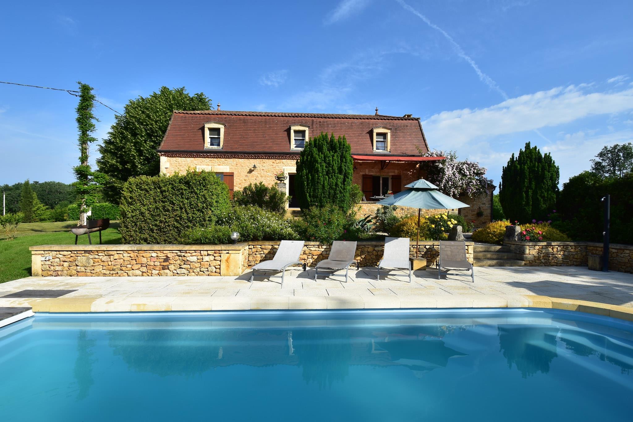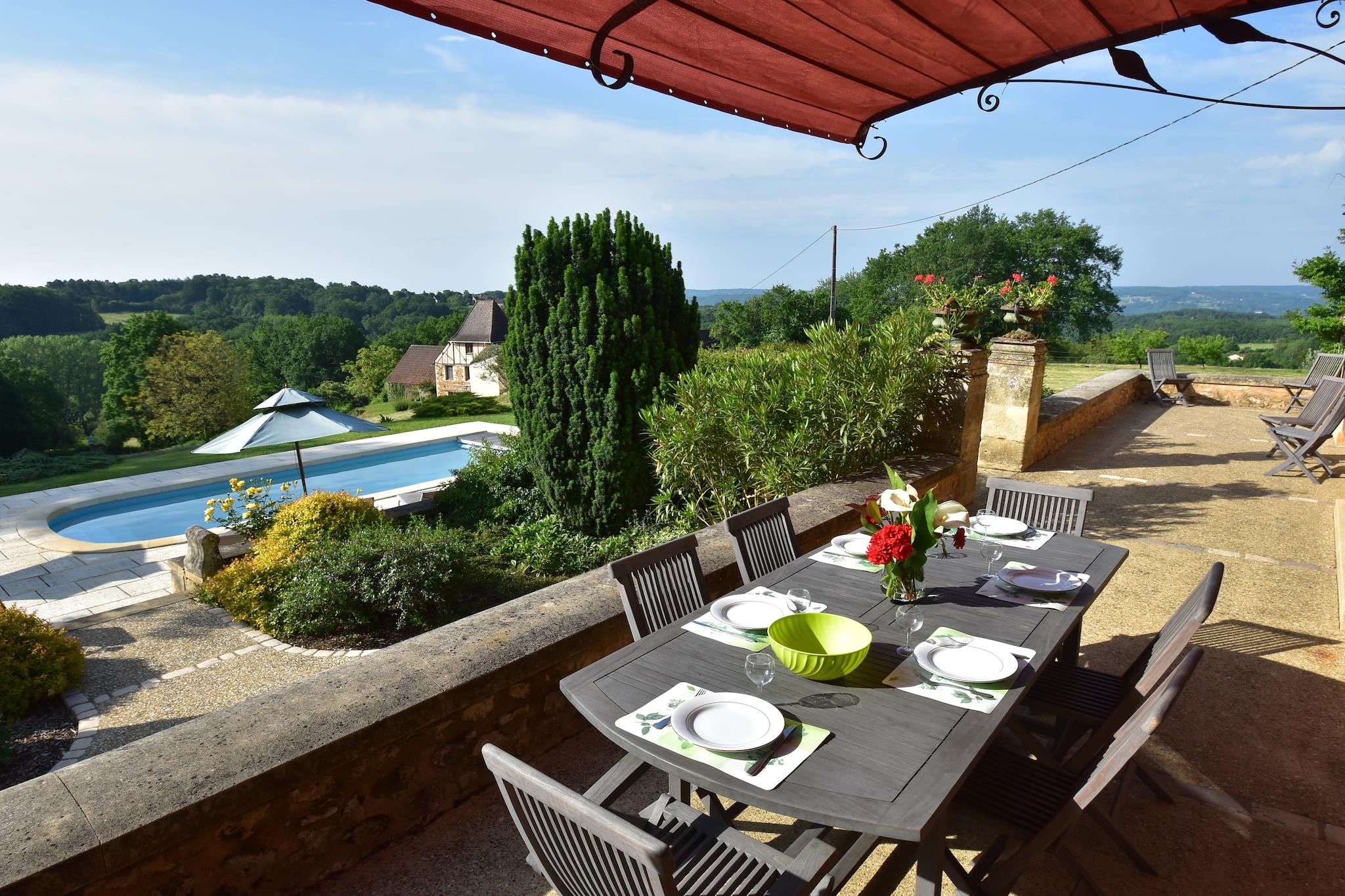 Storslået! Dette feriehus i Coux-et-Bigaroque (5 km) ligger i et roligt og frodigt område, komplet med smuk udsigt over området. Her vil du vågne om morgenen i fred og ro og nyde den sydvendte overdækkede terrasse; Har en lille hjemmelavet morgenmad med varme croissanter og en kop espresso. Bagefter kan du nedstigning de romerske trin og have en forfriskende dukkert i poolen. Nu er du klar til nogle sjove ture. Valgmulighederne er uendelige. En aktiv dag kano på de Dordogne (kanoudlejning i Siorac, 8 km) er en mulighed, selvom en dejlig tur gennem middelalderlige Belvès (14 km) også er en god ide. Et besøg på de berømte huler i området Eyzies-de-Tayac Sireuil (14 km) gør en sjov dag for børnene. Dette dejlige område kan også udforskes på en cykel, en cykeludlejning butik er placeret i Coux. Yderligere fra huset udflugterne er enorme. En dejlig dag med shopping i Bergerac (45 km), et besøg i smukke slotte som Milandes (24 km) eller et besøg på smukke landsbyer som Domme (34 km) og La Roque-Gageac (29 km).