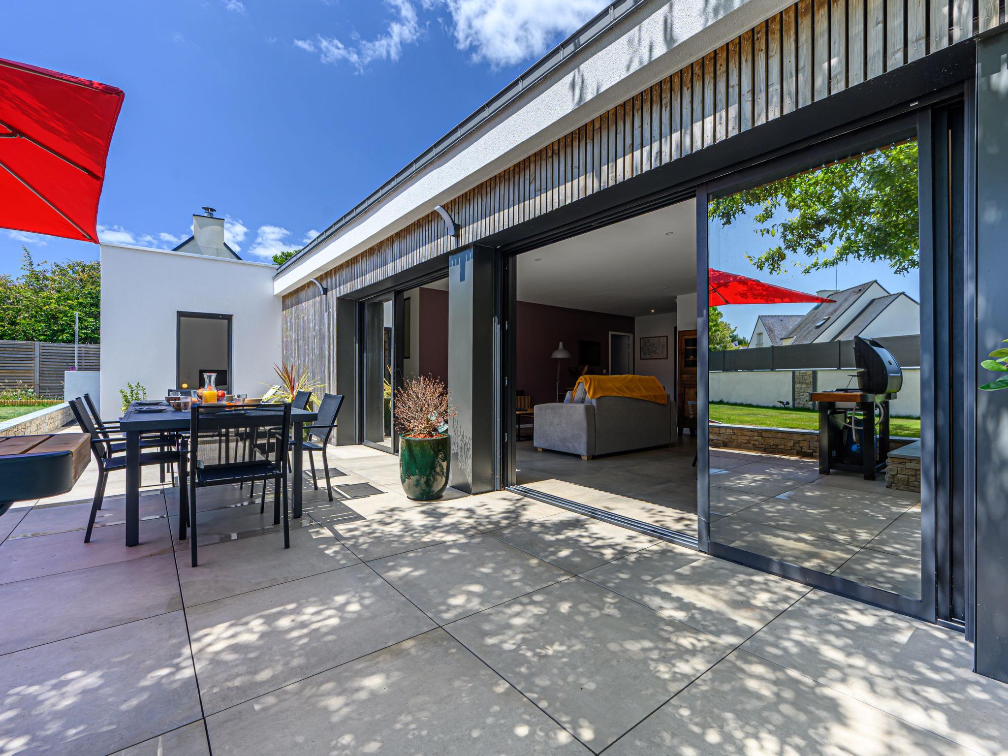 Crac'h 9 km from Carnac: Beautiful house "Villa du Fort Espagnol", built in 2024. In the centre of Crac'h, 3 km from the sea, 6 km from the beach. Private: hot tub, parking. Supermarket 4 km, restaurant 500 m, bar 300 m, bakery 500 m, café 300 m, bus stop "Centre de Crac'h" 400 m, sandy beach "Plage de Saint-Phillibert" 6 km, outdoor swimming pool 10 km. Tennis 6 km. Nearby attractions: Grande plage de Carnac 10 km, La Trinité sur Mer 6 km, Auray et le Port de St Goustan 10 km, Quiberon 28 km, Belle Ile en Mer, Les iles du Golfe du Morbihan.