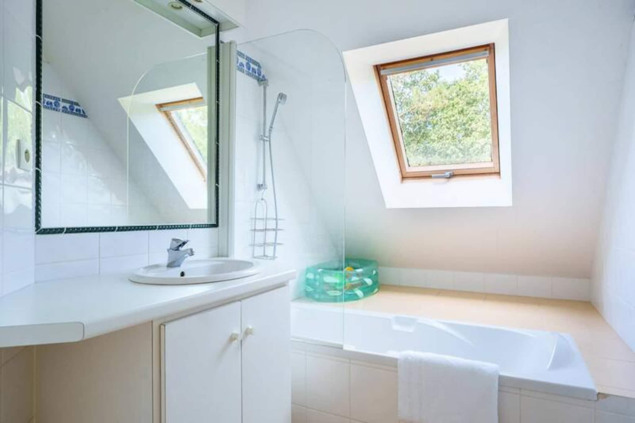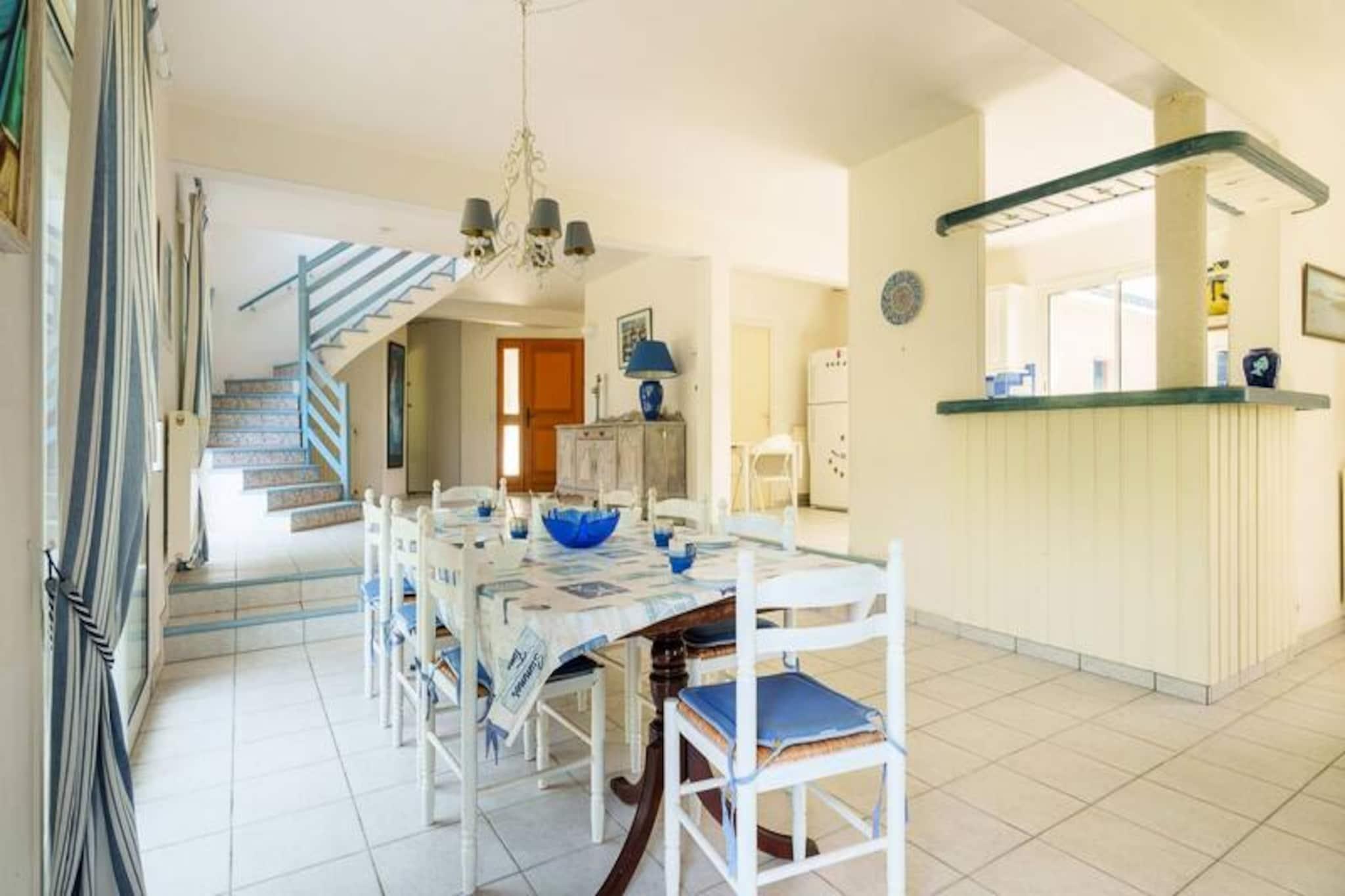 Denne rummelige ferievilla tilbyder et fredeligt tilflugtssted i Crac'h, kun 1 km fra landsbyens centrum og 6 km fra stranden. Ejendommen har en stor, anlagt have og et skovomr?de p? 1500 m². Villaen er perfekt til op til 8 g?ster, med en suite, der inkluderer en dobbeltseng og et en-suite badev?relse, sammen med tre andre sovev?relser, hver indrettet med to enkeltsenge. Opholdsstuen er rummelig med hyggelig opholdsstue, TV og spiseplads, der ?bner ud til en sydvestvendt terrasse med havem?bler. Bem?rk venligst, at k?ledyr ikke er tilladt. Villaens beliggenhed giver nem adgang til n?rliggende attraktioner med et udvalg af caf?er, butikker og markeder kun en kort k?retur v?k i den charmerende by Crac'h. G?sterne kan ogs? udforske de natursk?nne strande, der ligger kun f? kilometer fra ejendommen. Det omkringliggende omr?de byder p? masser af muligheder for udend?rs aktiviteter, herunder vandreture, cykling og vandsport, hvilket giver g?sterne mulighed for fuldt ud at nyde regionens sk?nhed. Indvendigt er villaen udstyret med moderne bekvemmeligheder, herunder et fuldt udstyret halv?bent k?kken med opvaskemaskine, mikroovn, ovn og k?leskab med fryser. Der er ogs? et vaskerum med vaskemaskine, et badev?relse og separat toilet. Der er gratis tr?dl?s internetadgang, og der er parkering p? ejendommen. Opvarmnings- og energiomkostninger er inkluderet, med yderligere tjenester s?som slutreng?ring tilg?ngelige efter anmodning.