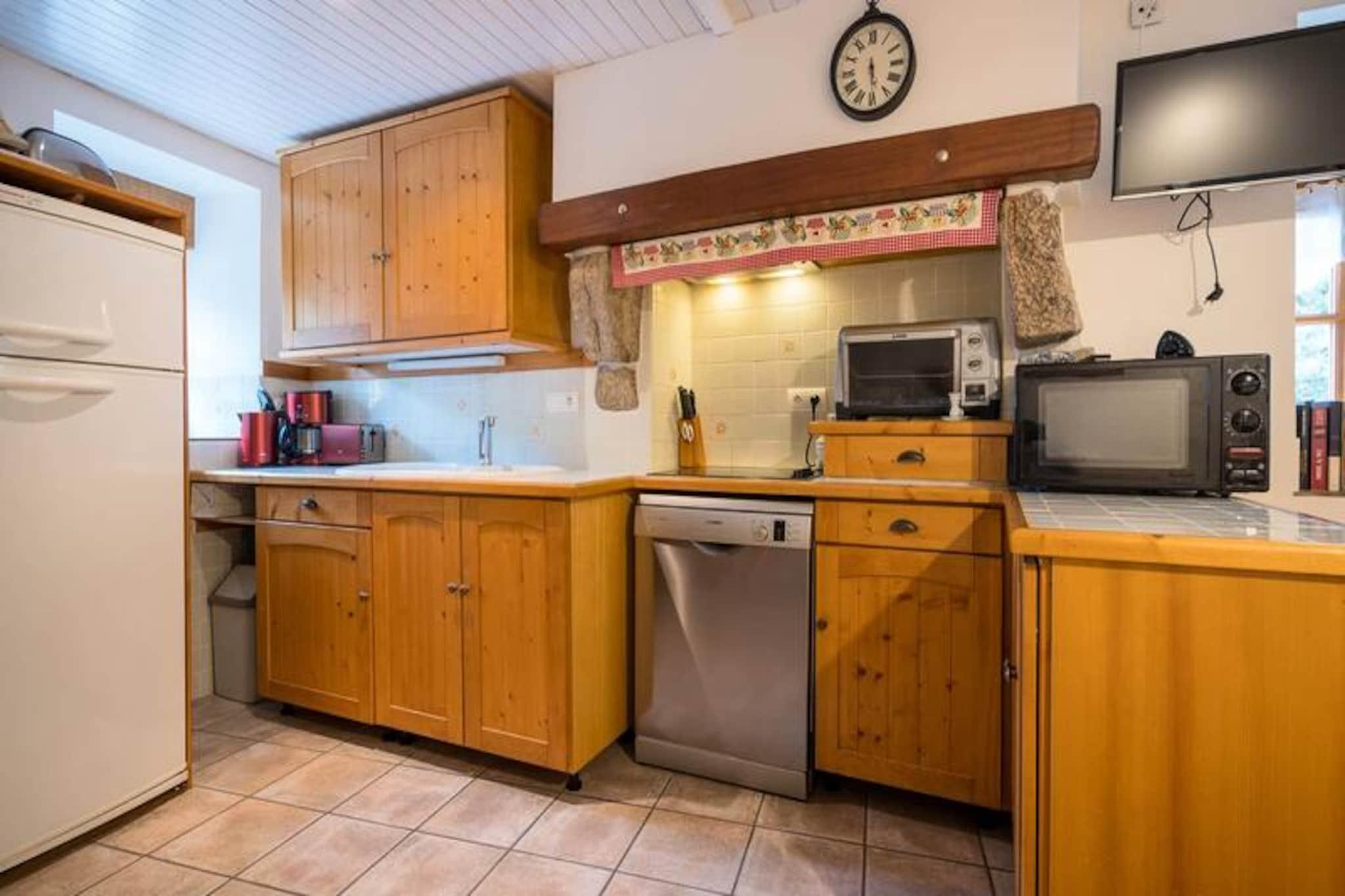 Beliggende i hjertet af Crac'h tilbyder dette charmerende feriehus hyggelig indkvartering for op til 4 g?ster. Ejendommen har et sovev?relse med dobbeltseng med et stort kl?deskab og et andet loftsv?relse med to enkeltsenge. Opholdsstuen i ?bent plan omfatter et fuldt udstyret k?kken med en 4-br?nder vitrokeramisk kogeplade, mikroovn, miniovn, opvaskemaskine, k?leskab med fryser og en spiseplads med bord og b?nke. Der er ogs? tv, og boligen har gulvvarme for komfort. K?ledyr er velkomne mod et mindre till?g. Ejendommen ligger kun 6 minutter i bil fra Trinit?-sur-Mer-marinaen og de fantastiske strande i Locmariaquer og tilbyder nem adgang til Golfe du Morbihan og n?rliggende vandre- og cykelstier. G?sterne kan nyde at udforske den maleriske landsby Crac'h og dens lokale caf?er, markeder og butikker, som alle er inden for g?afstand. Det omkringliggende omr?de er perfekt til udend?rs aktiviteter s?som cykling, vandreture og nyde kystsk?nheden. Huset er veludstyret til et behageligt ophold, med et badev?relse med vaskemaskine og et separat toilet. Yderligere faciliteter omfatter gratis tr?dl?s internetadgang og offentlig parkering i n?rheden. En varme- og energipakke er inkluderet, med valgfrie tjenester s?som slutreng?ring og leje af senget?j til r?dighed mod et gebyr.