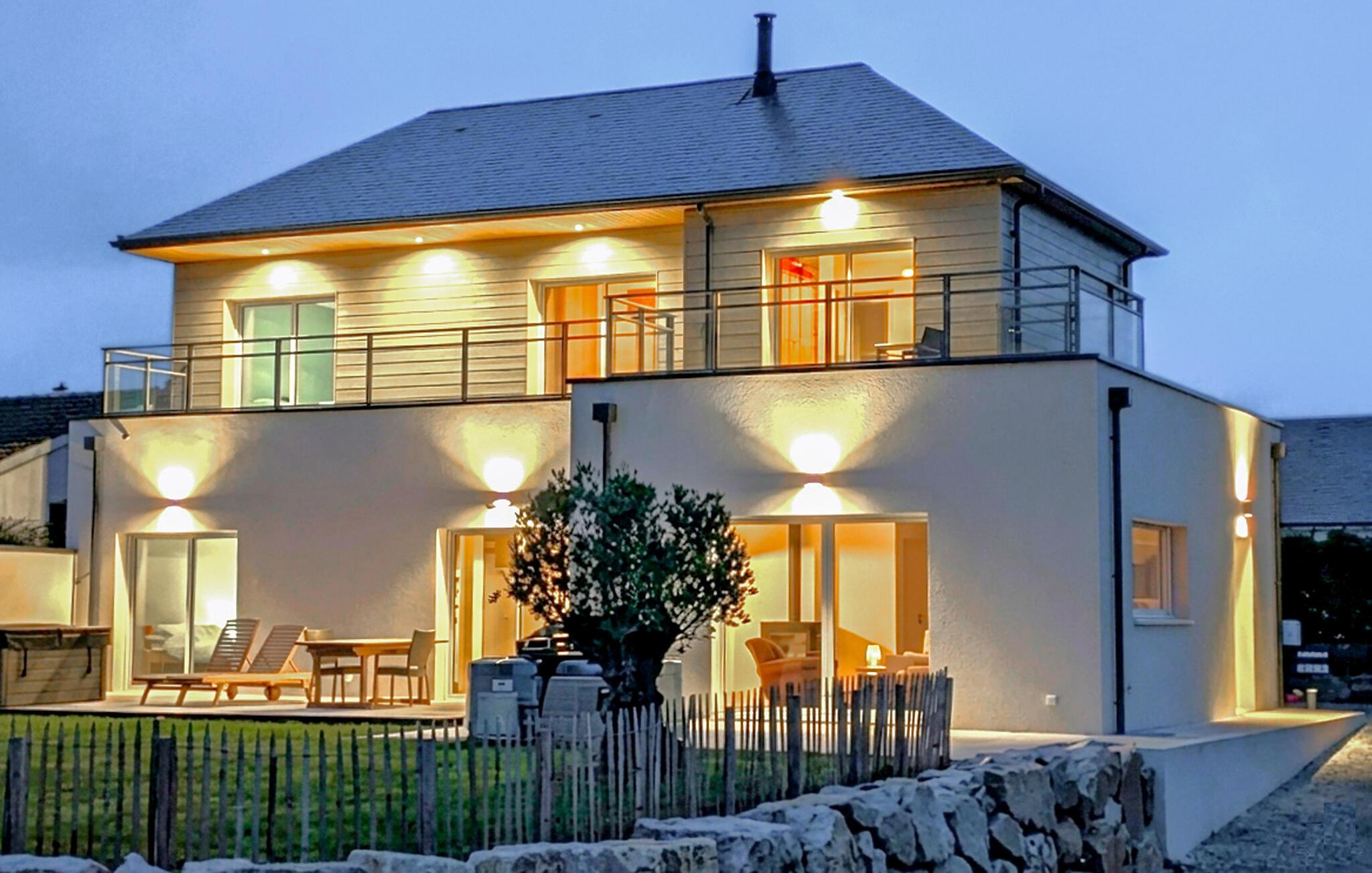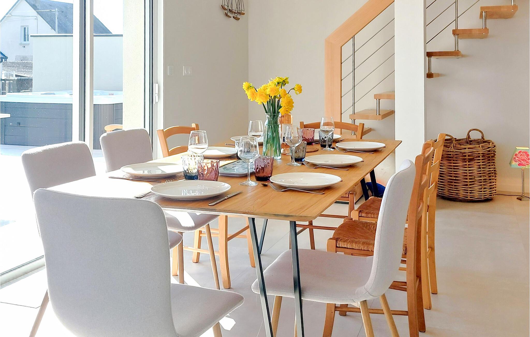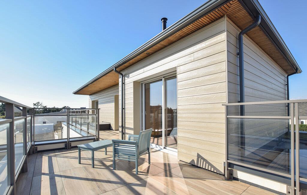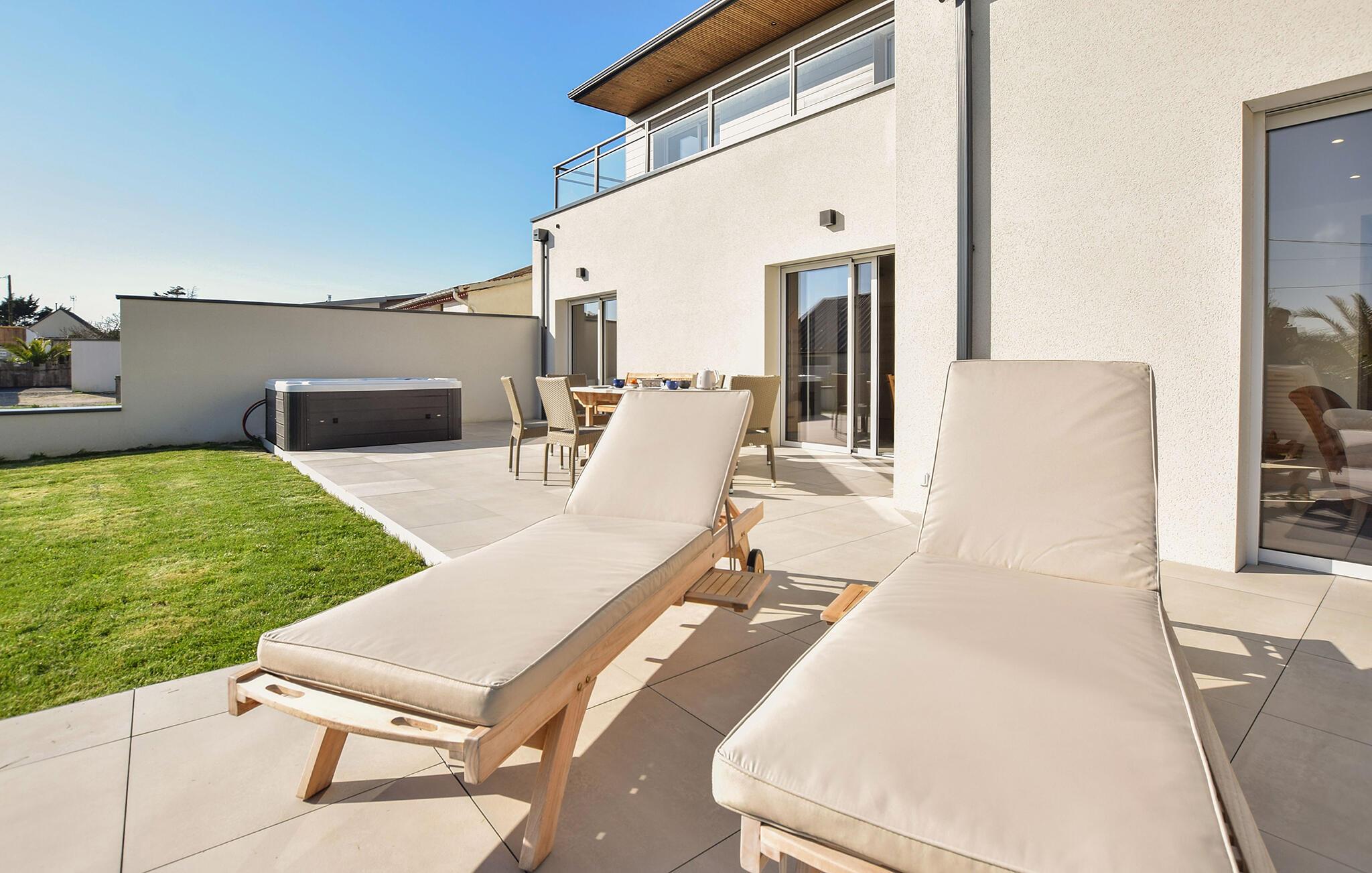 Nyd stilfuld komfort og velvære i dette moderne feriehus nær havet.