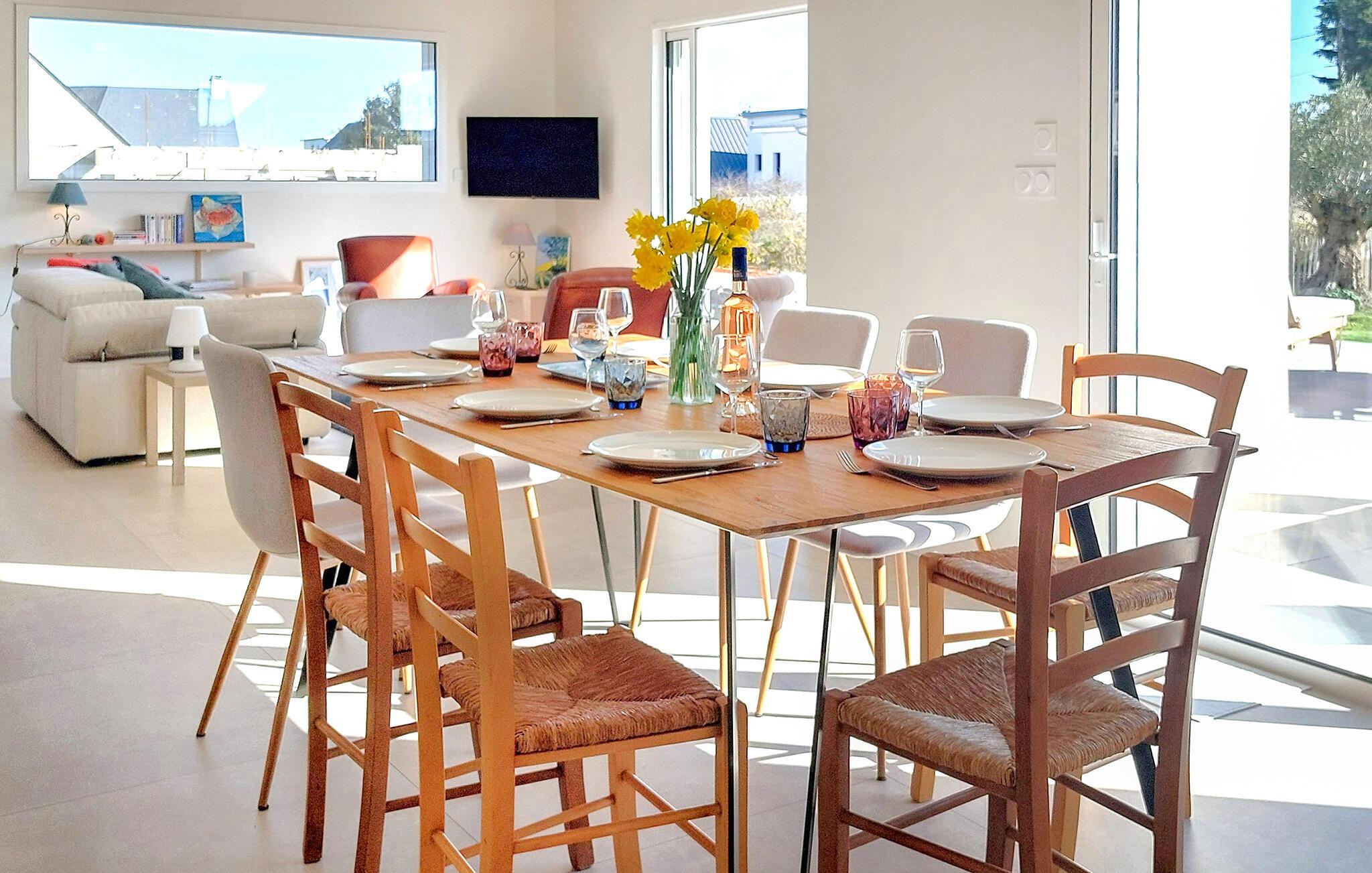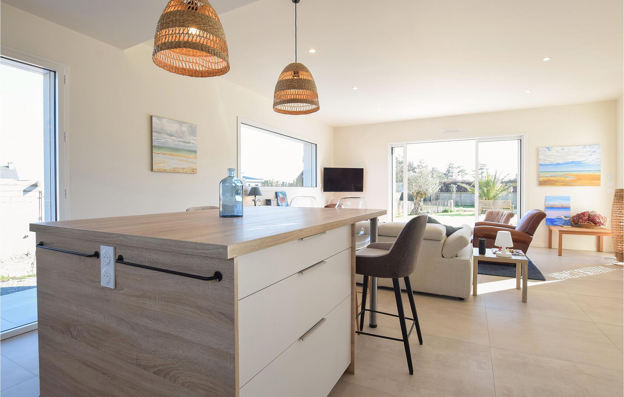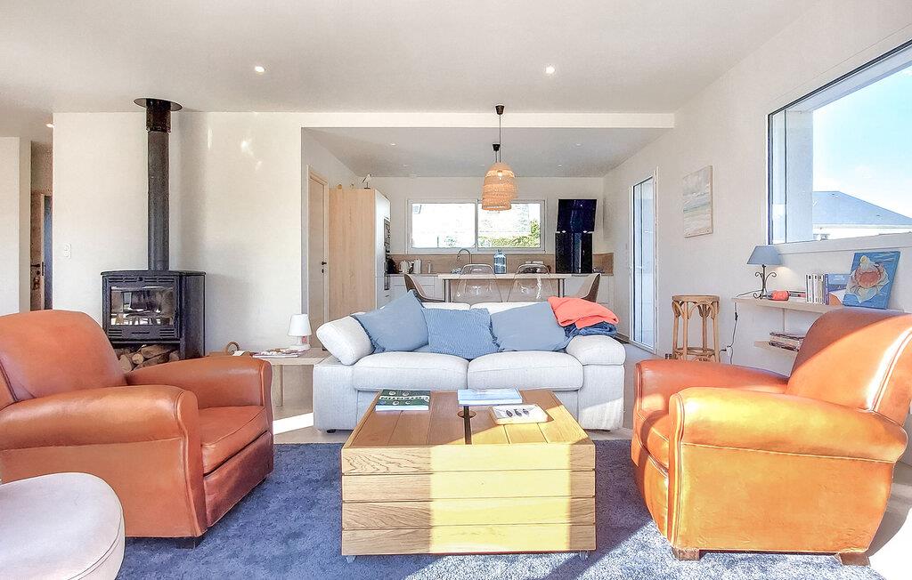 Store vinduer oversvømmer den rummelige opholdsstue med naturligt lys. Slap af i de komfortable sofaer og lænestole, mens brændeovnen skaber en hyggelig atmosfære på kølige dage. Find sammen omkring et af spisebordene og planlæg jeres næste dags eventyr sammen. Det moderne køkken lægger op til at tilberede regionale specialiteter og nyde aftenen med venner og familie.