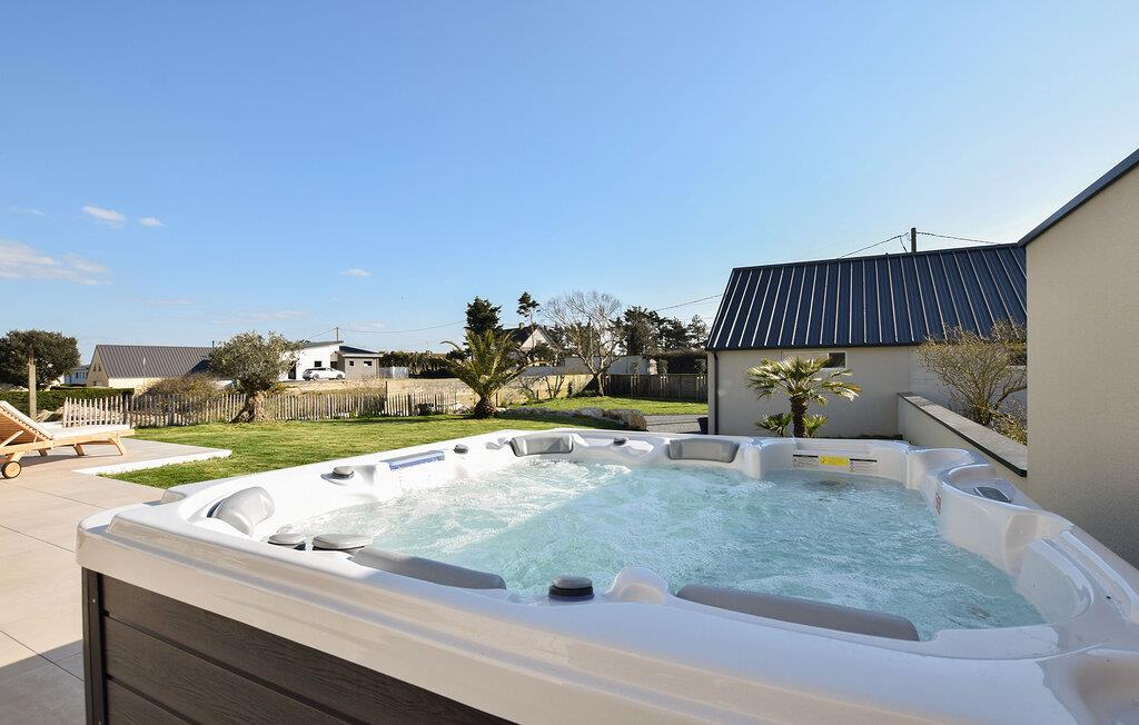 Nyd husets fredelige beliggenhed på den solrige terrasse. Den velholdte have tilbyder masser af plads til at slappe af og lege. Tag plads ved det store havebord og nyd afslappende måltider udendørs. Træd ind i det udendørs spabad og nyd afslappende øjeblikke under åben himmel eller benyt den infrarøde sauna. Bagefter kan I tage en kort gåtur til sandstranden.