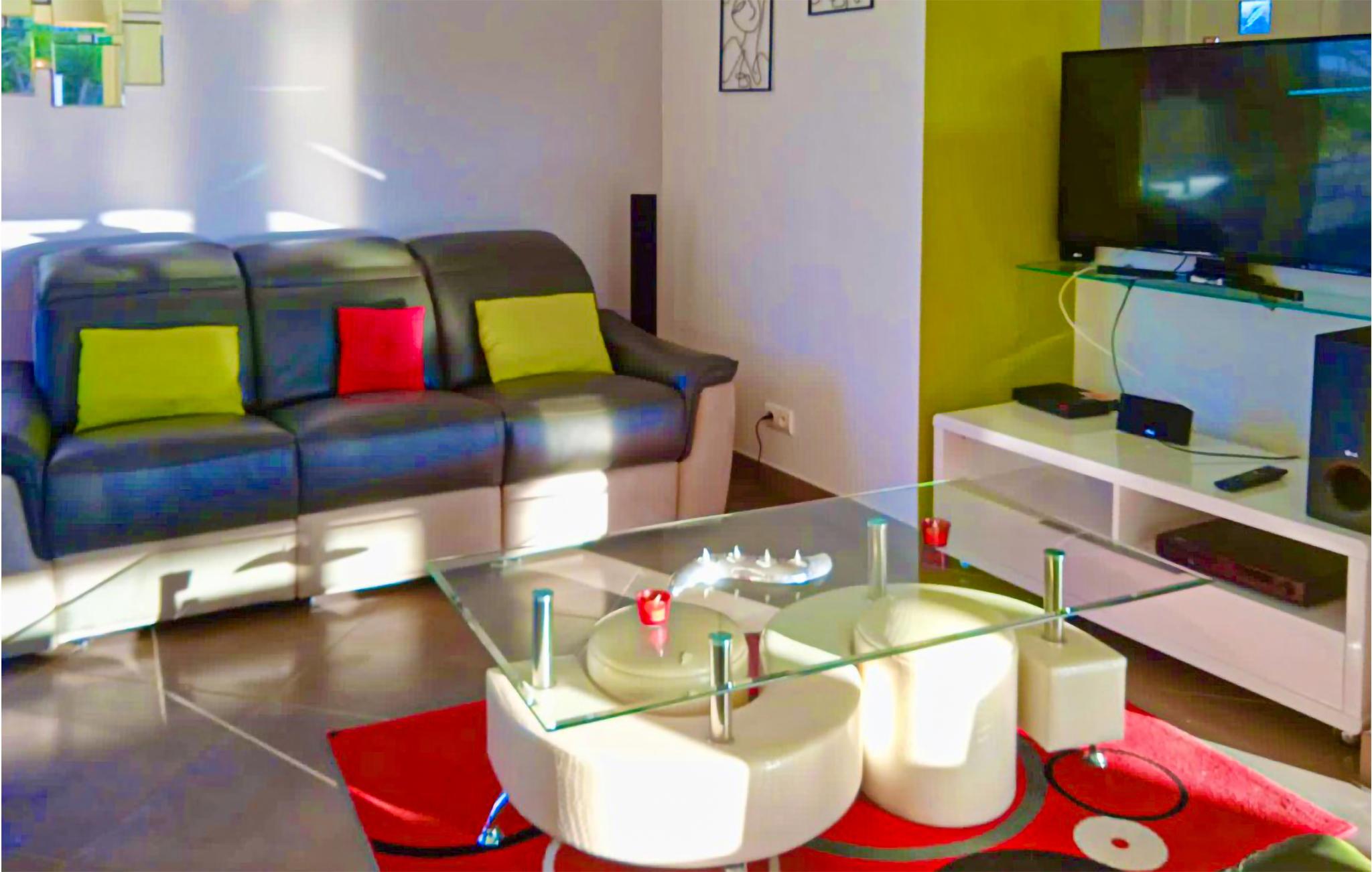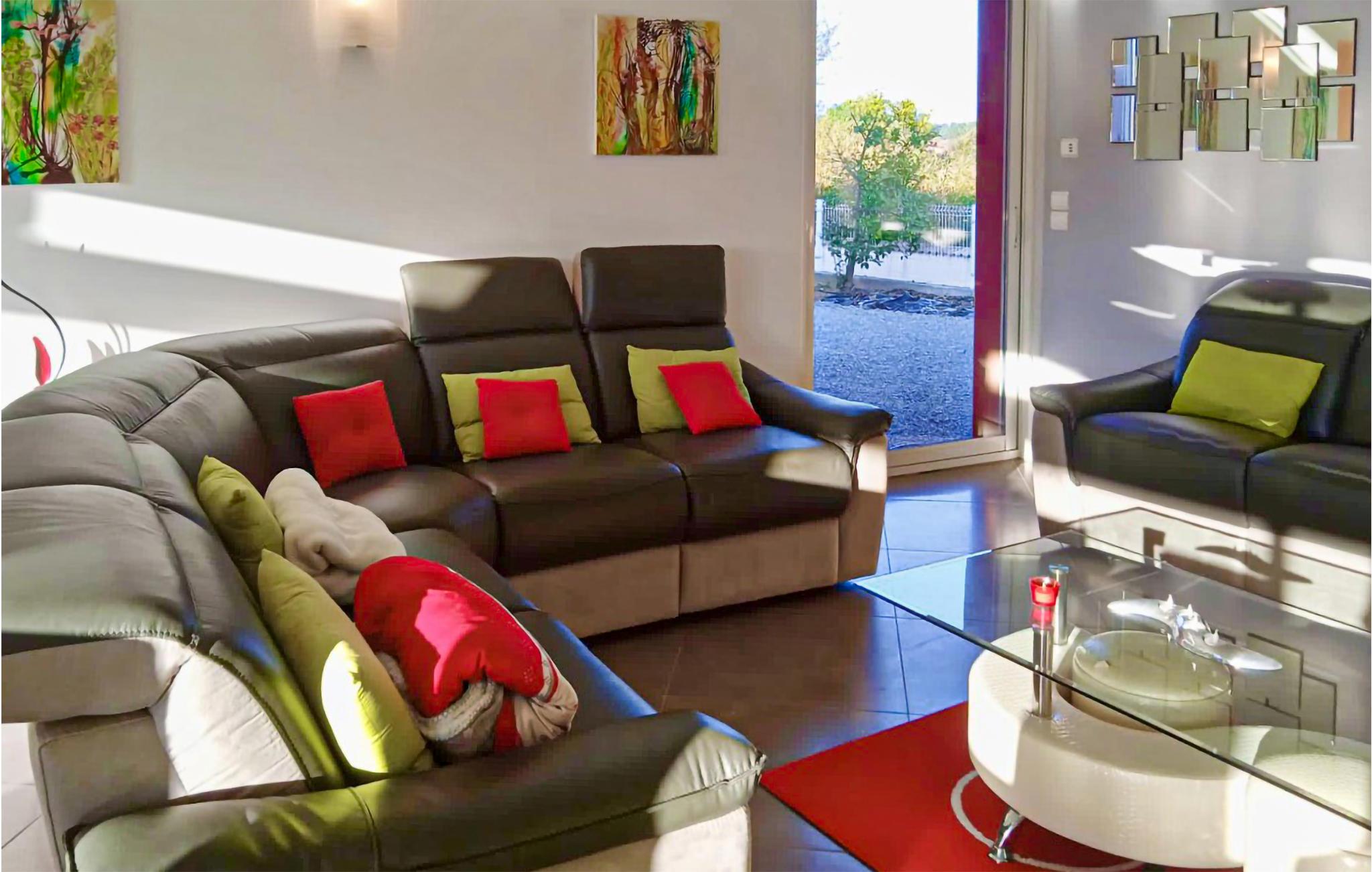 Huset indeholder en flot opholdsstue med tre luksuriøse sofaer og en hjemmebiograf. Det amerikanske køkken er udstyret med alt, hvad I skal bruge.