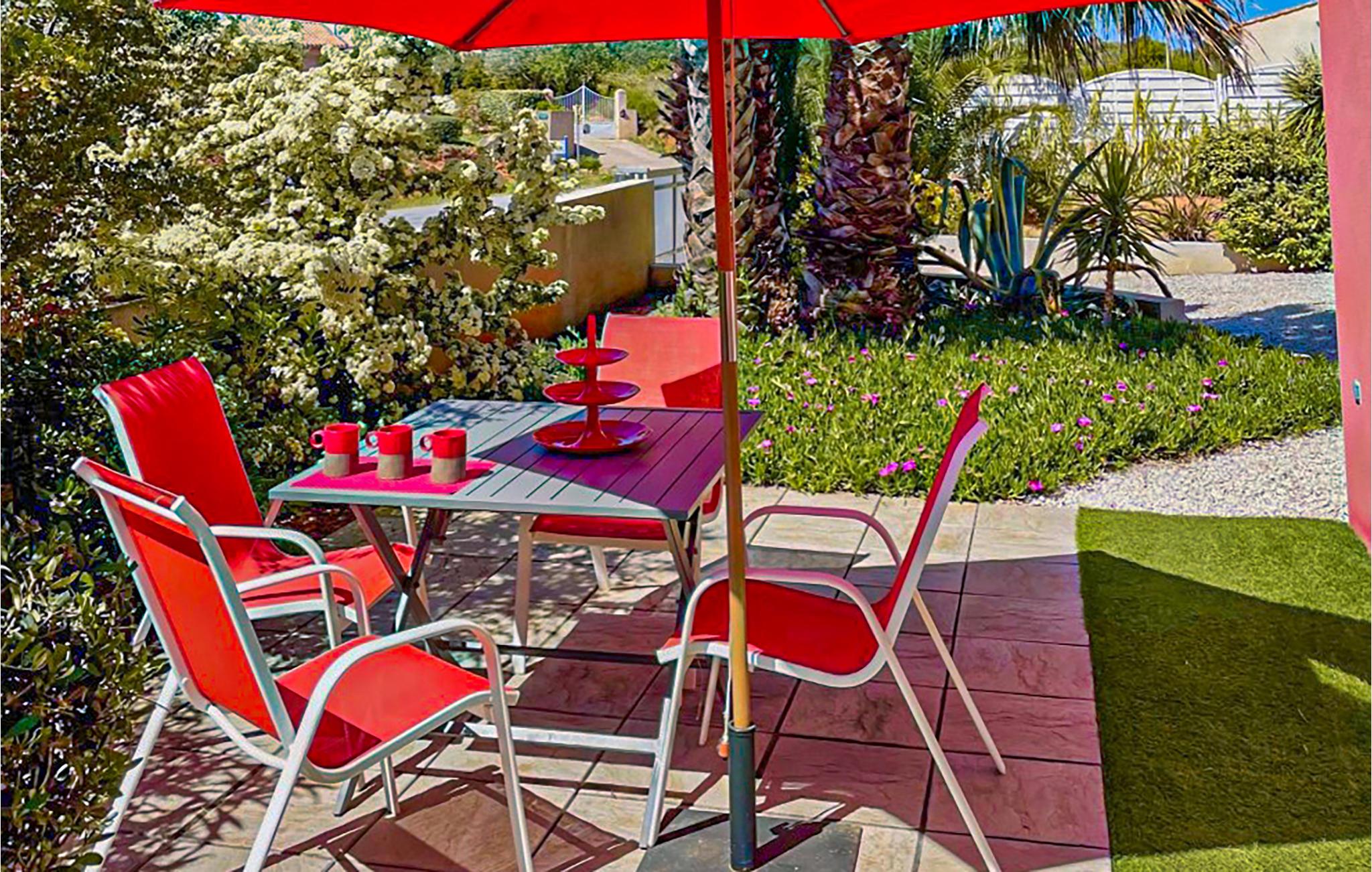 Dette lækre, lyse feriehus har et stort vinduesparti med udsigt til den dejlig solterrasse, som omkranser swimmingpoolen, der har undervandsbelysning (10x4 m). Slap af i kvalitetshavemøblerne eller sæt jer i skyggen på den overdækkede terrasse, mens I nyder regionale, kulinariske specialiteter som muslinger fra Étang de Thau, forskellige middelhavsfisk, Languedoc-pølser, meloner, kastanjer, gedeost, honning, Olargues kirsebær, olivenolie....alt sammen med et lille glas St. Chinian; en AOC-vin, der produceres i vinbjergene i regionen.