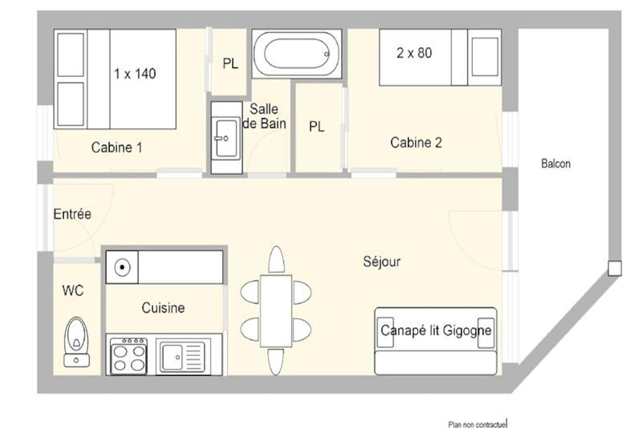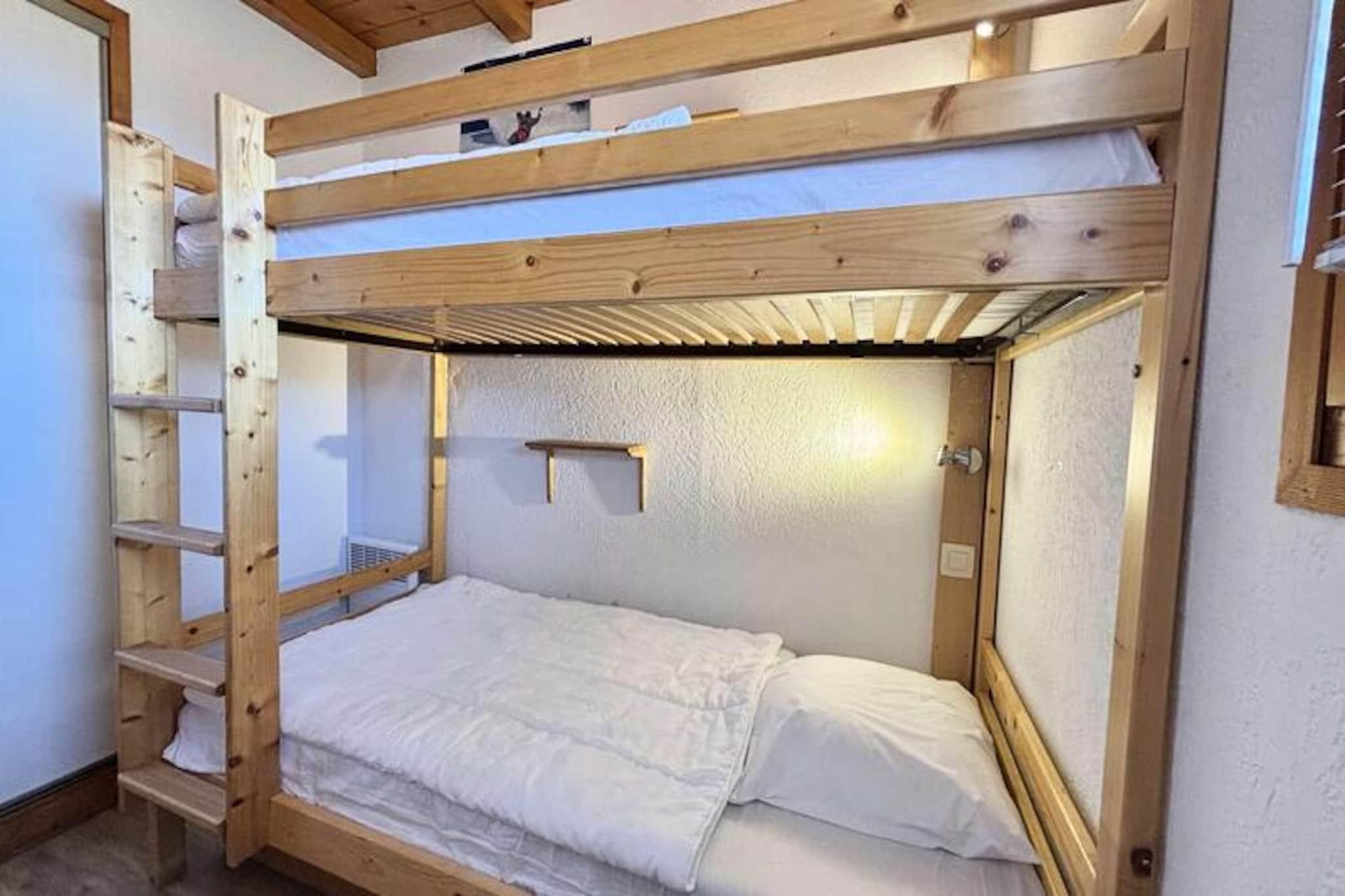 Ved foden af ??de majestætiske franske alper tilbyder denne charmerende lejlighed i stueetagen et hyggeligt tilflugtssted til din næste bjergferie. Omgivet af fredfyldte landskaber og kun få skridt fra pisterne er det den perfekte base for både vintersportsentusiaster og sommereventyrere. Vågn op til frisk alpeluft og nyd roen i denne fredelige beliggenhed, hvor naturens skønhed møder komforten ved et moderne liv. Uanset om du er her for at stå på ski, vandre eller blot slappe af, lover denne bolig et mindeværdigt ophold. \n\nLejligheden er på 30 m² og er omhyggeligt designet til at maksimere plads og komfort. Den har en indbydende stue med en udtrækssovesofa, et tekøkken udstyret til at tilberede solide måltider, et soveværelse med en dobbeltseng og en sovealkove med to køjesenge. Bemærk venligst, at den øverste køjeseng ikke er egnet til børn under seks år. Et brusebad, separat toilet og en privat balkon fuldender planløsningen og tilbyder et praktisk, men indbydende rum til op til fem gæster. Yderligere faciliteter inkluderer et skiskab og en privat overdækket parkeringsplads, der sikrer bekvemmelighed under hele dit ophold. \n\nBeliggende i et roligt område tilbyder boligen nem adgang til pisterne, hvilket gør den ideel for skientusiaster. Den nærliggende kælkebane tilføjer et strejf af sjov for familier, mens de omkringliggende stier indbyder til udforskning i de varmere måneder. For ekstra bekvemmelighed er valgfrie tjenester såsom sengelinned, håndklæder og slutrengøring tilgængelige efter anmodning. Kæledyr er velkomne mod et mindre gebyr, så du kan tage dine pelsede venner med på eventyret. \n\nUanset om du søger spændende alpine aktiviteter eller fredelige øjeblikke i naturen, tilbyder denne lejlighed en indbydende flugt i hjertet af de franske alper. Book dit ophold og skab uforglemmelige minder i denne maleriske bjergparadis.