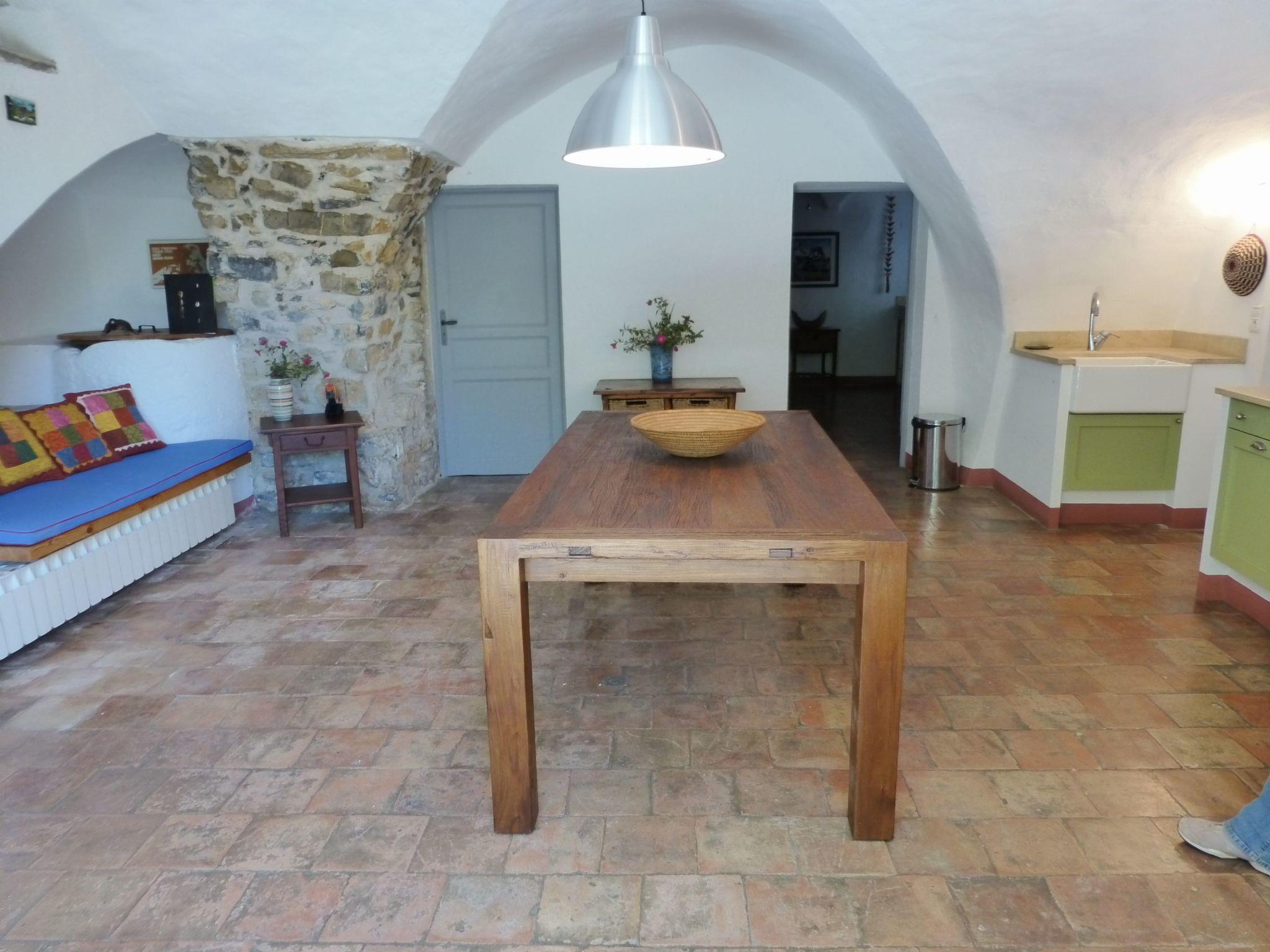 Ground floor: Contains an expansive, vaulted kitchen which opens on to a terrace and garden; the floor also has the main dining room, two bedrooms and one bathroom.