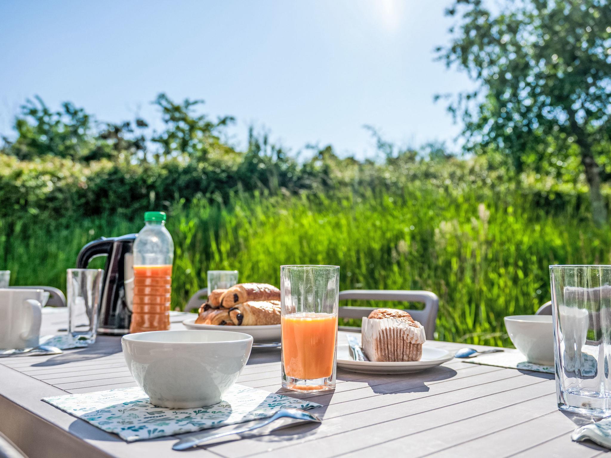 Beautiful resort "Horizon Morgat". 95 houses in the resort. 800 m from the centre of Morgat, 3.8 km from the centre of Crozon, 800 m from the sea. For shared use: property 25'000 m2 (fenced) with trees, swimming pool heated (8 x 14 m, seasonal availability: 01.Jan. - 31.Dec.). Children's pool, table tennis, boccia, terrace, children's playground. In the complex: reception, fitness room, billiard table, table football, washing machine, tumble dryer (for shared use, extra). Footpath to the house. Parking on the premises. Shop 500 m, sandy beach 800 m. Please note: car-free holiday complex. The photograph shows a typical example. The holiday properties may differ in living space, floorplan, equipment and furnishing.