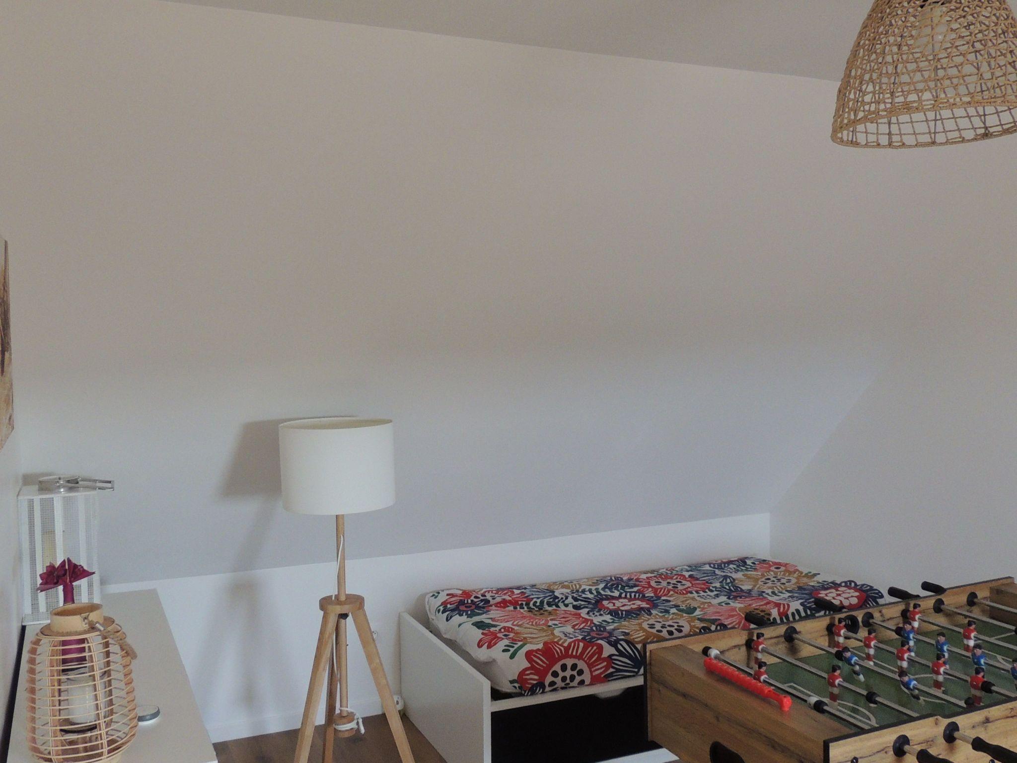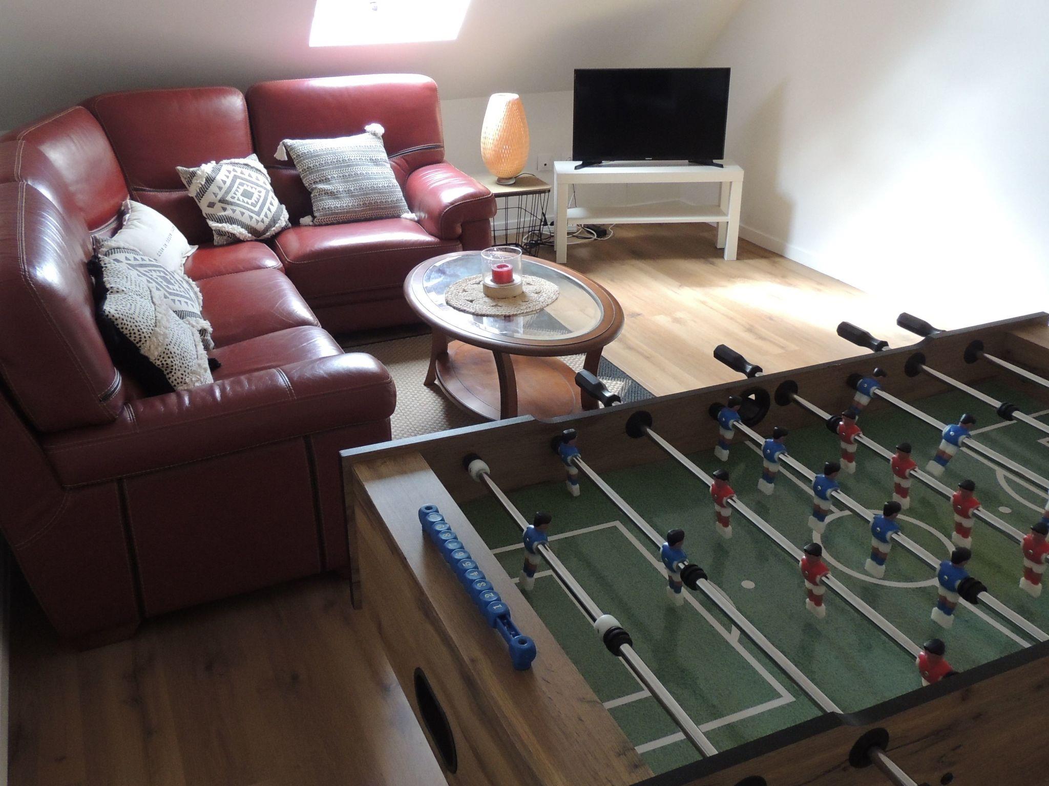 First floor: two bedrooms, each with a double bed, one bedroom with 2 single beds, a WI-FI-equipped study, a bathroom with corner bath, a separate toilet, a 25m2 recreation room with TV sofa and table football that could be converted into a bedroom as it has a single bed.