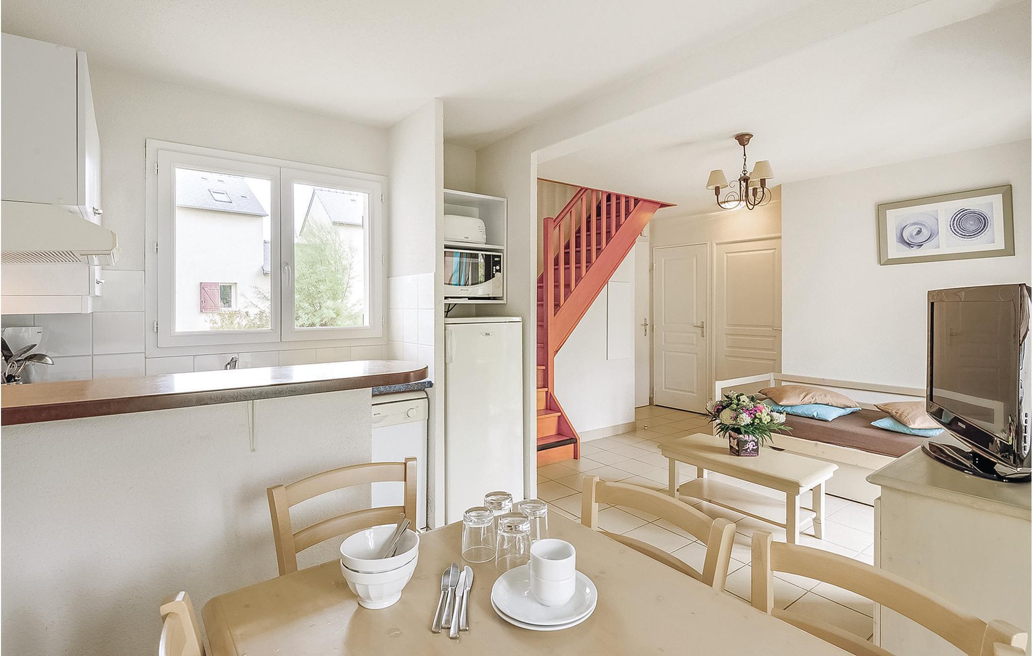 I hjertet af Bretagne finder I dette dejlige hus, der ligger i en feriepark i gåafstand fra landsbyens midte. Indretningen er lys og behagelig, og møblerne moderne og komfortable, så I får den helt ideelle base til at kunne hvile stængerne og nyde hinandens selskab efter en aktiv feriedag. Nyd jeres måltider med en smuk udsigt til det fri eller tag dem ud på terrassen i den lune aftensol.