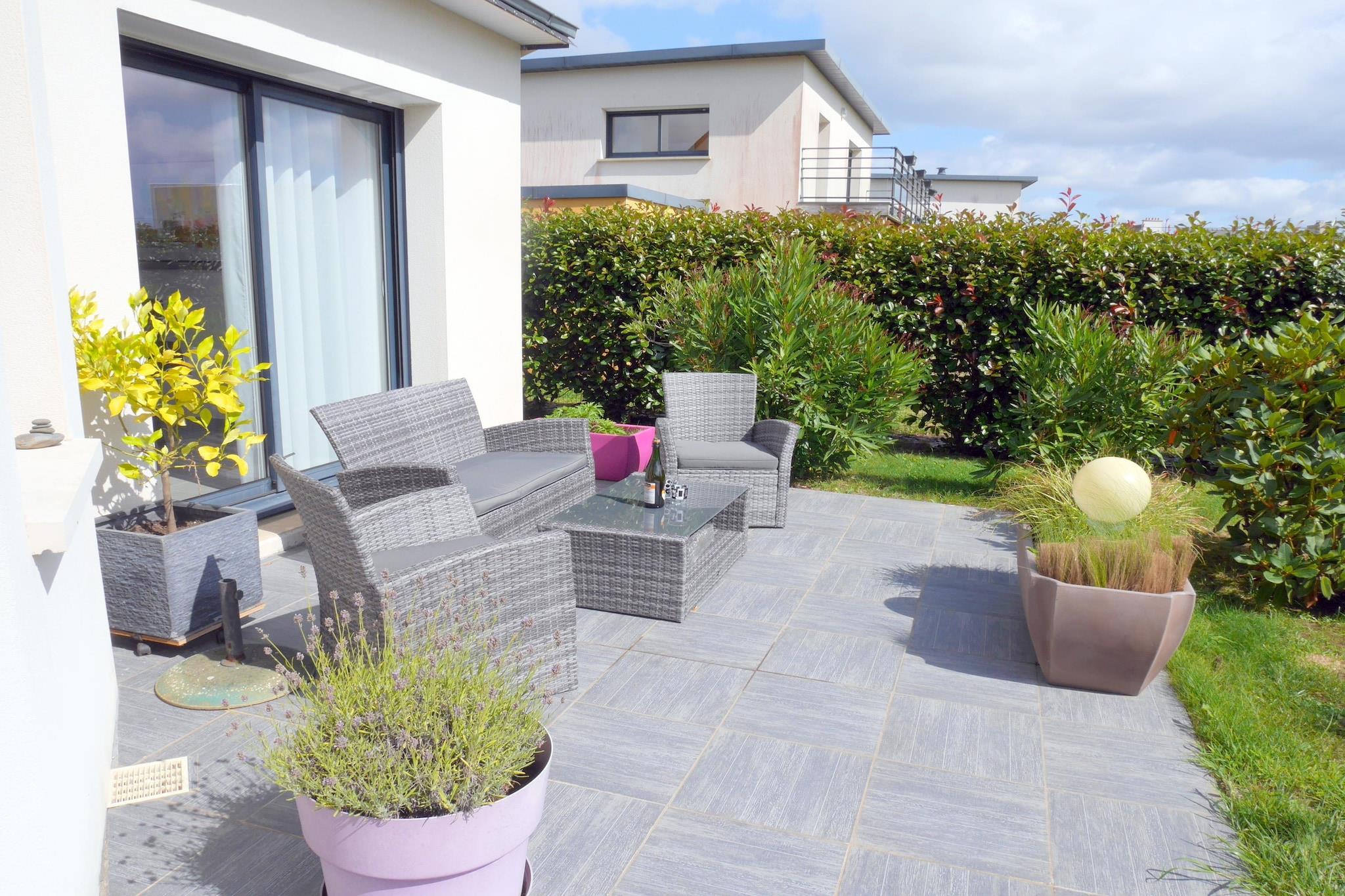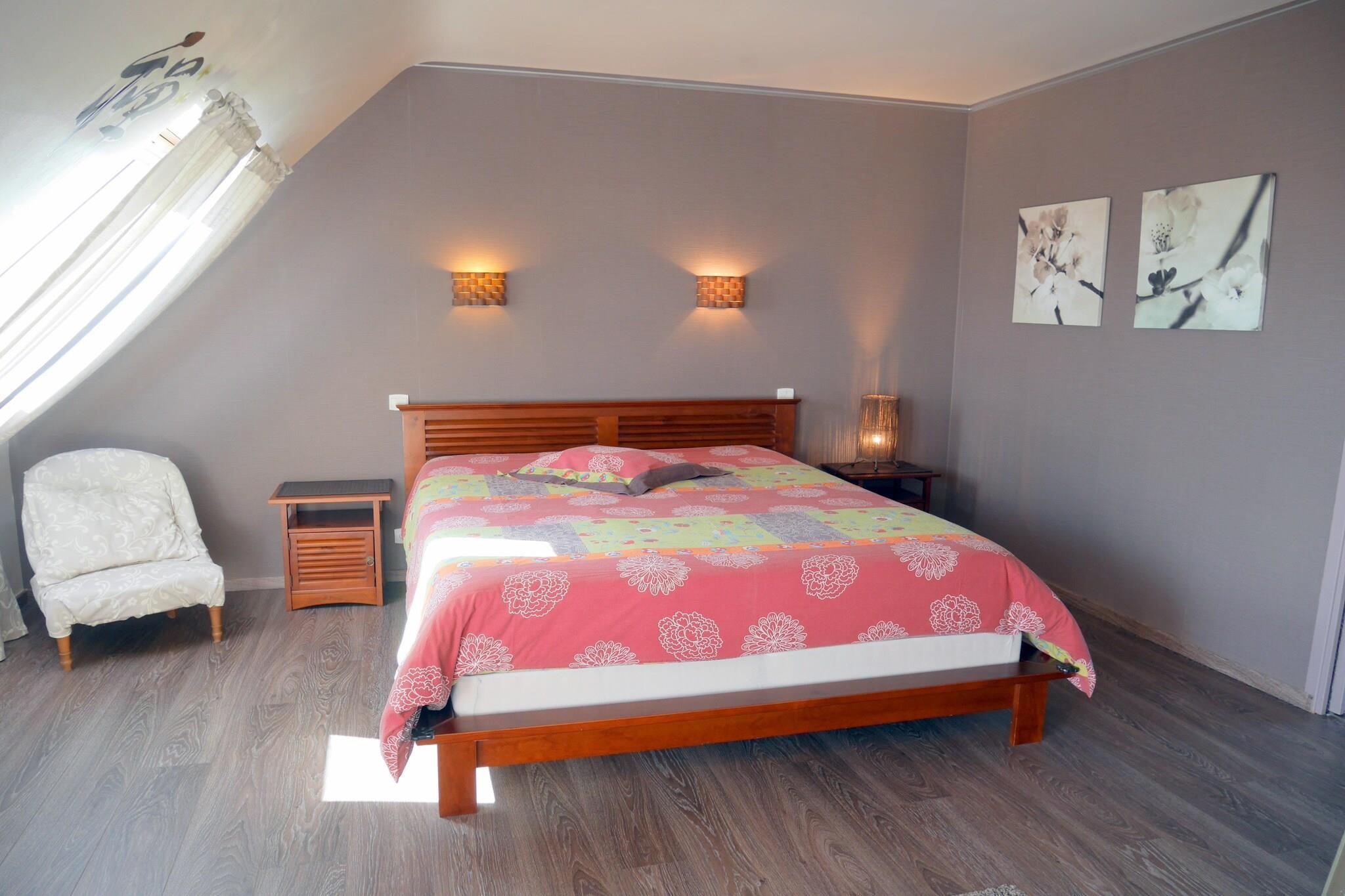 Komfortabel ferievilla på Atlanterhavskysten. En ferie som ud af en billedbog! Alt er lige her! Oleander blomster og eksotiske planter på en lukket havegrund i en dejlig rolig beliggenhed. Brede franske døre fører fra den lyse stue til en indbydende terrasse. Det smagfulde interiør lader intet tilbage at ønske. Du kan tilberede dine egne bretonske specialiteter i det veludstyrede køkken. Hvert soveværelse har sit eget badeværelse. Det særligt rummelige soveværelse på øverste etage har altan med udsigt til den smukt anlagte have. Adskillige små siddeområder, herunder i det levende galleri eller i vinterhaven, giver yderligere muligheder for tilbagetrækning, ideel til at slappe af eller surfe på. De nærliggende hvide sandstrande Goulien eller Morgat kan nås hurtigt i bil på få minutter. Begge er blandt de smukkeste på hele halvøen. Et paradis for vandrotter, surfere og vadehavsfiskere! Crozon-halvøen er et af de mest imponerende landskaber i Bretagne. I selve landsbyen Crozon finder du velassorterede butikker, men også supermarkeder, bagerier og slagtere, små butikker og restauranter omkring kirkepladsen. I højsæsonen er der et rigt udvalg af fisk og skaldyr, årstidens frugter og grøntsager på markedet foran kirken. Detaljer: sengelinned, håndklæder, slutrengøring Aktiviteter i nærheden: Der er en masse variation for børn og fritidsudøvere i de nærliggende kystområder: surfing, kajaksejlads, kitesurfing eller endda golfski, sandyacht, klatring, bueskydning og cykeludlejning. Crozon byder også på variation til børnene med en labyrint, et paintball-anlæg og en park med høje reb. Kysten ved det nærliggende feriested Morgat er kendt for sine imponerende klippeformationer og huler. Udflugter til den tidligere sardinerhavn Douarnenez med dens talrige pubber og specialrestauranter anbefales. På den